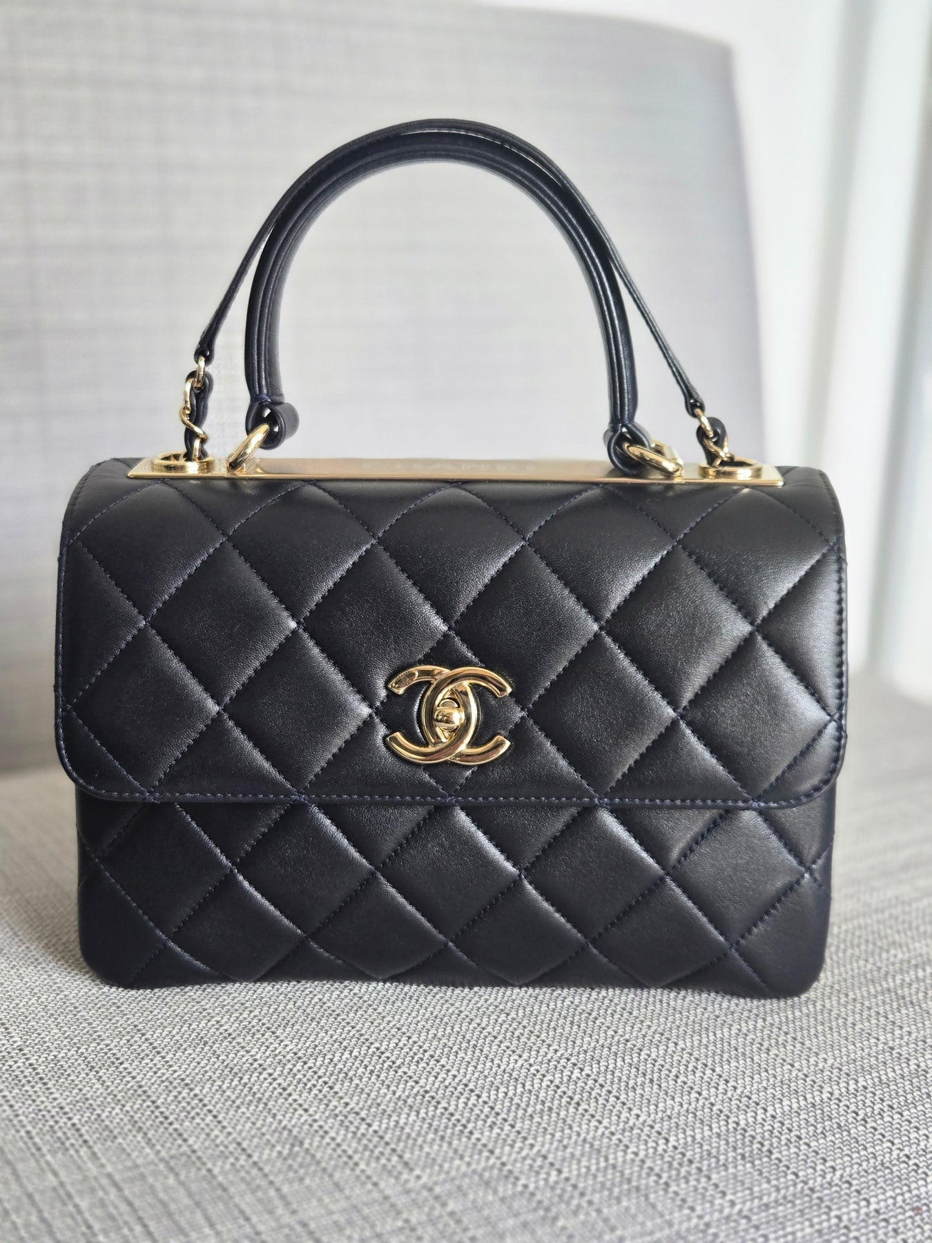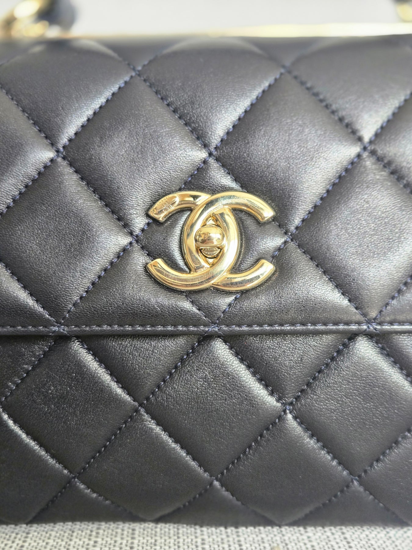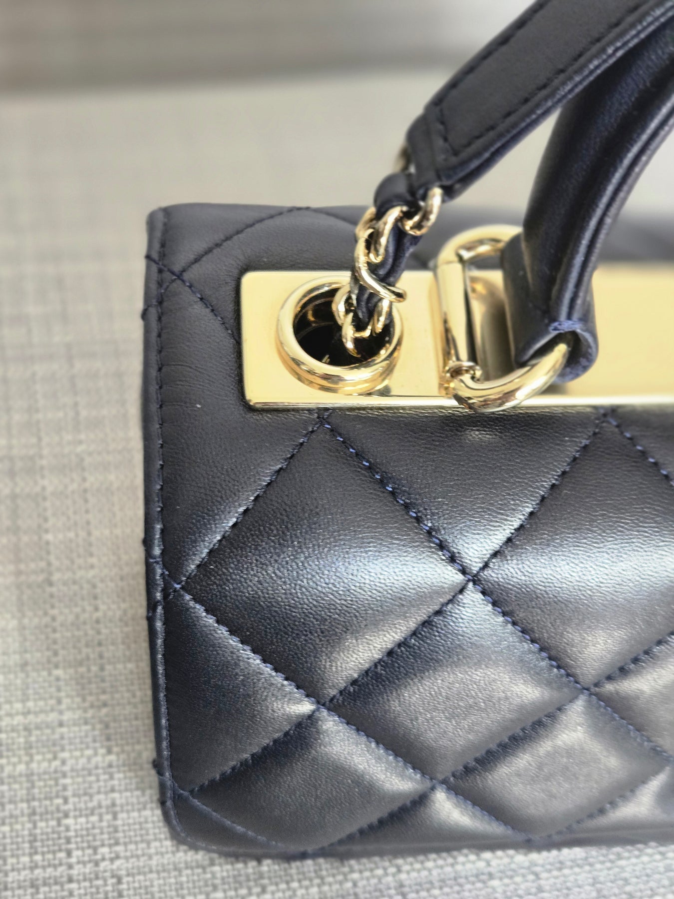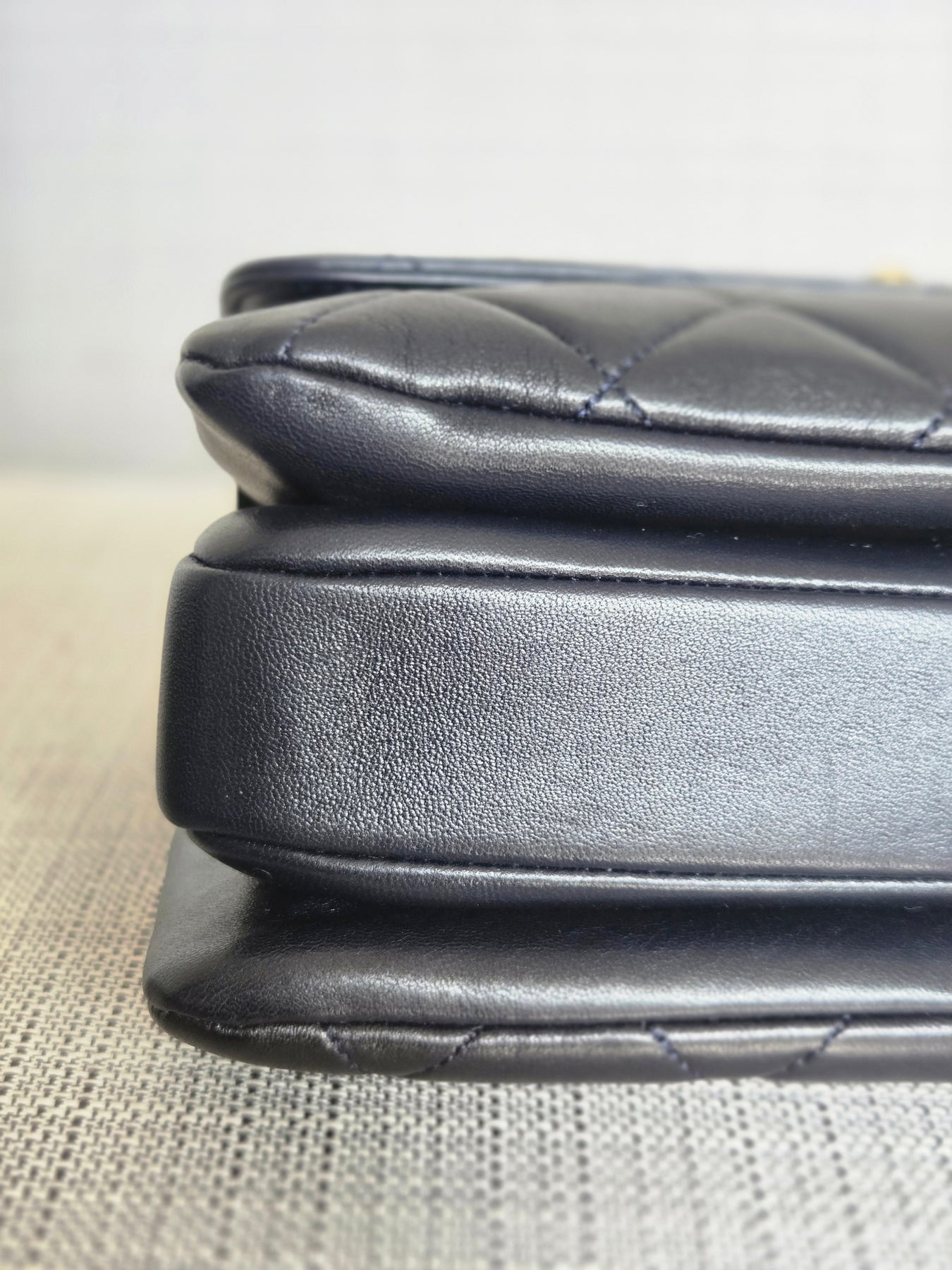 Chanel series 28 2018/2019 Navy Lambskin Champagne GHW Trendy CC Flap Bag size Small with Detachable Strap