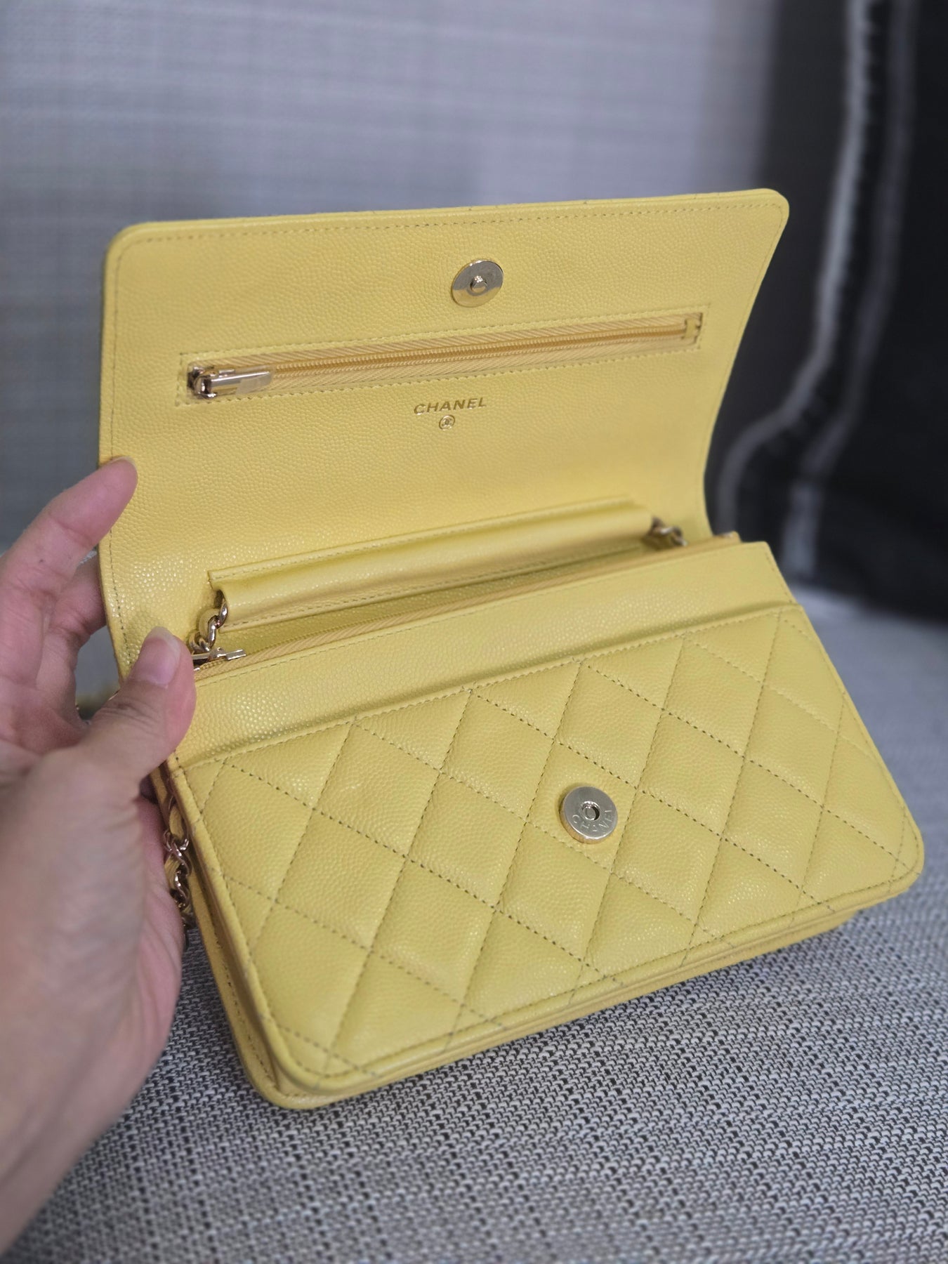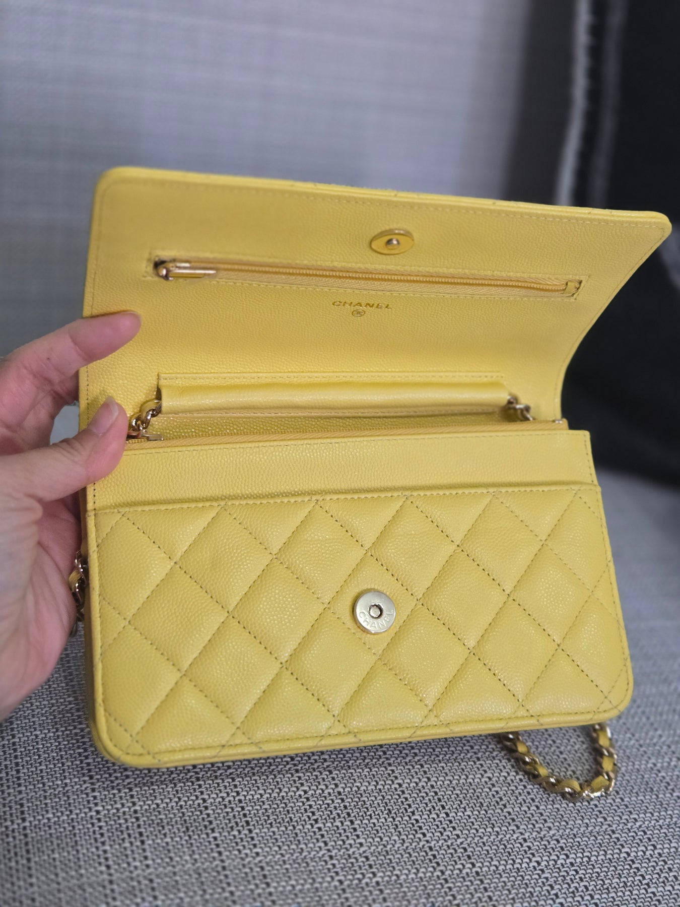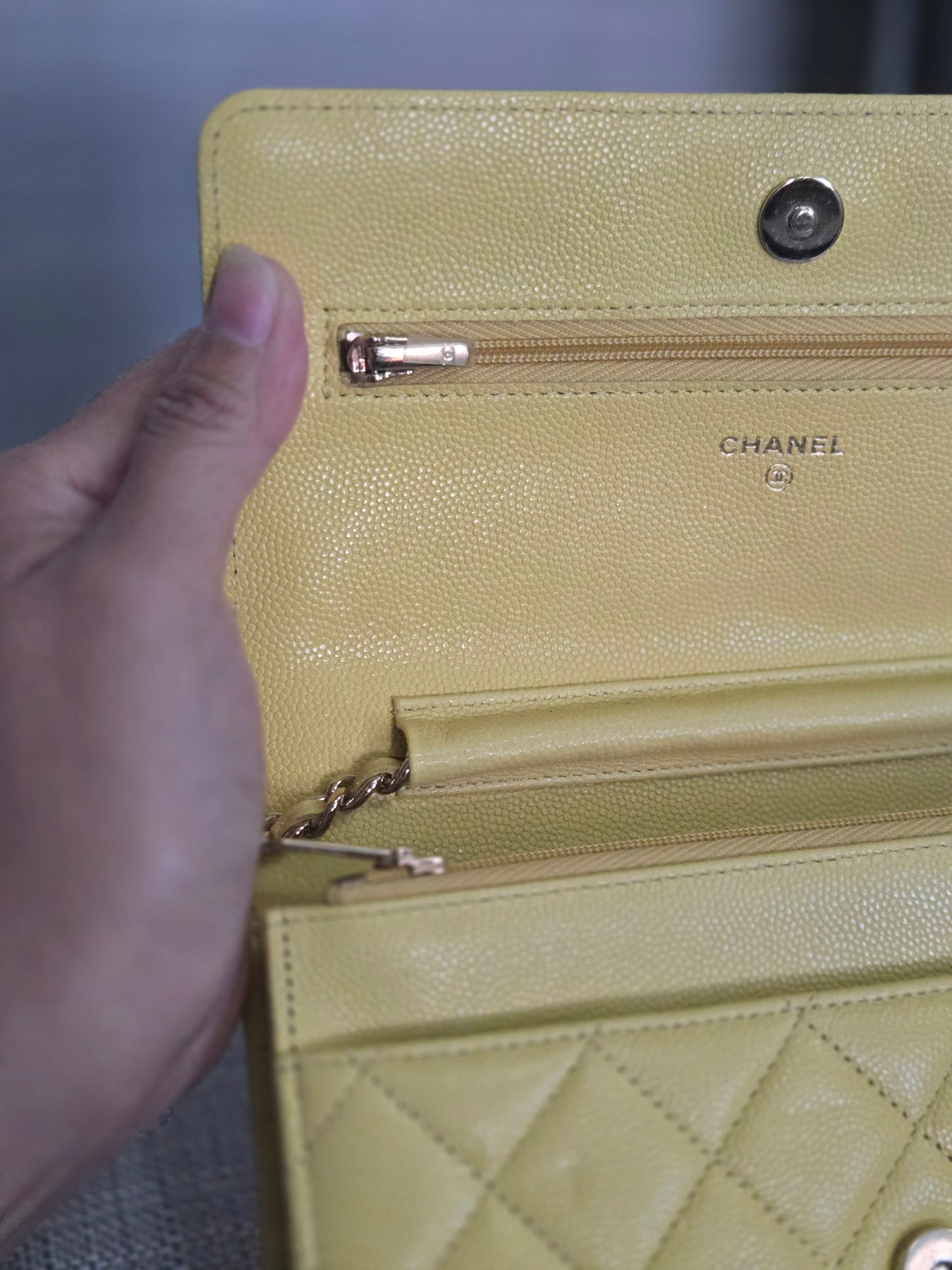 Chanel series 30 2020 Yellow Caviar LGHW Classic Wallet on chain (WOC)