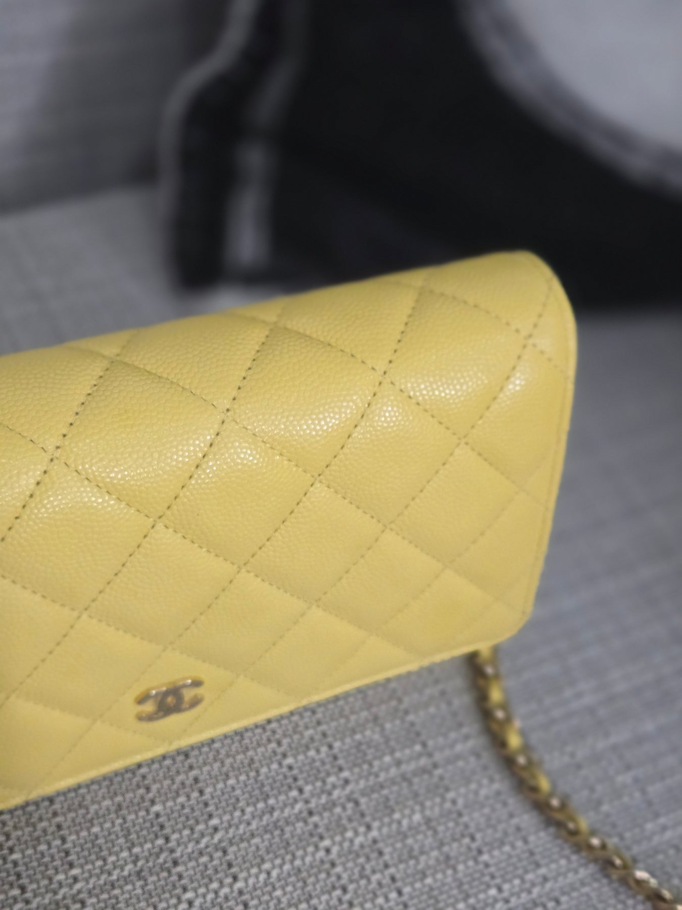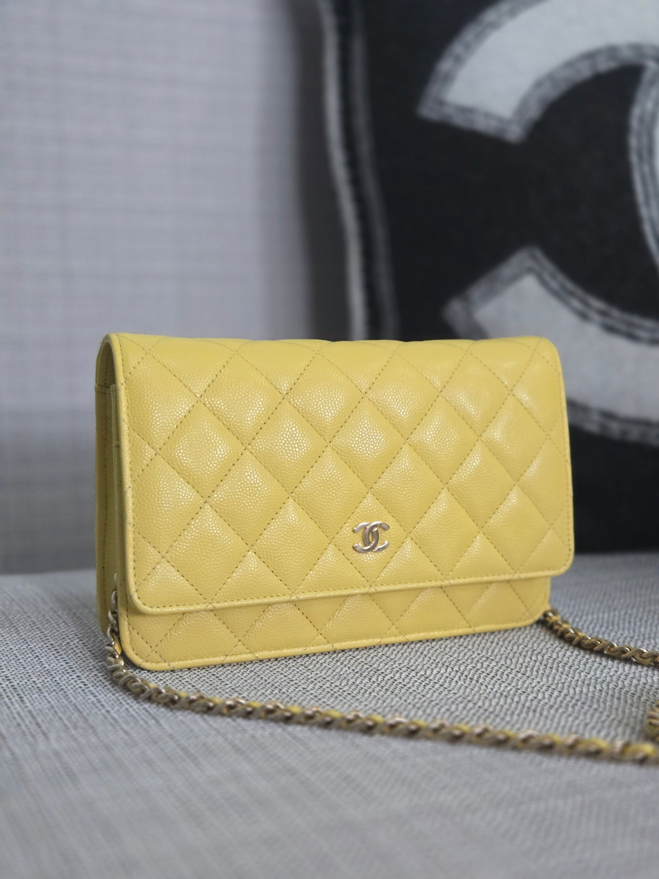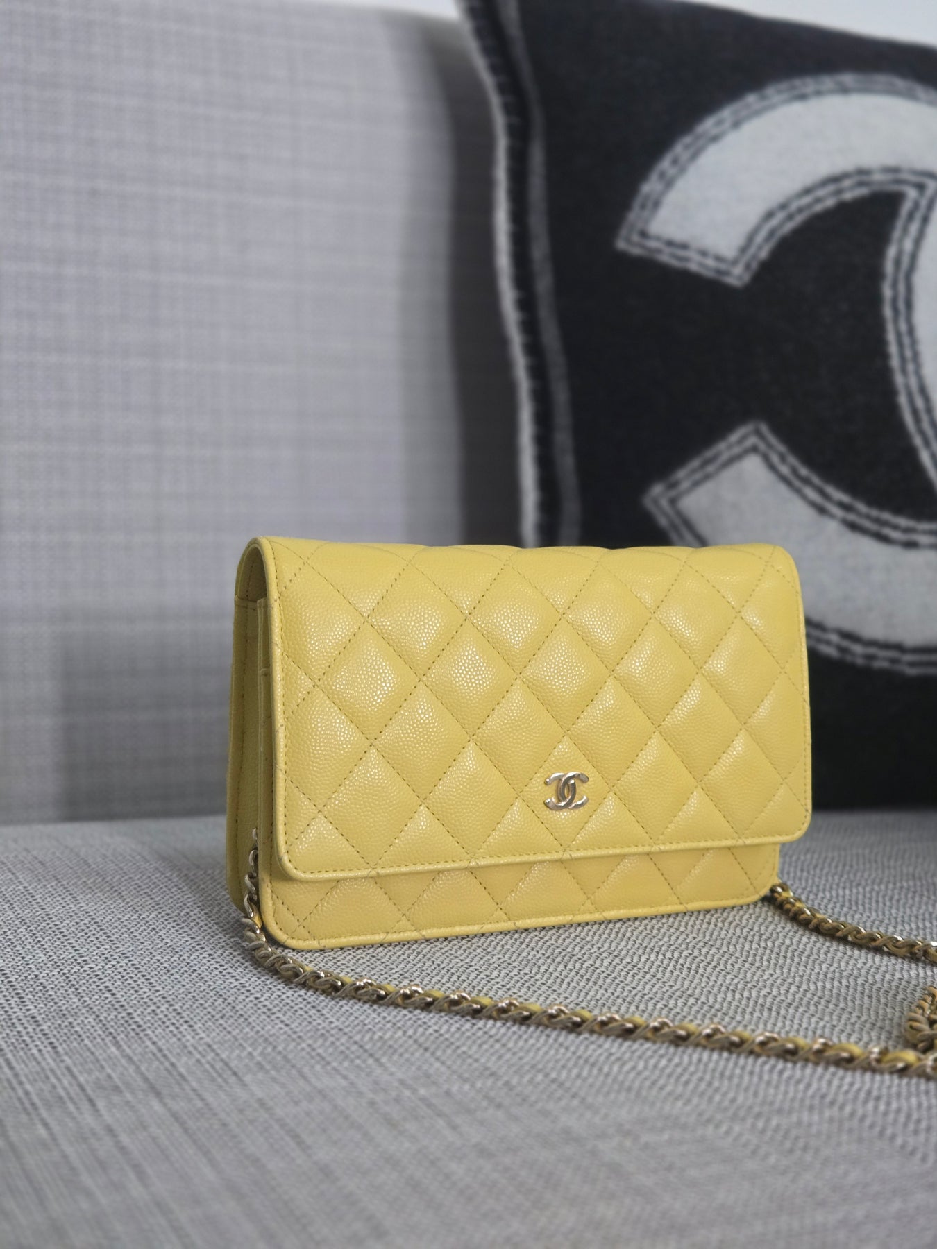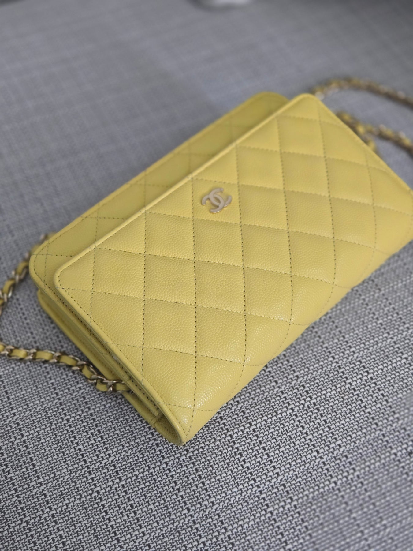 Chanel series 30 2020 Yellow Caviar LGHW Classic Wallet on chain (WOC)