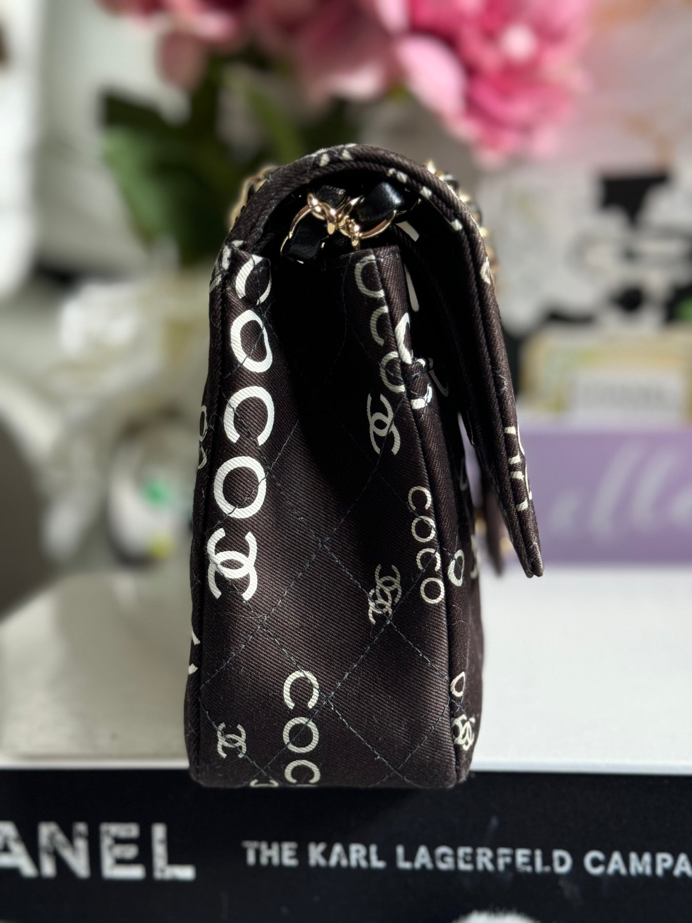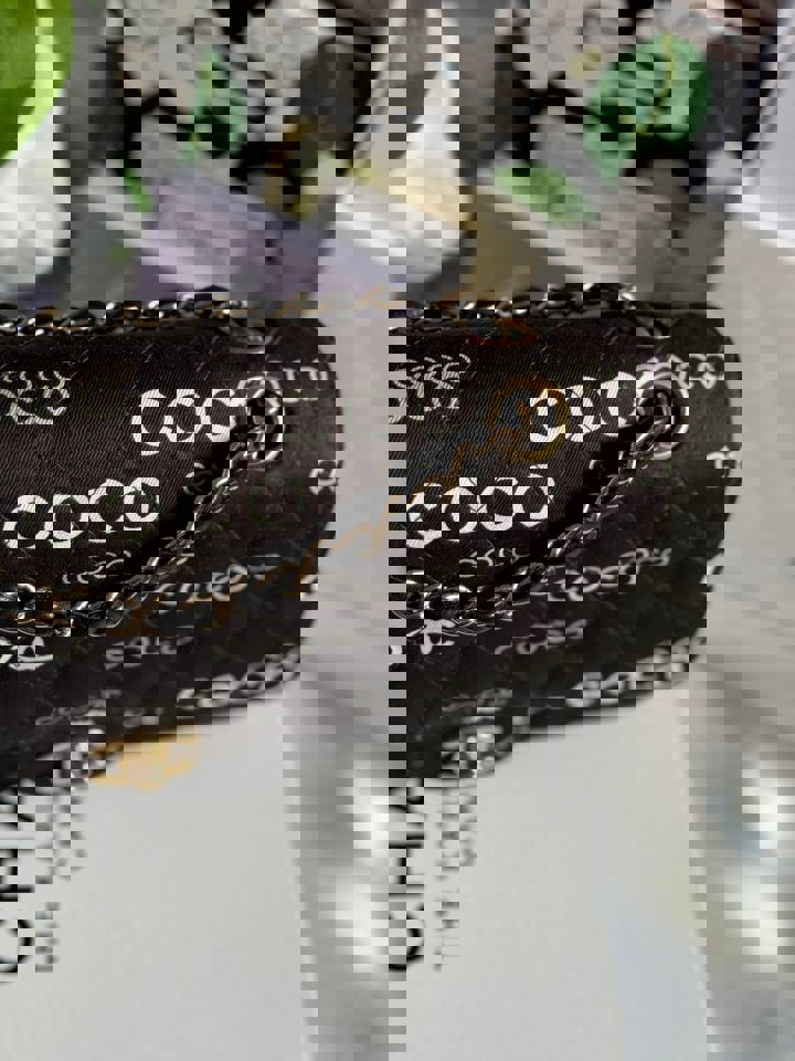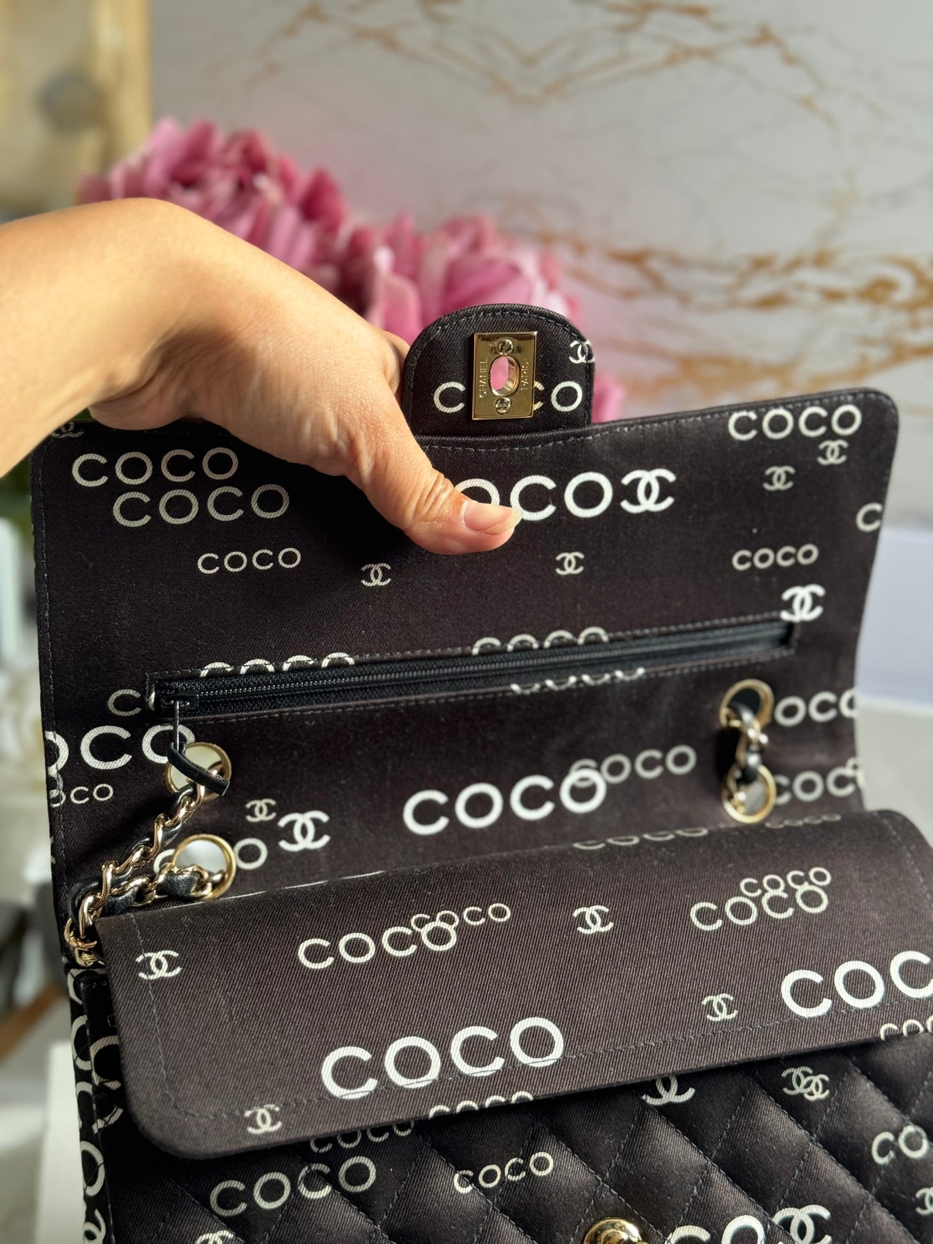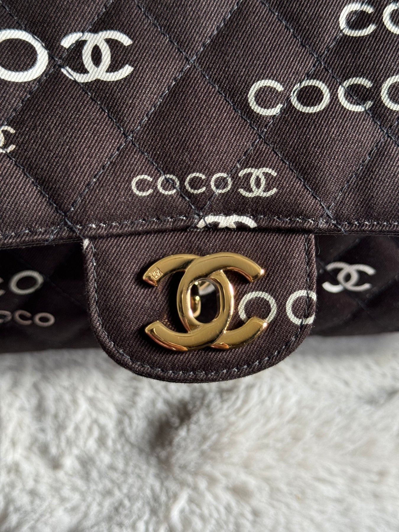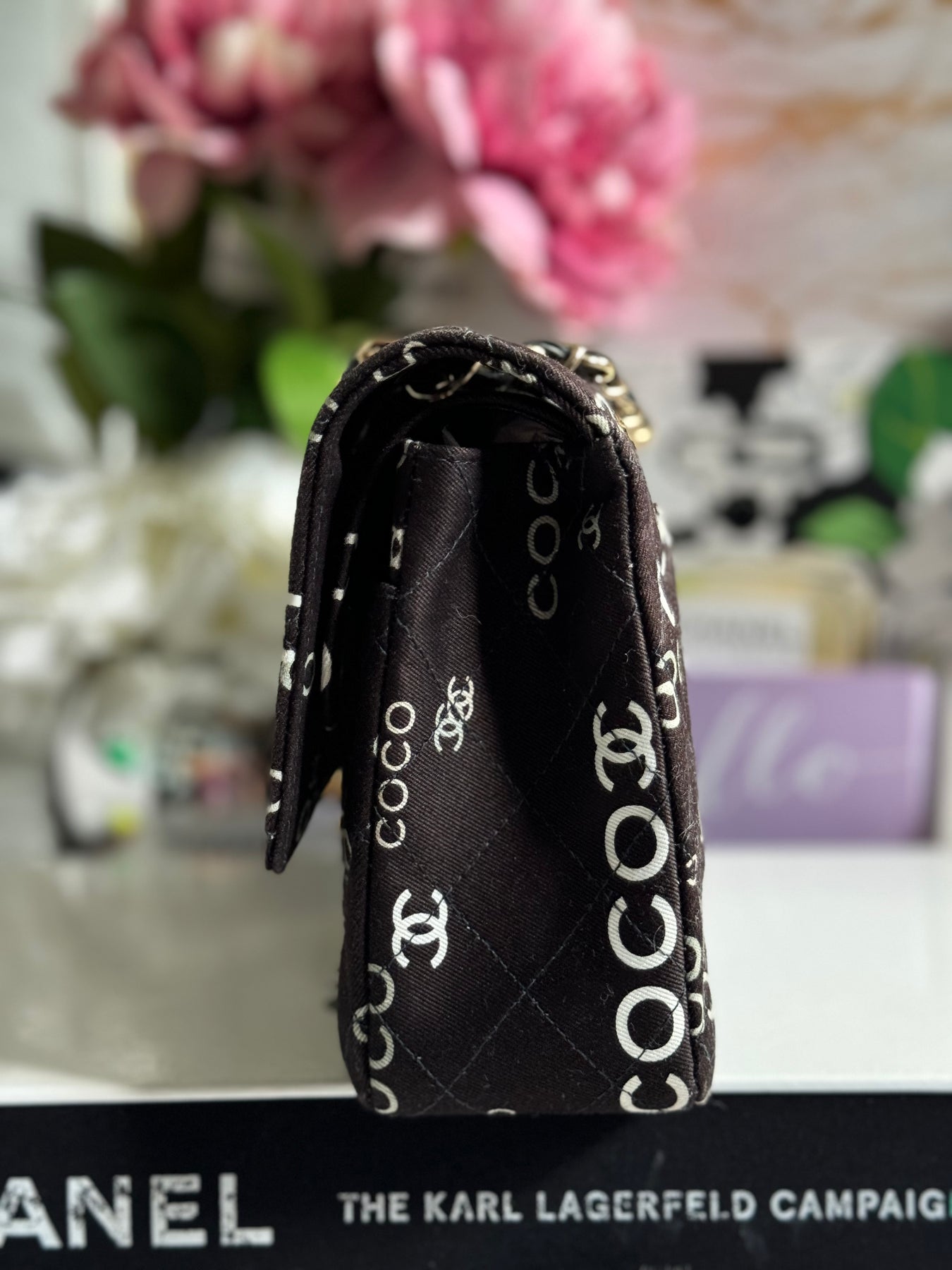 Chanel series 7 2002/2003 Black Canvas Quilted COCO Medium Classic Flap Light Gold Hardware