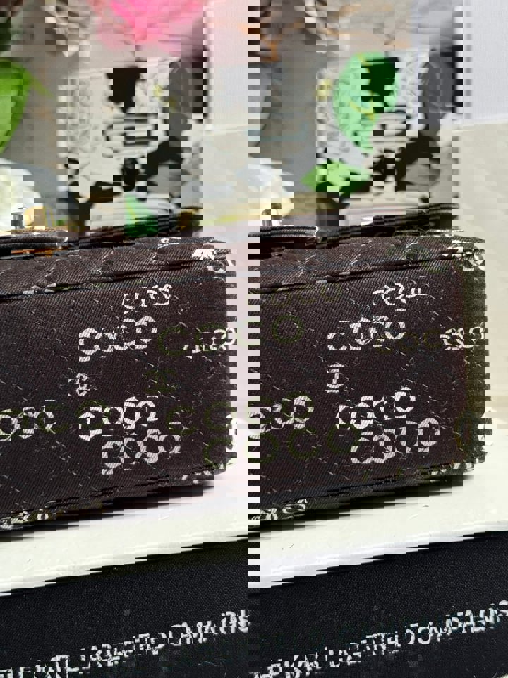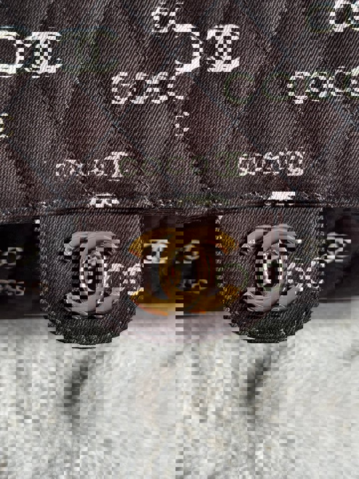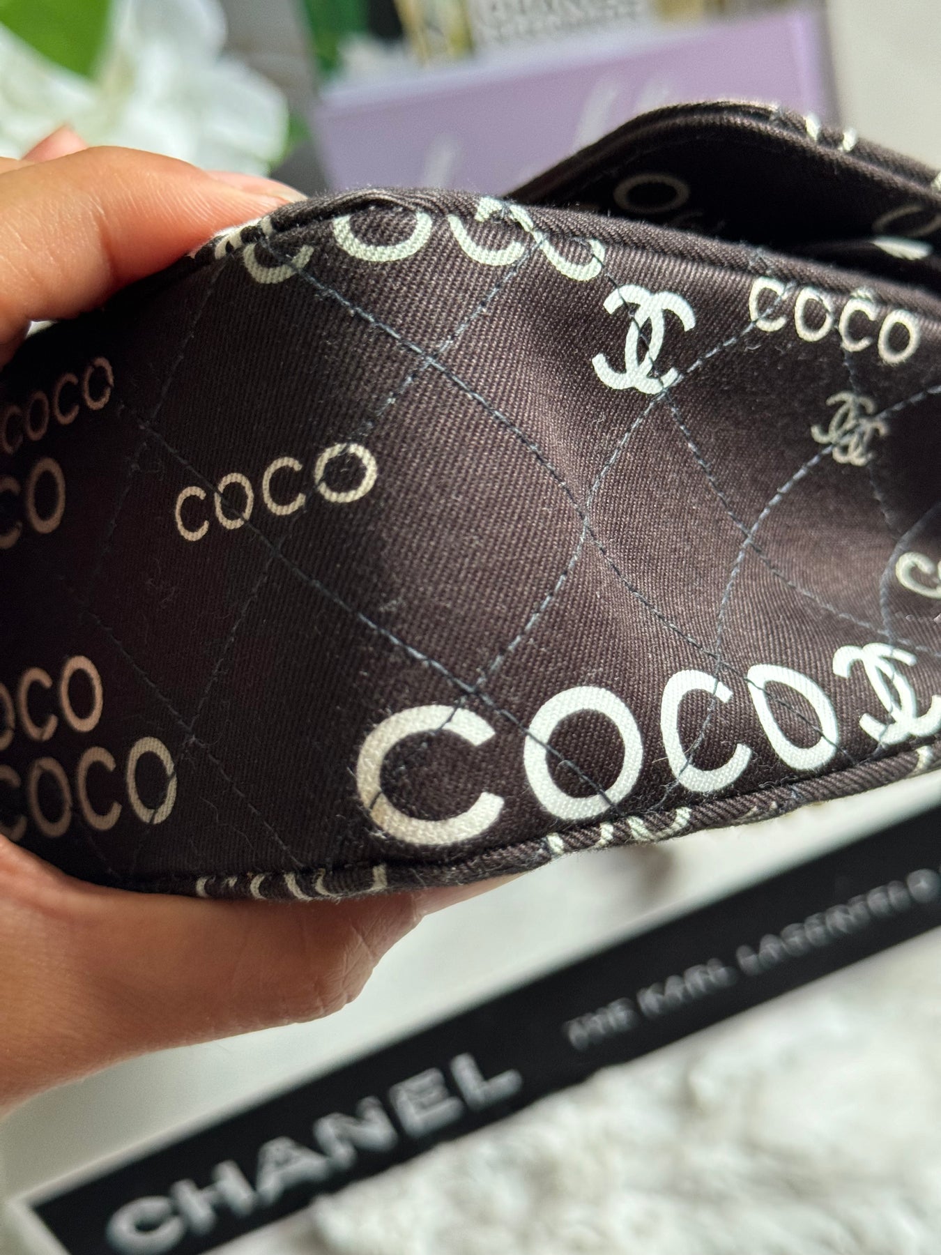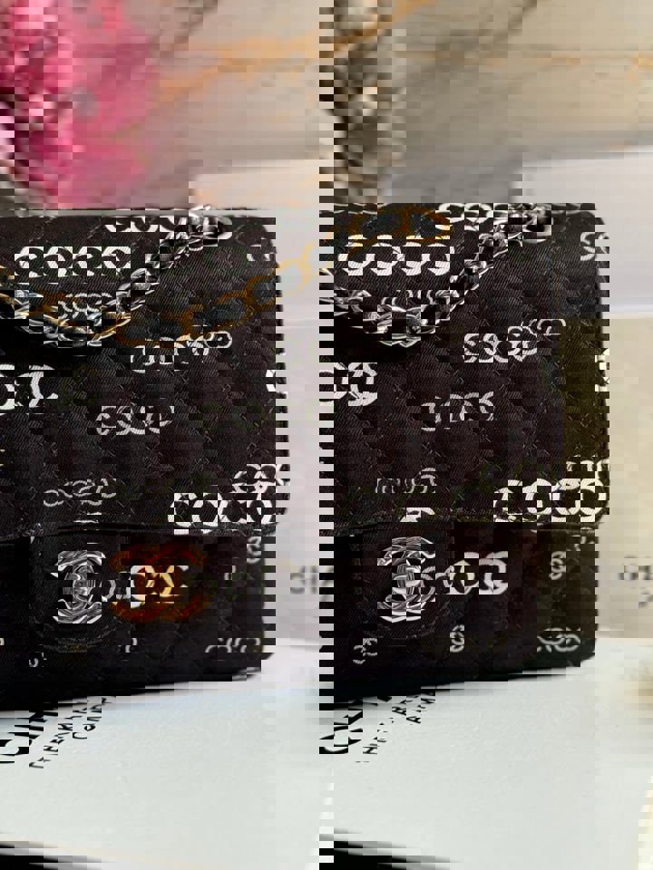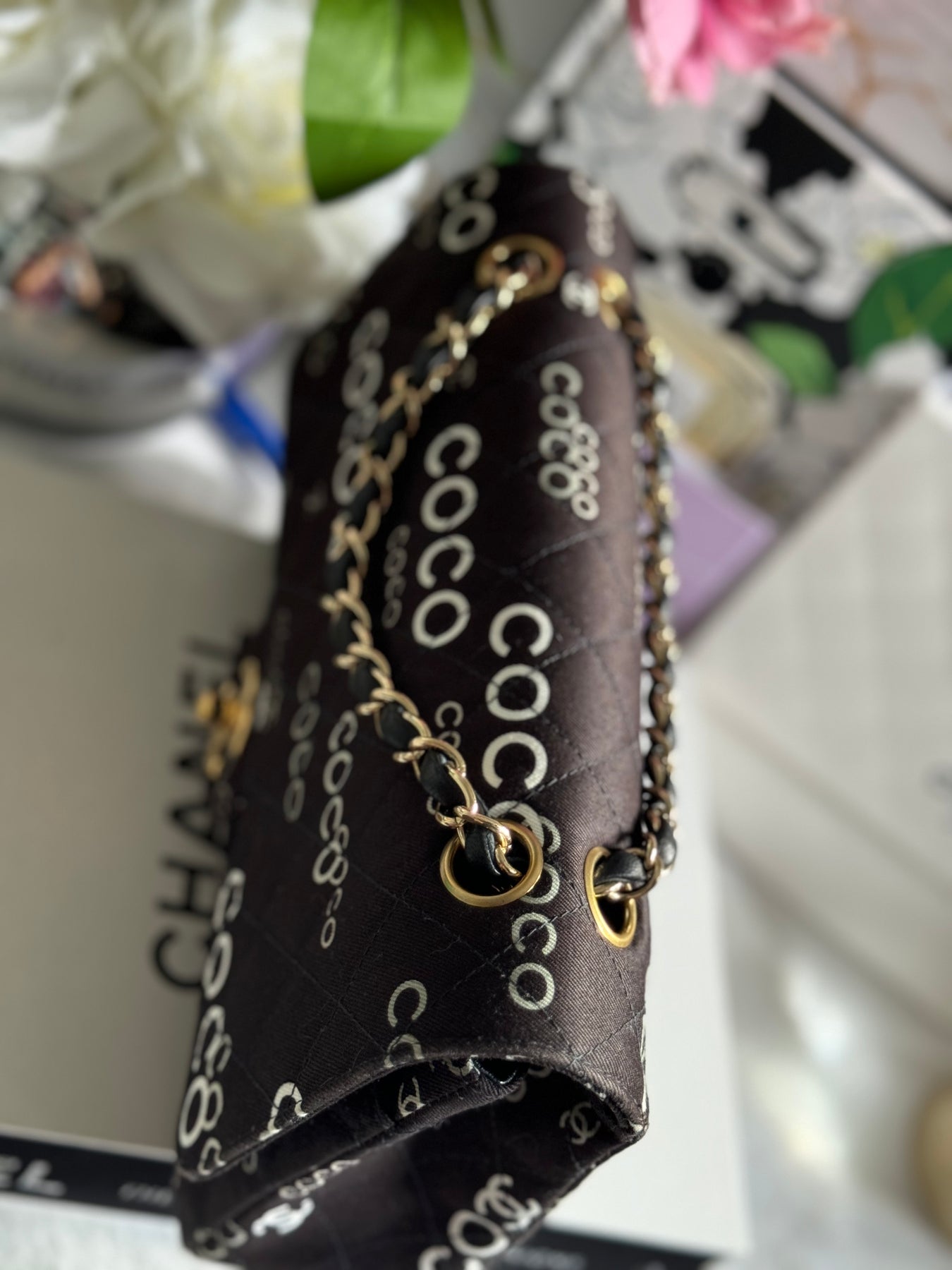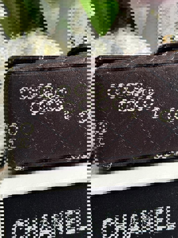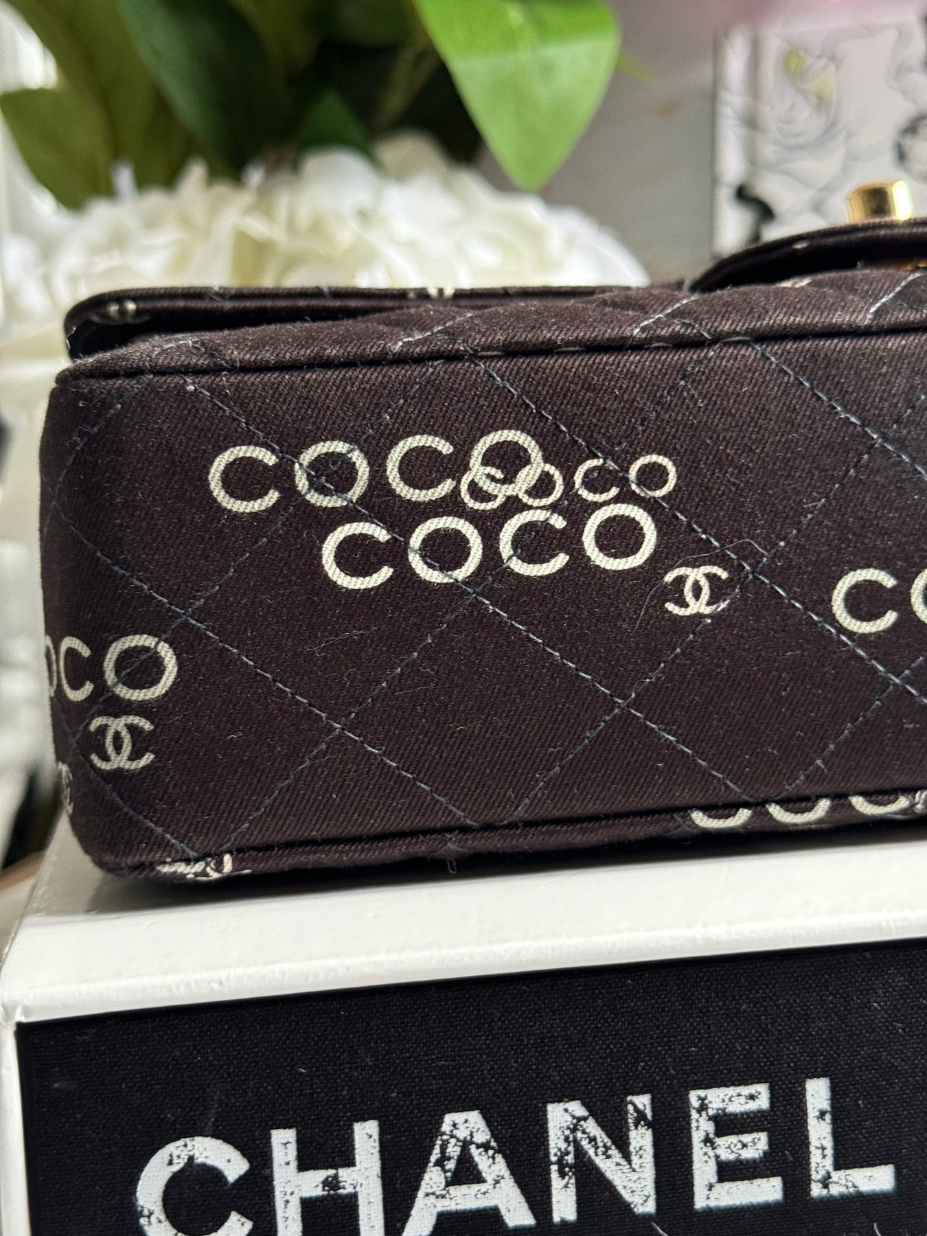Chanel series 7 2002/2003 Black Canvas Quilted COCO Medium Classic Flap Light Gold Hardware