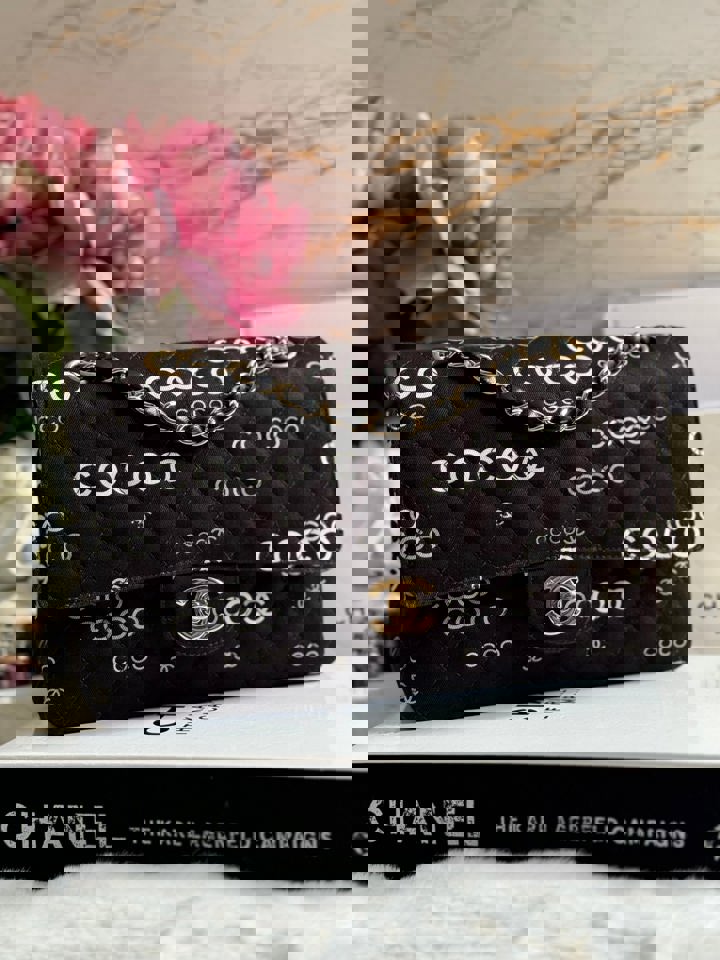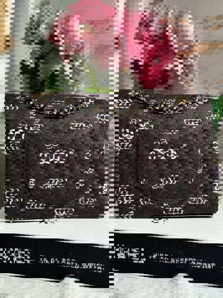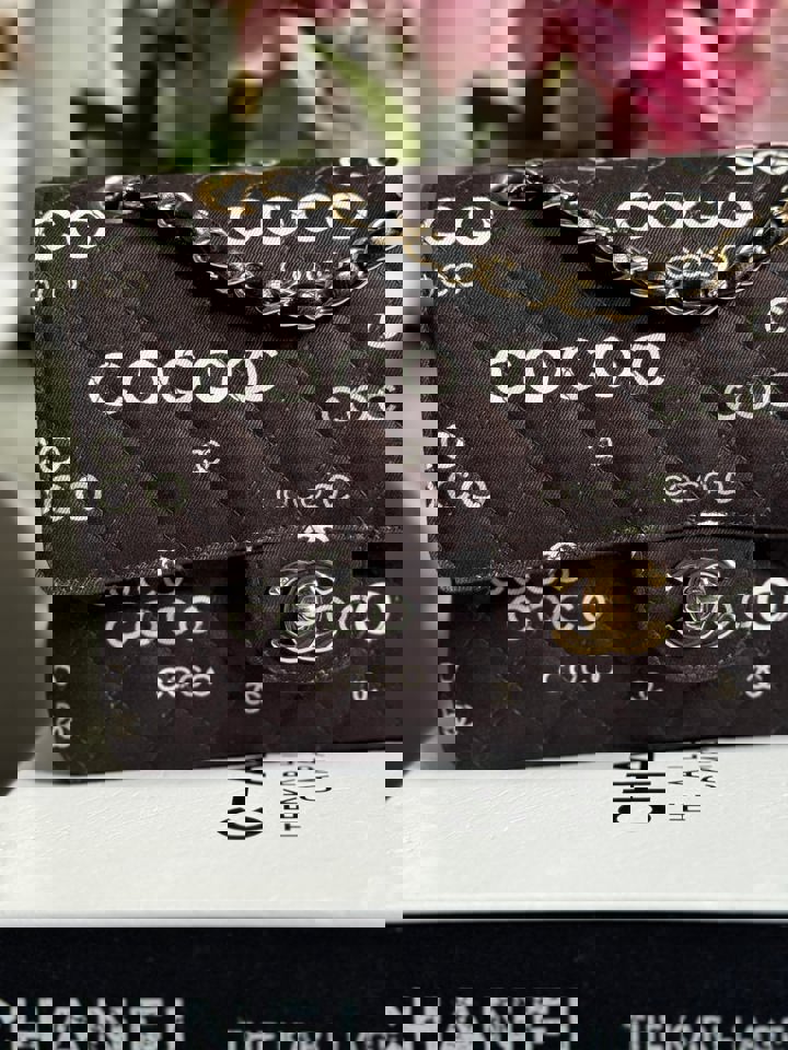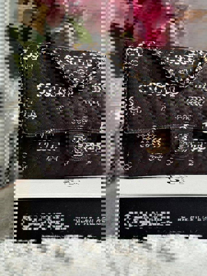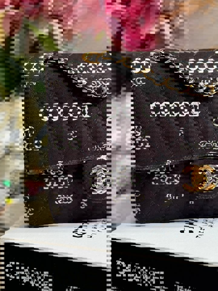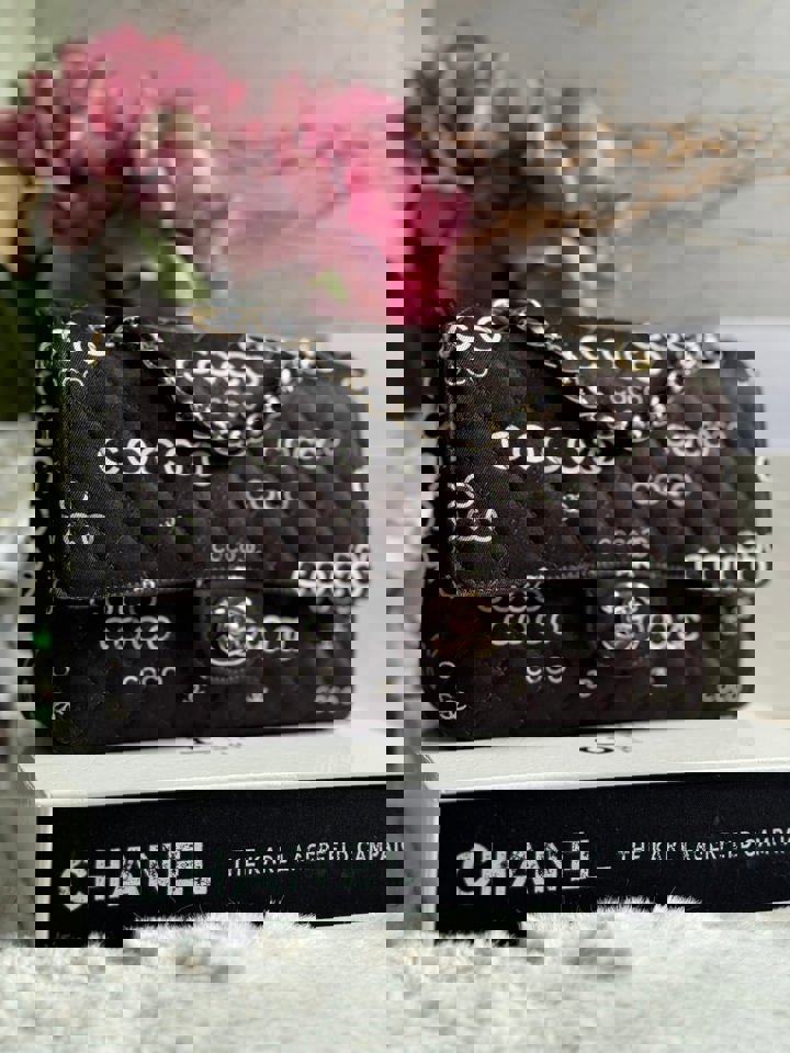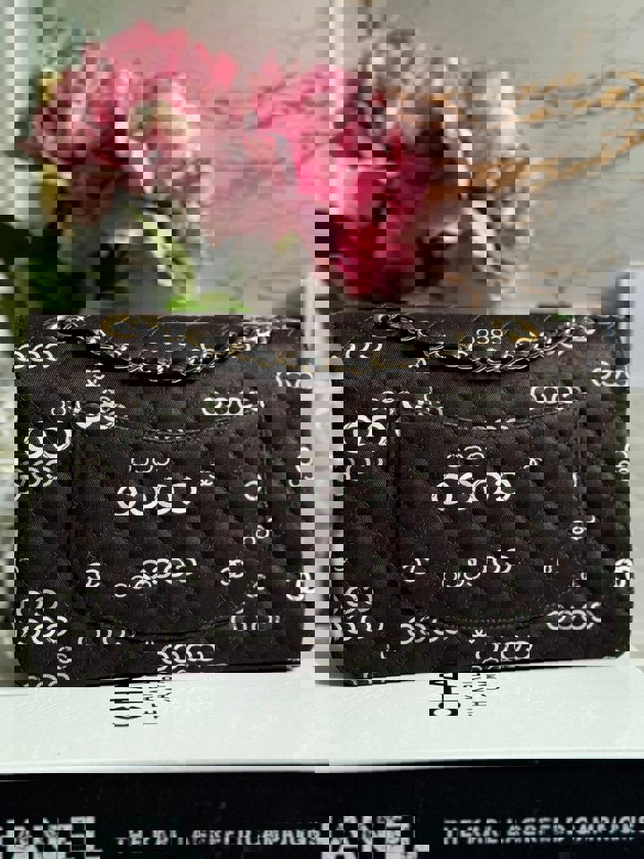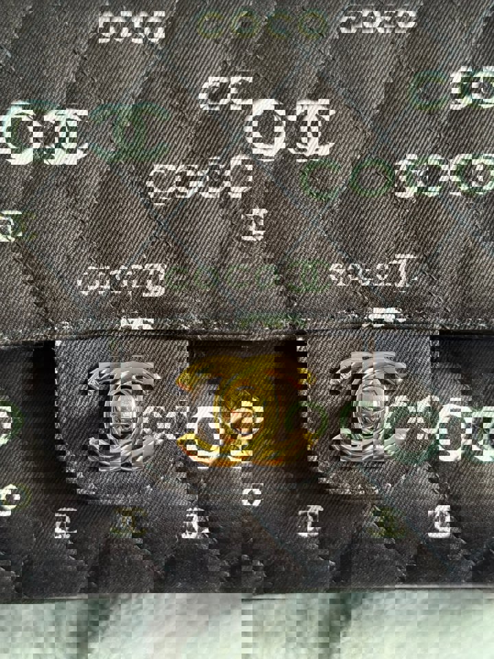 Chanel series 7 2002/2003 Black Canvas Quilted COCO Medium Classic Flap Light Gold Hardware