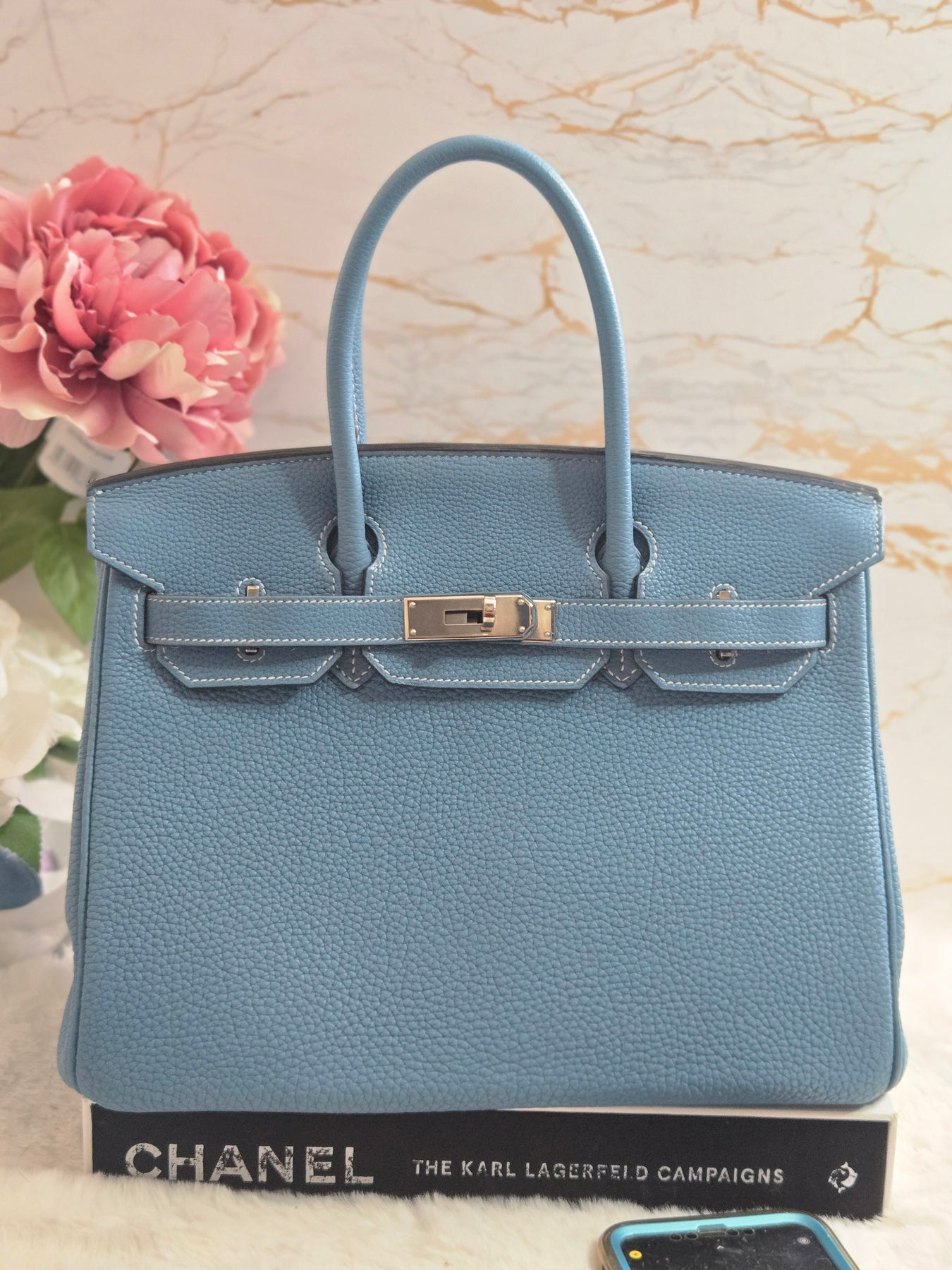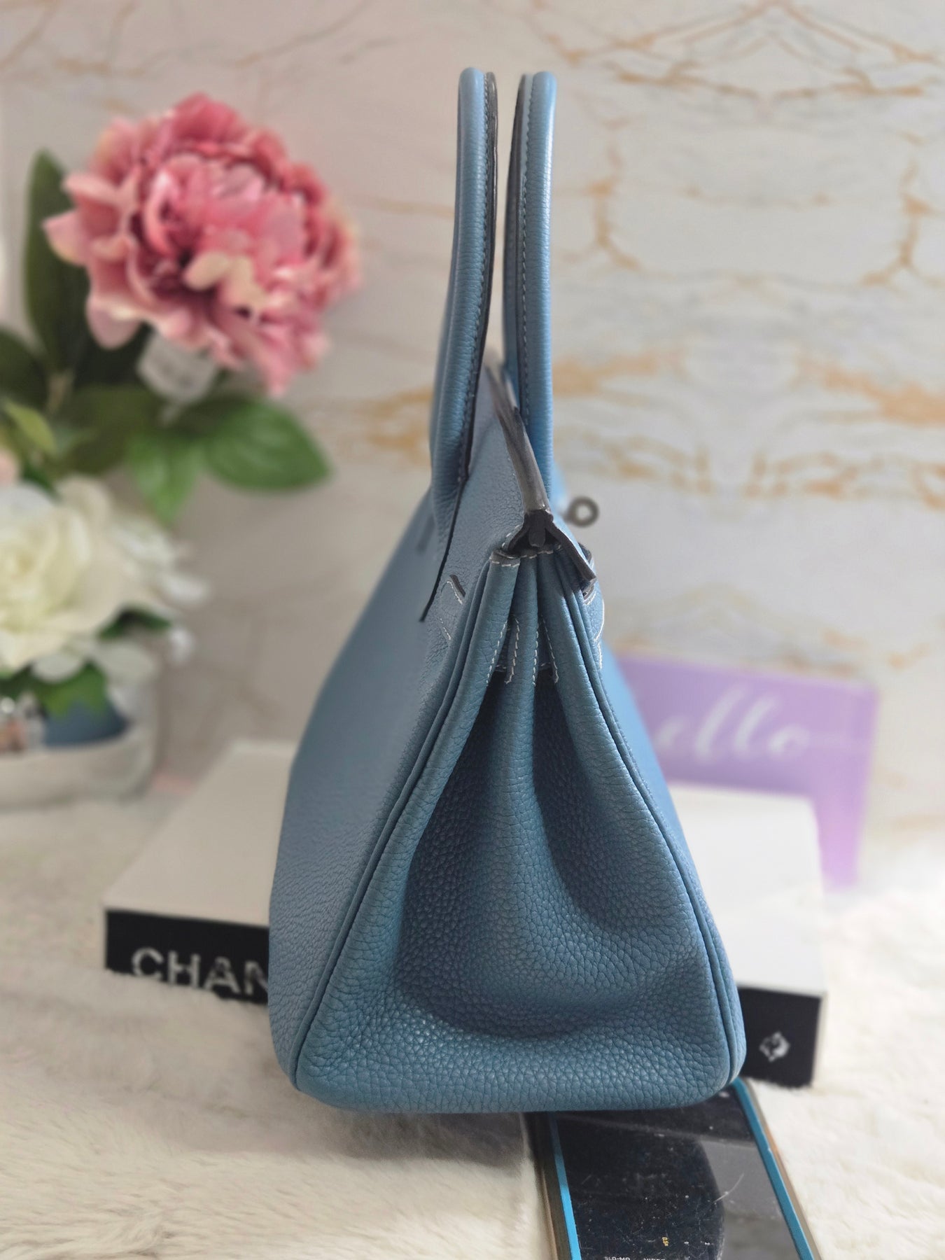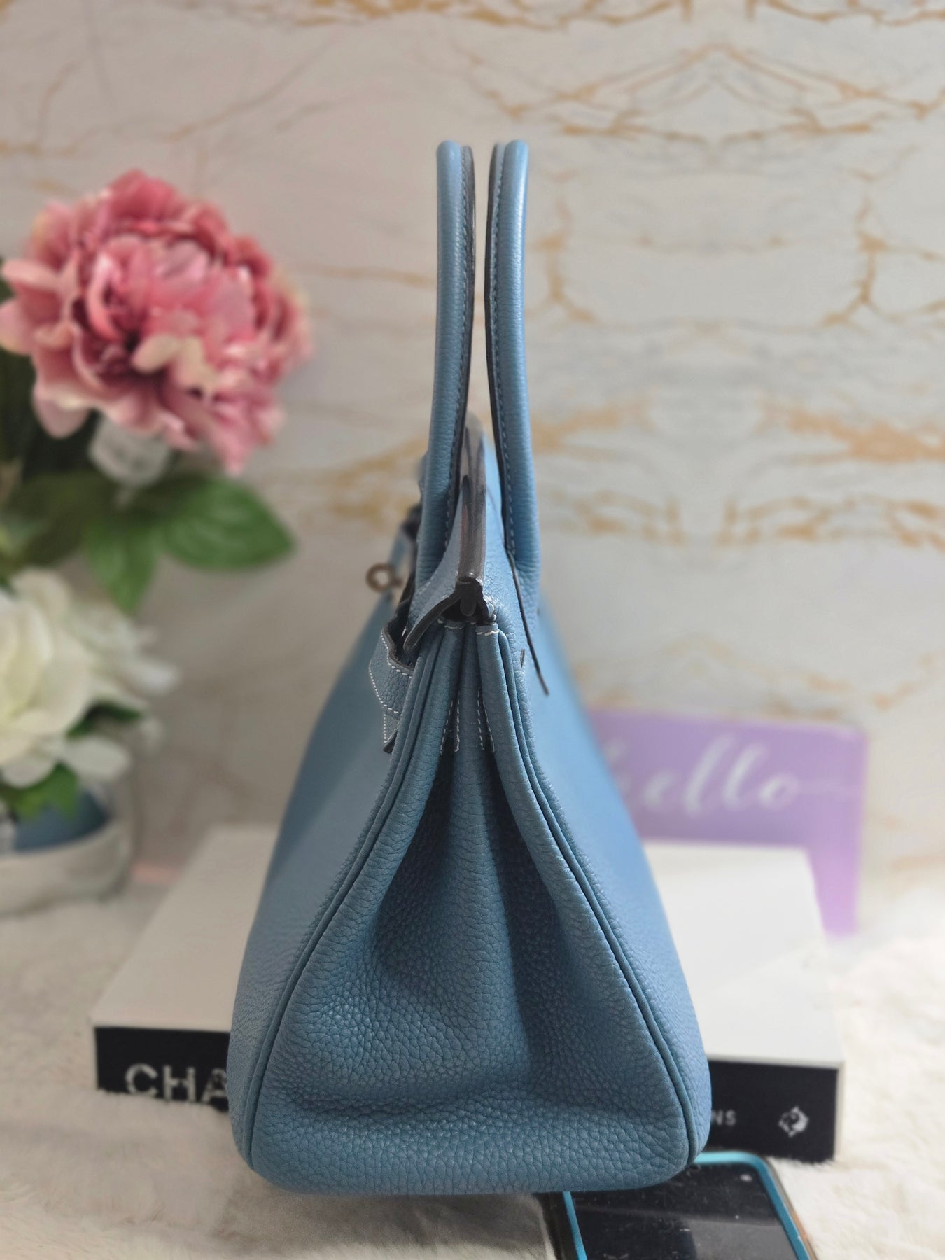 Hermes Birkin 35 Bleu Jean Togo Leather PHW Stamp J in Sq
