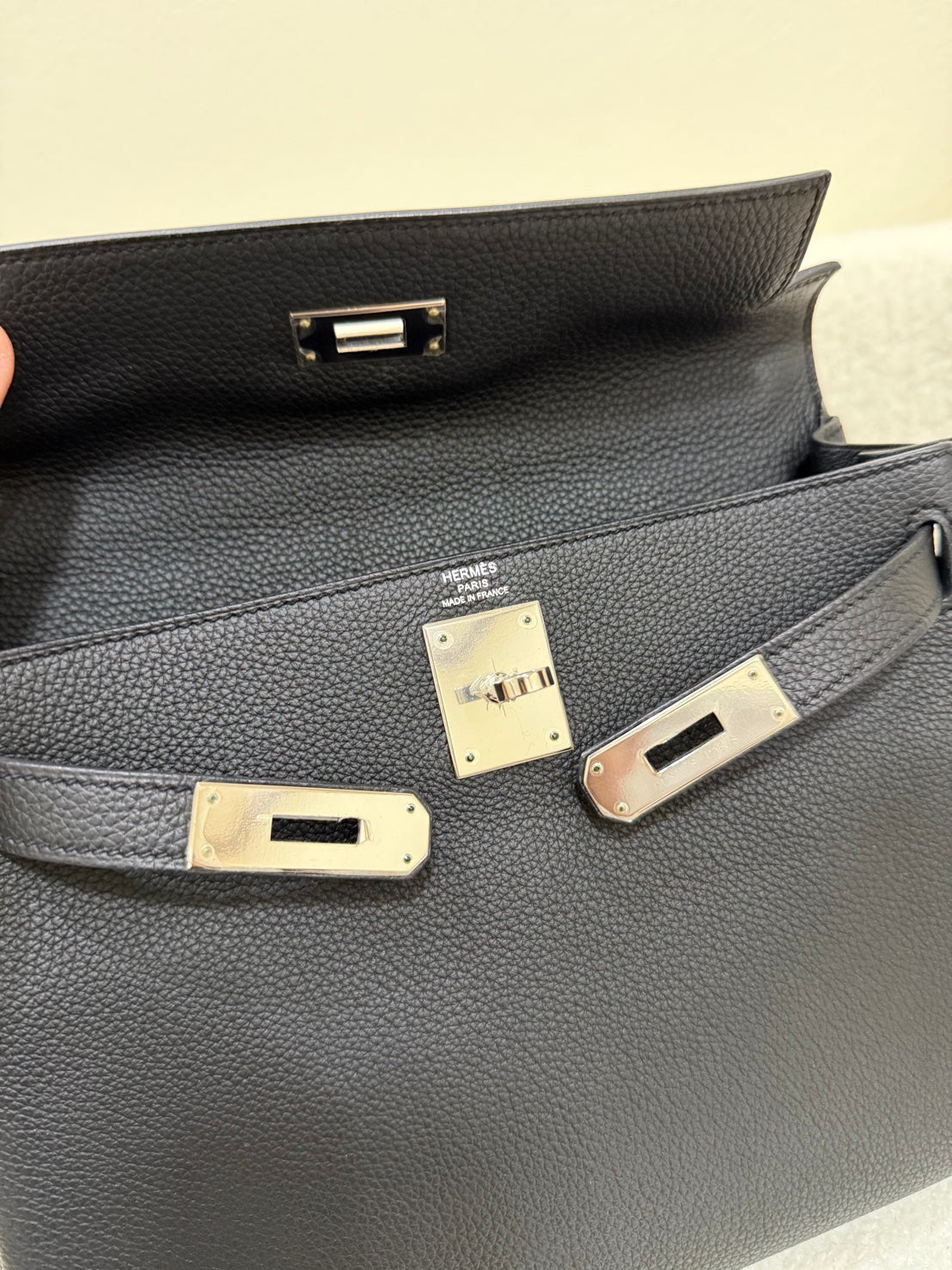 Hermes Kelly 28 Black Noir Retourne Togo Leather PHW Stamp R 2014