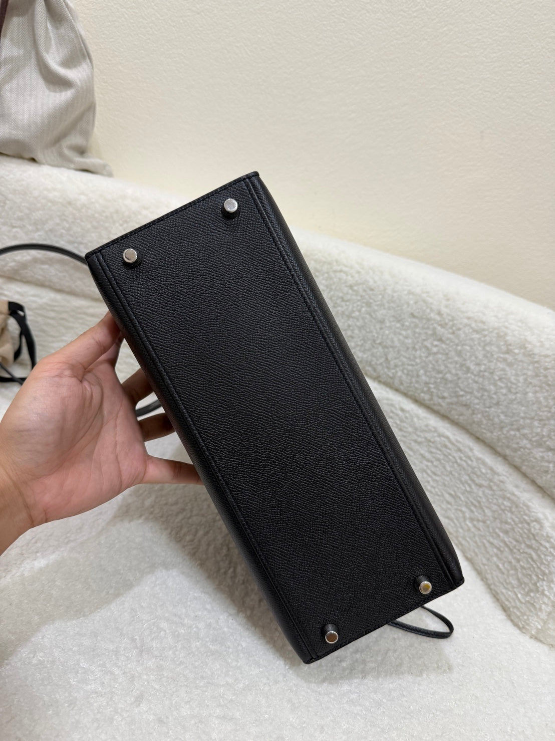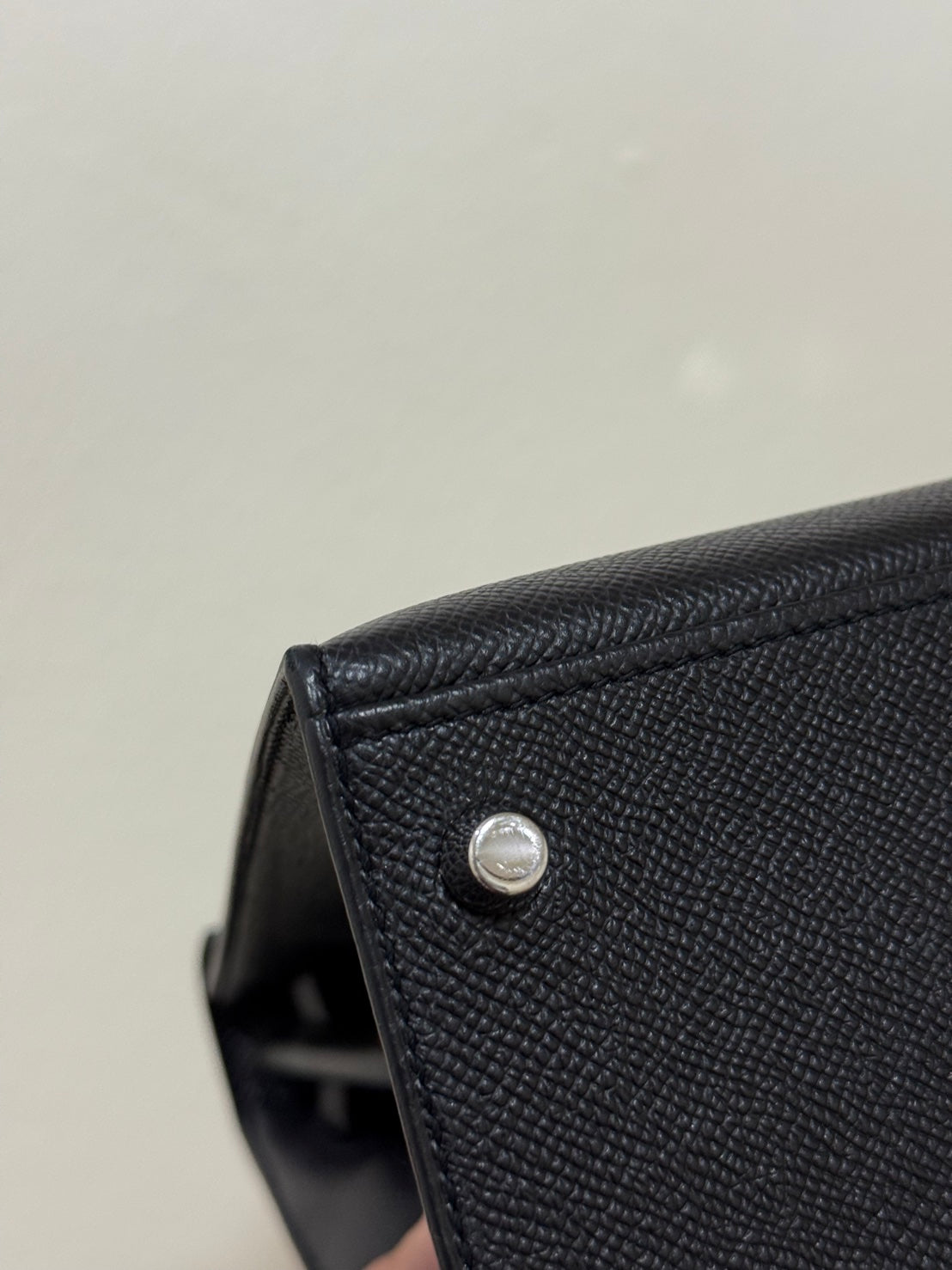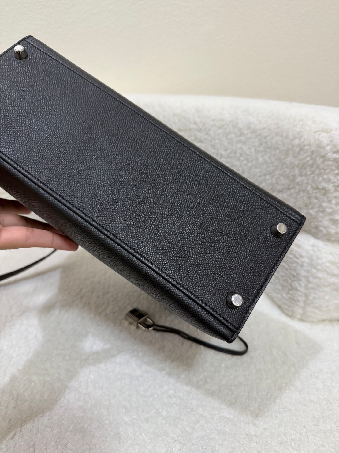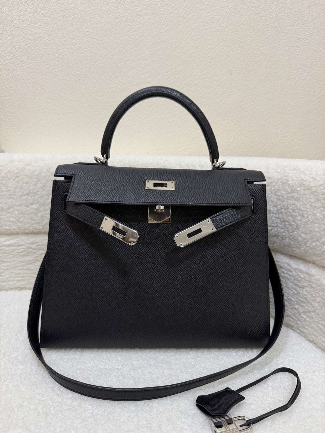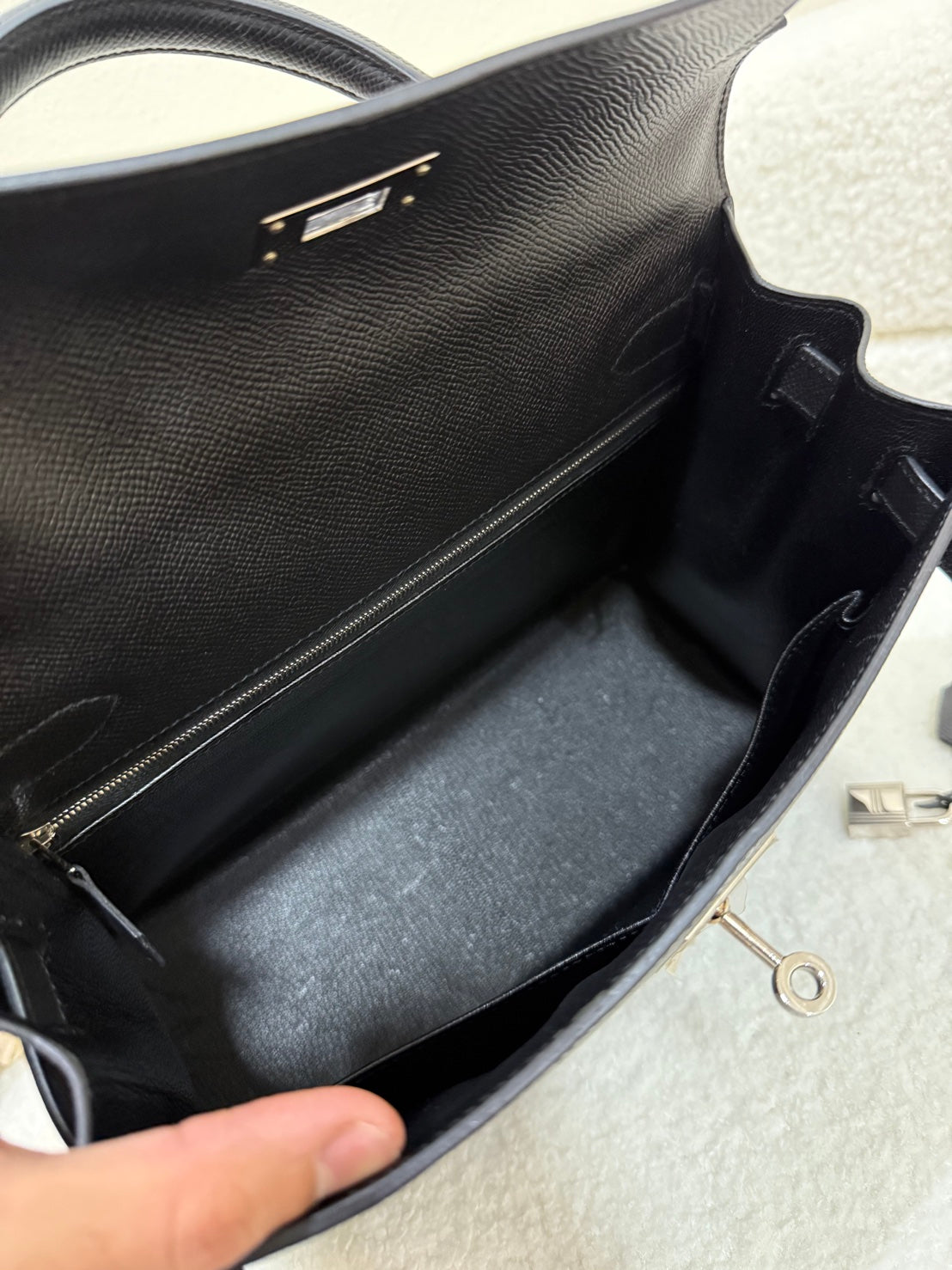 Hermes Kelly 28 in Black Noir Epsom Sellier Leather PHW Stamp R 2014