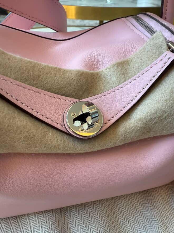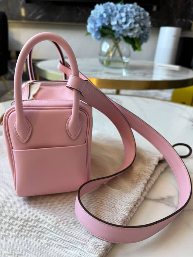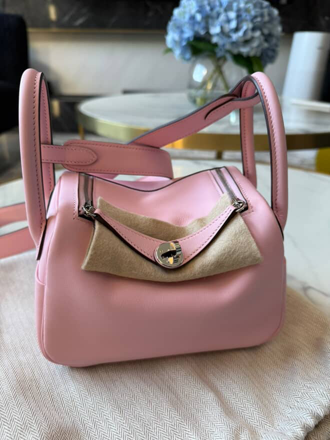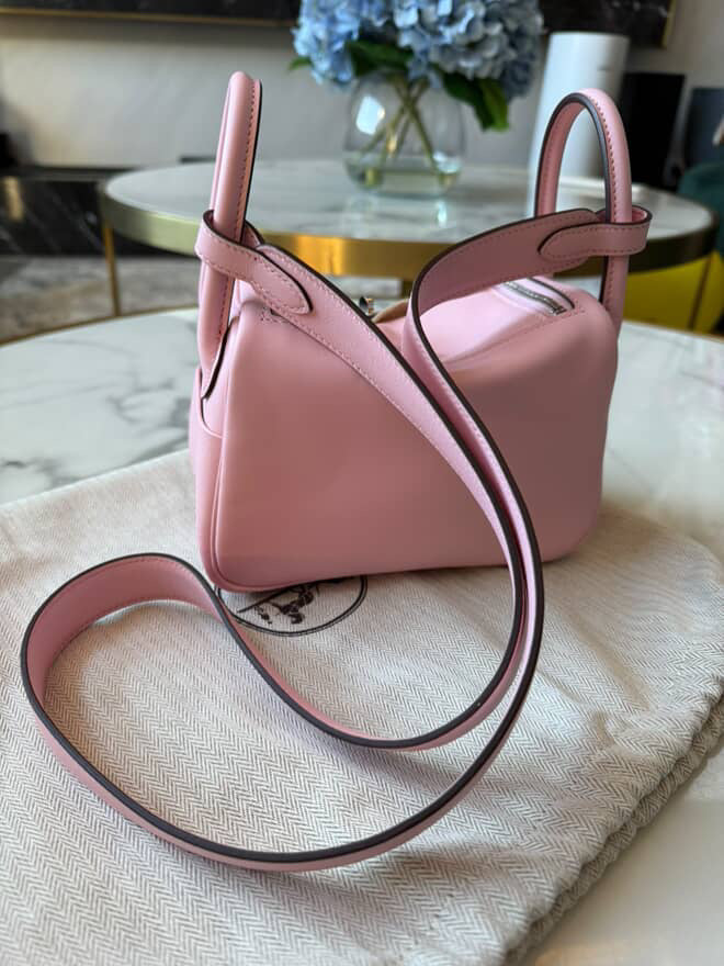 Hermes Mini Lindy Rose Sakura Swift Leather PHW Stamp W 2024