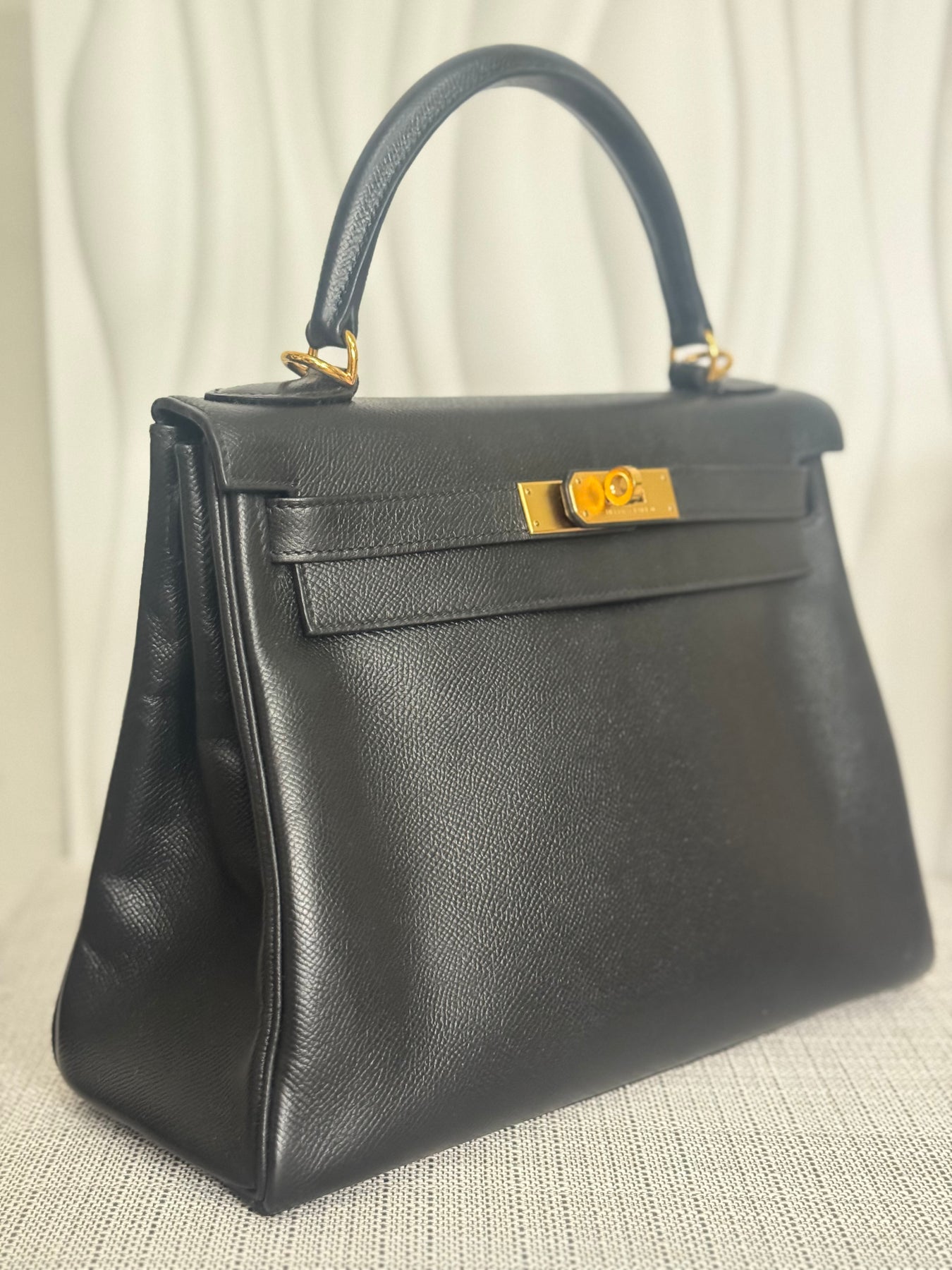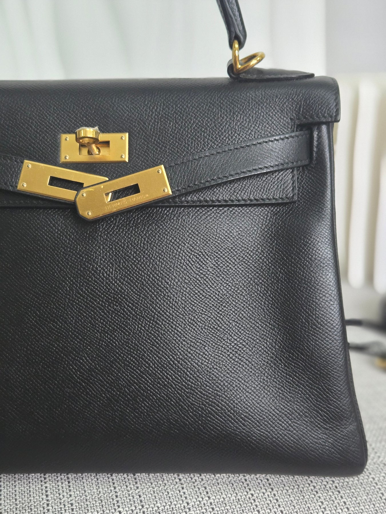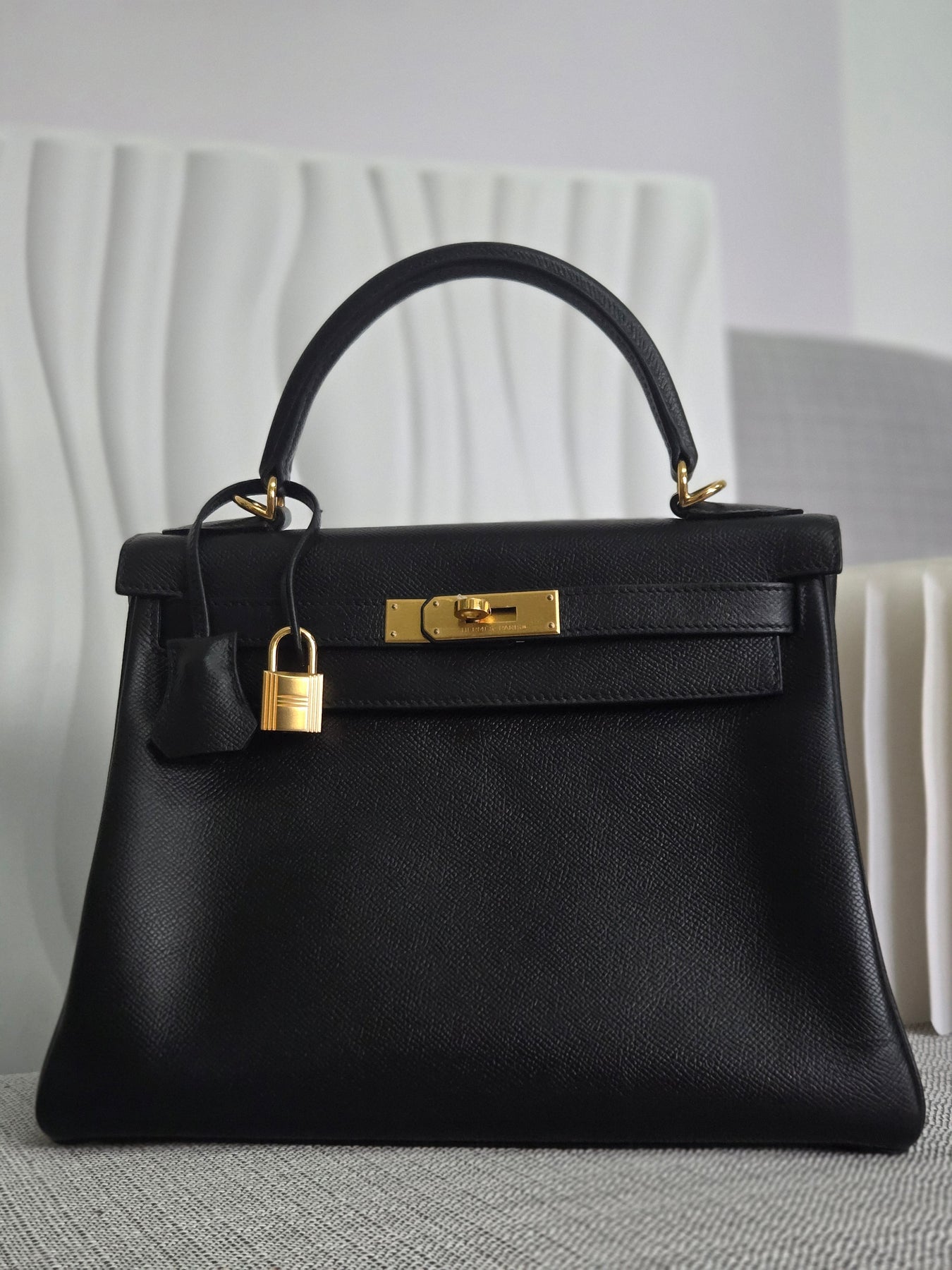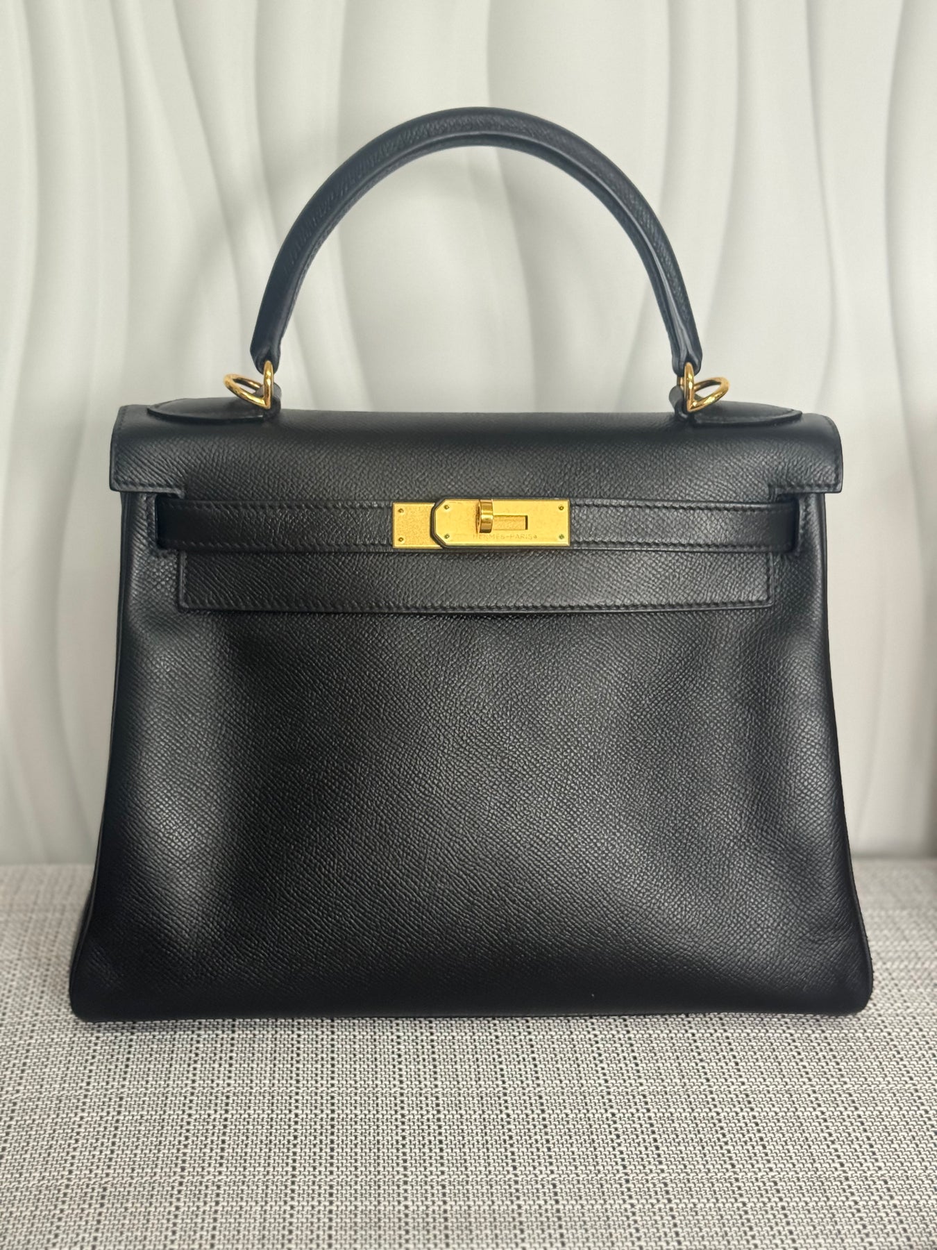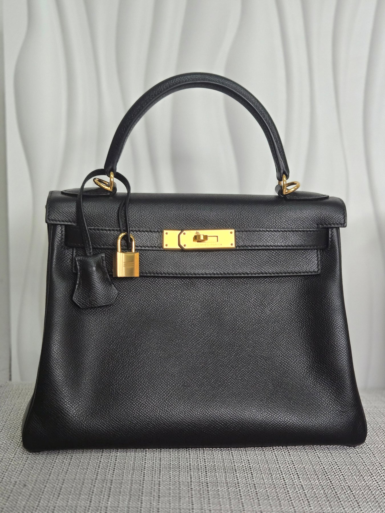 Hermes Noir/Black Epsom Leather GHW Kelly 28 stamp N 2010