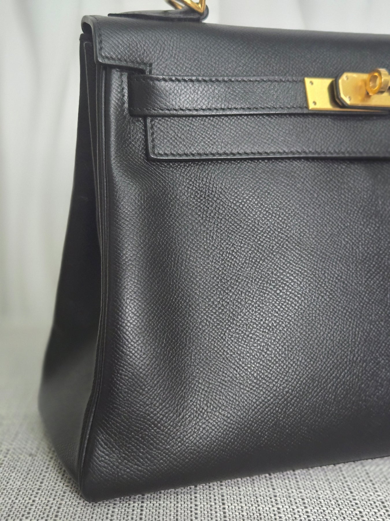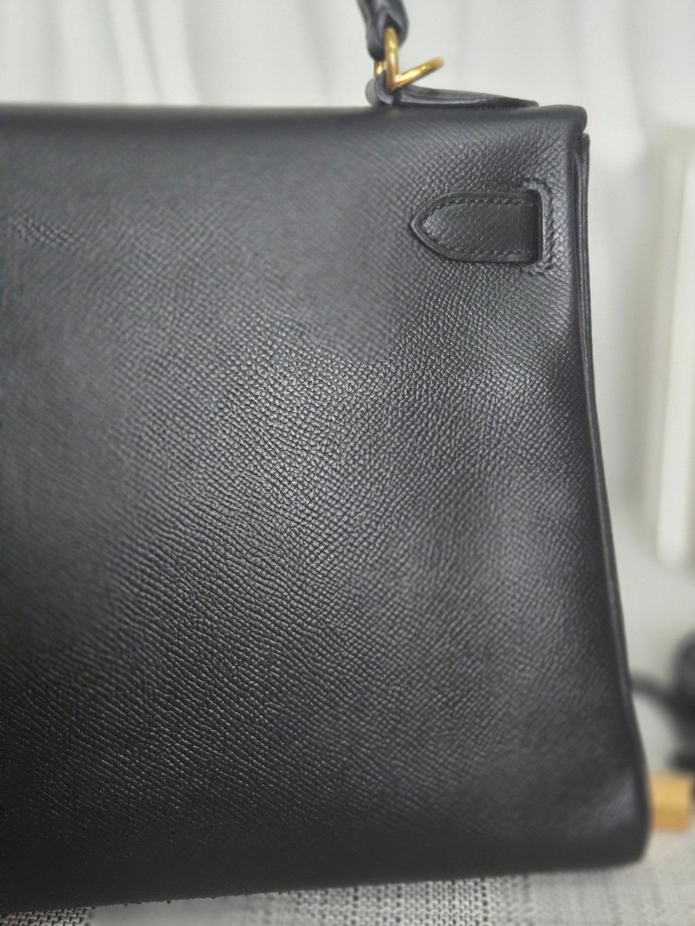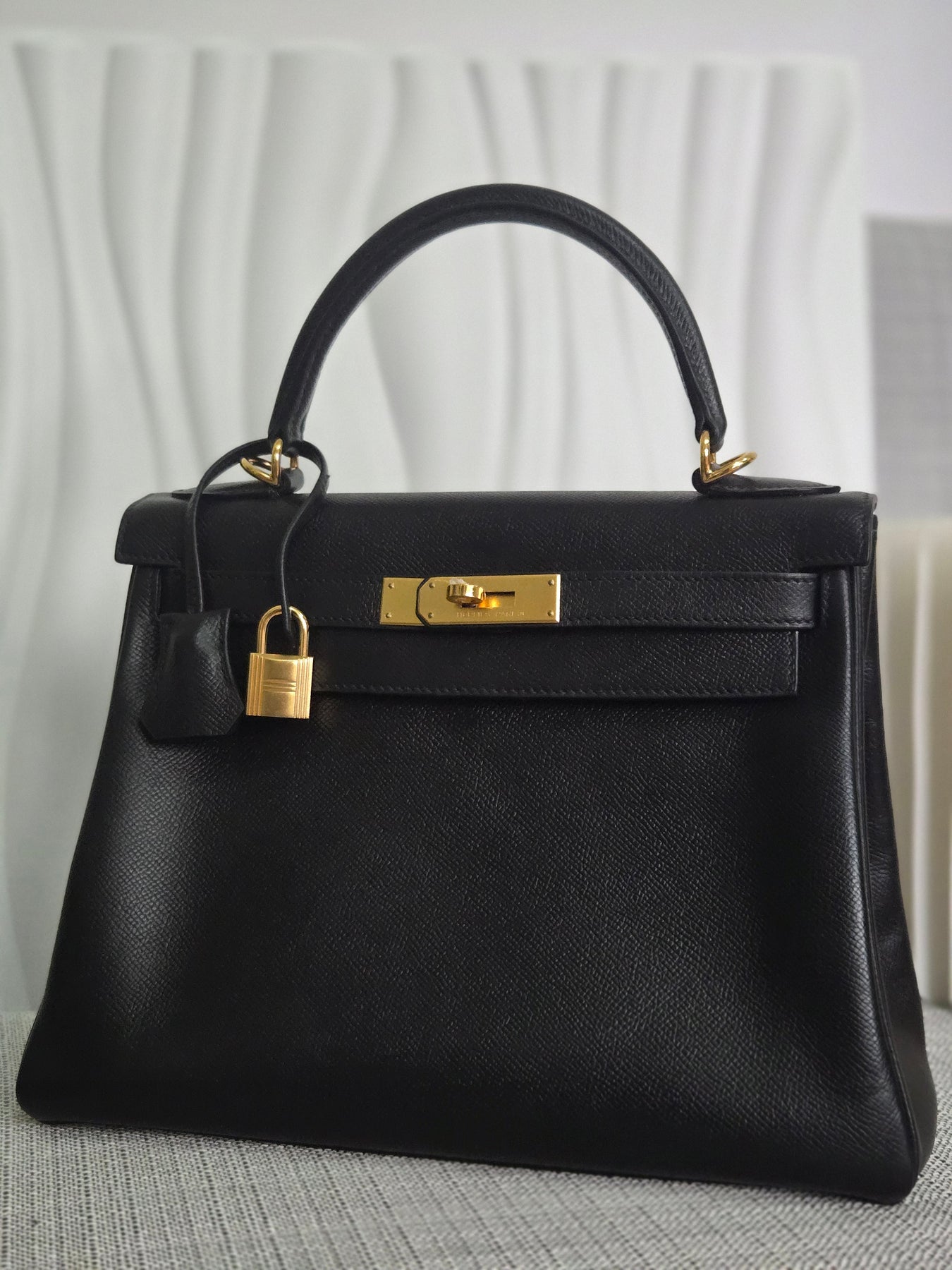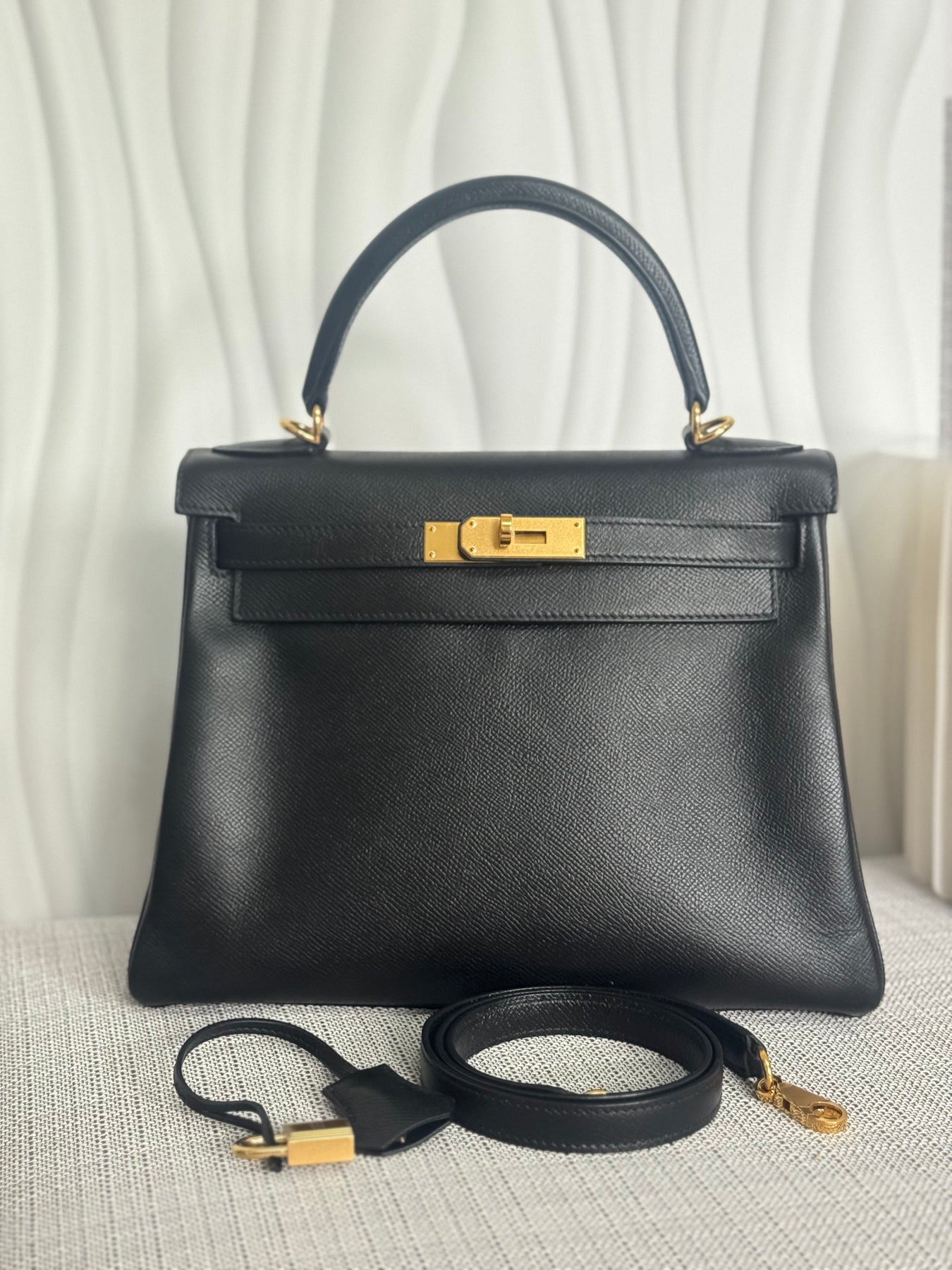 Hermes Noir/Black Epsom Leather GHW Kelly 28 stamp N 2010