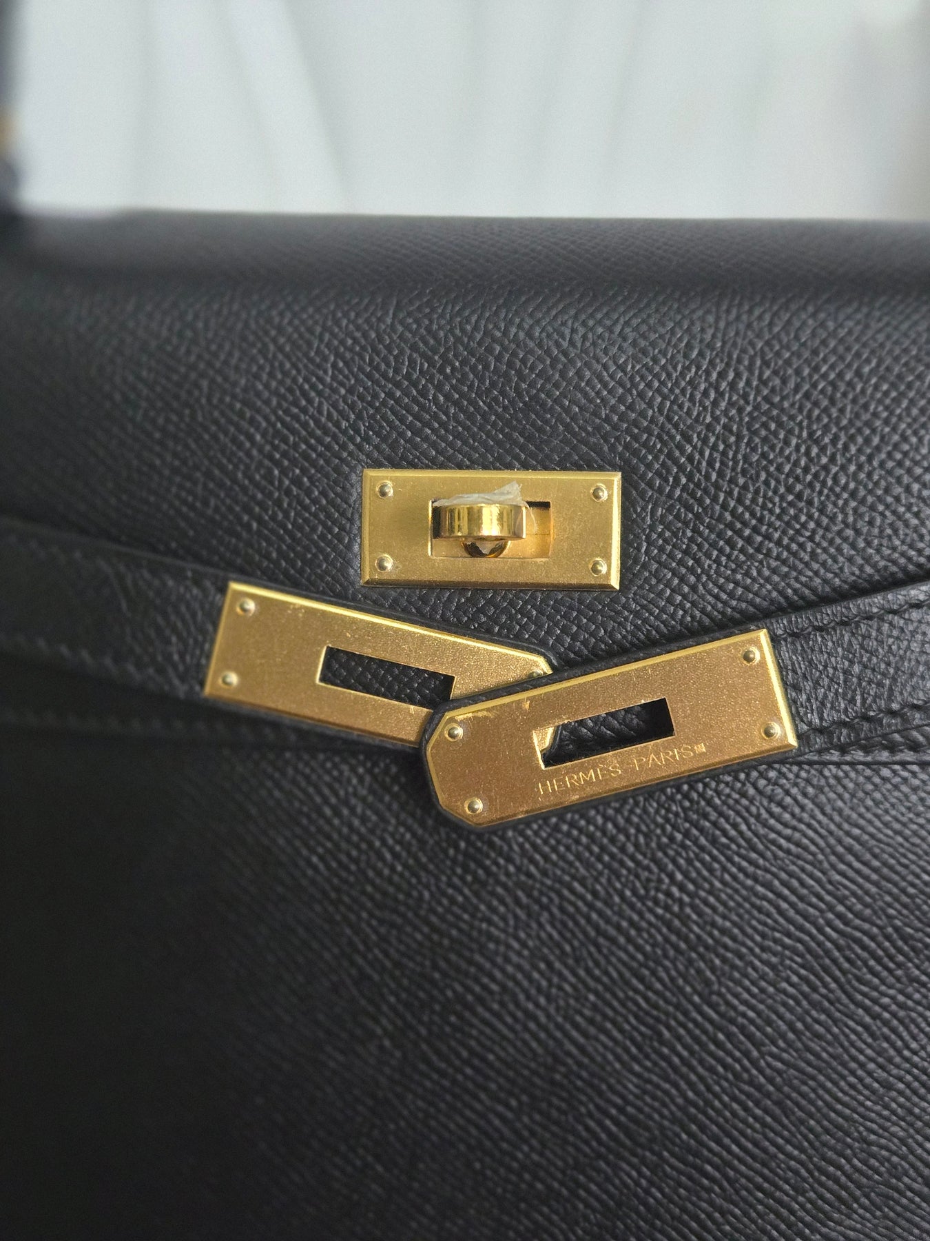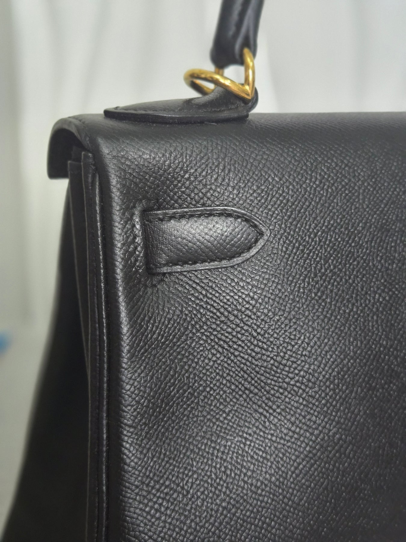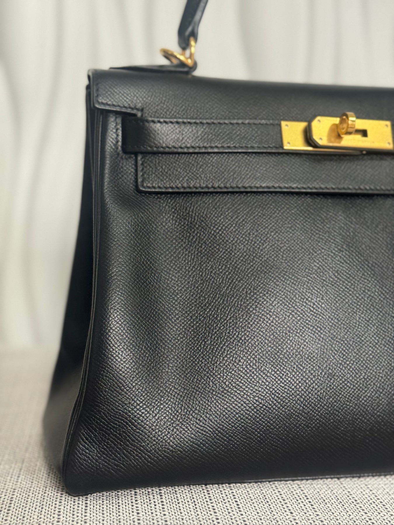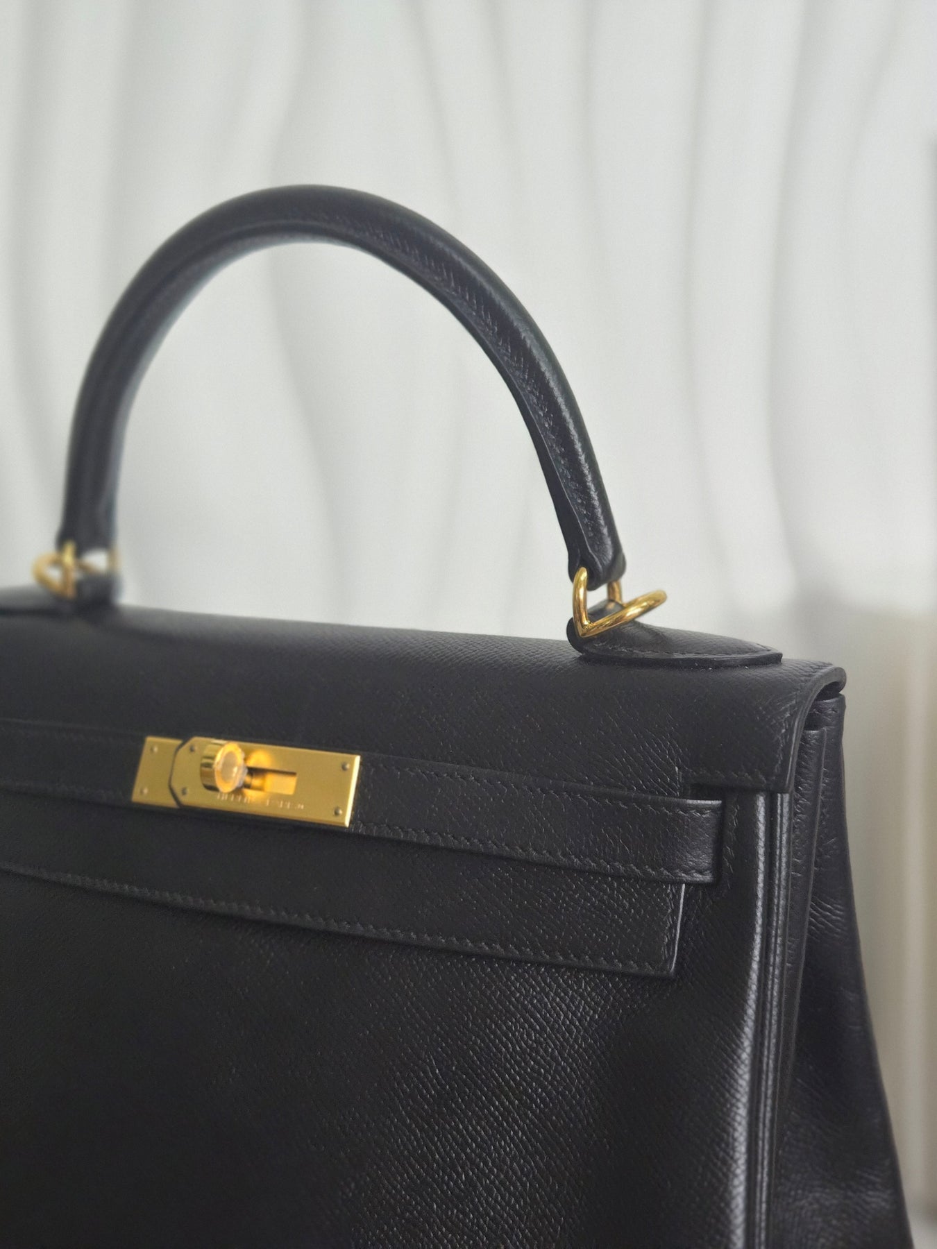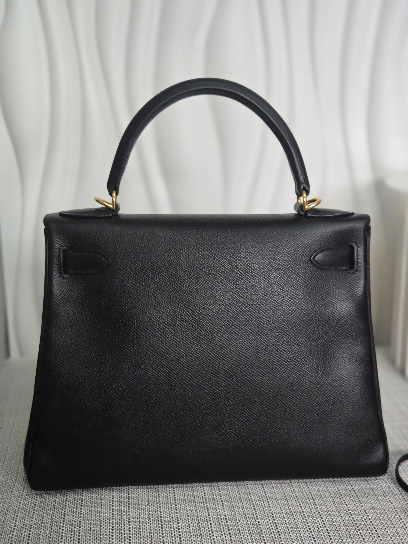 Hermes Noir/Black Epsom Leather GHW Kelly 28 stamp N 2010