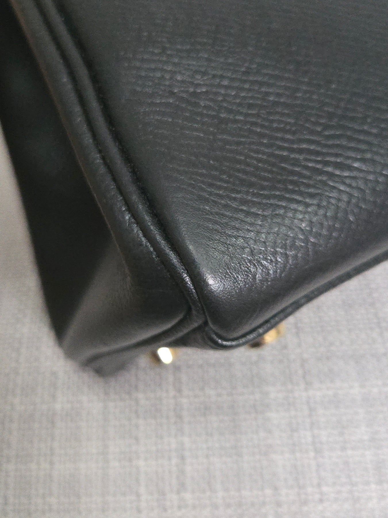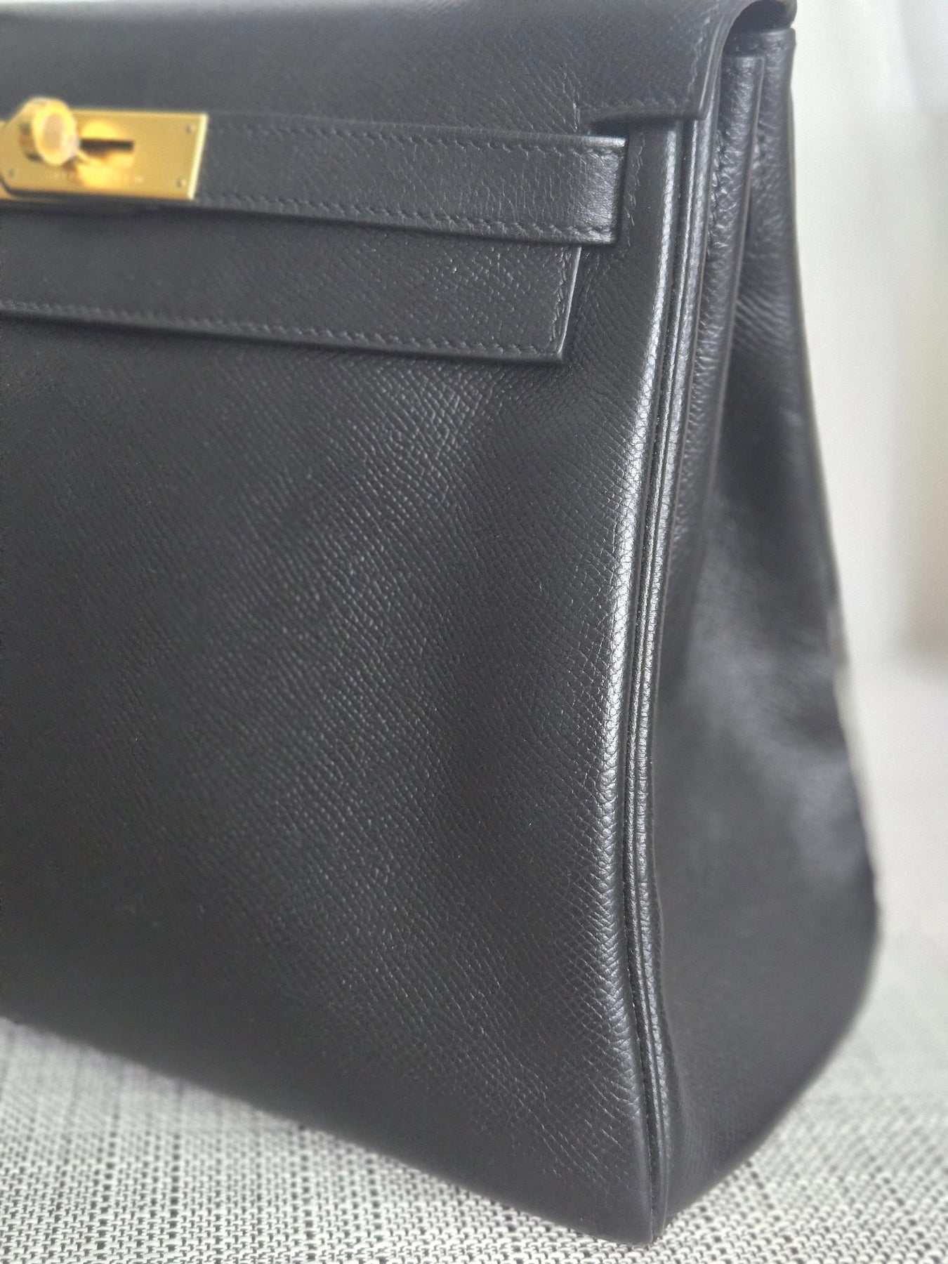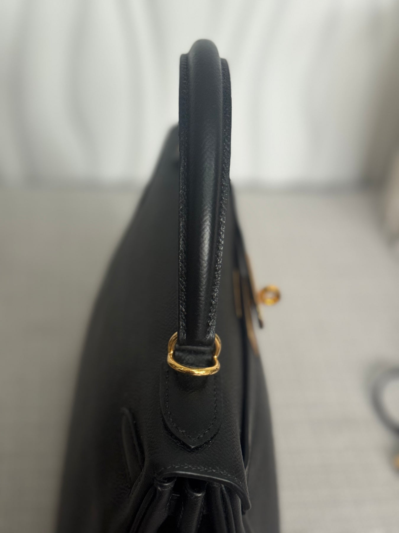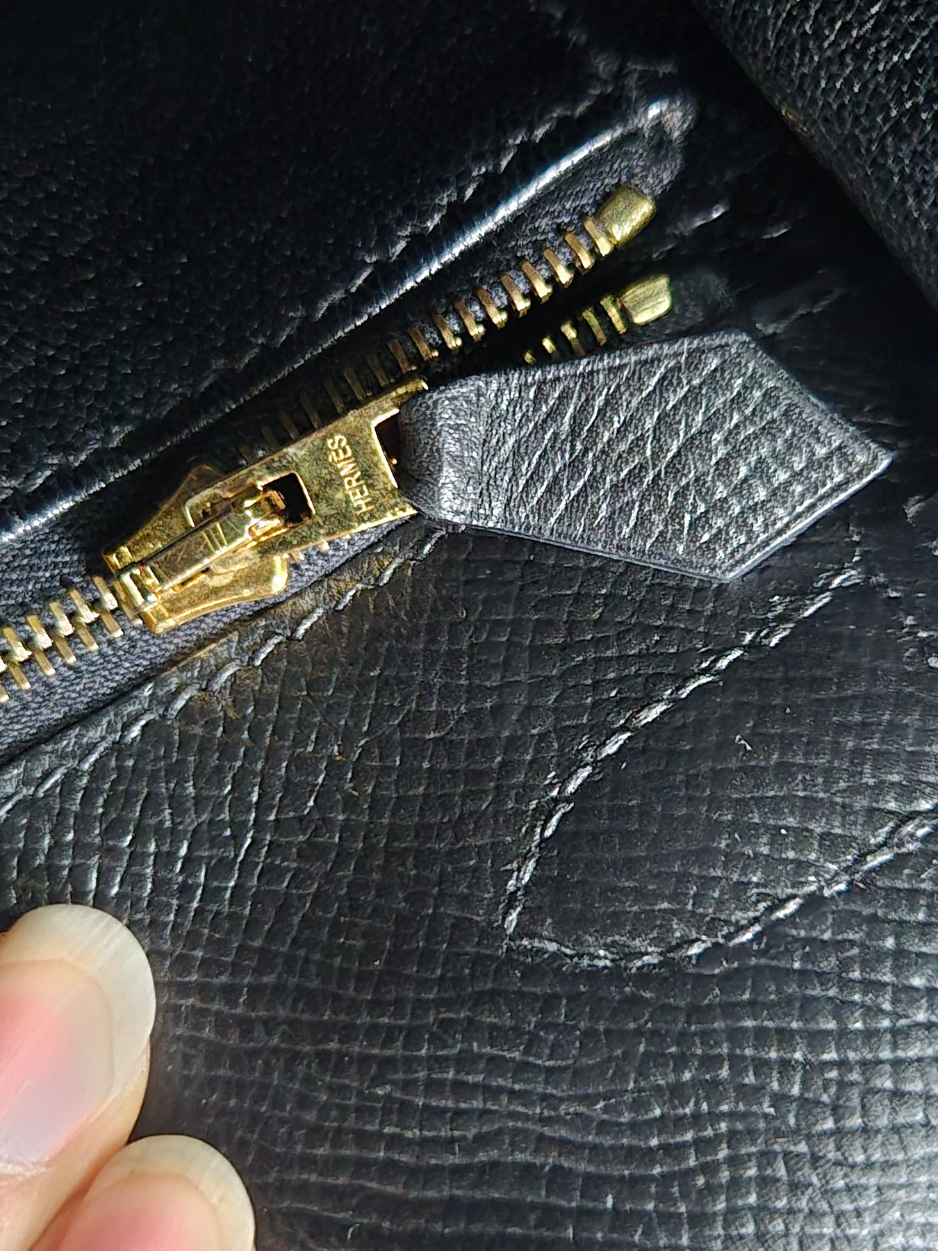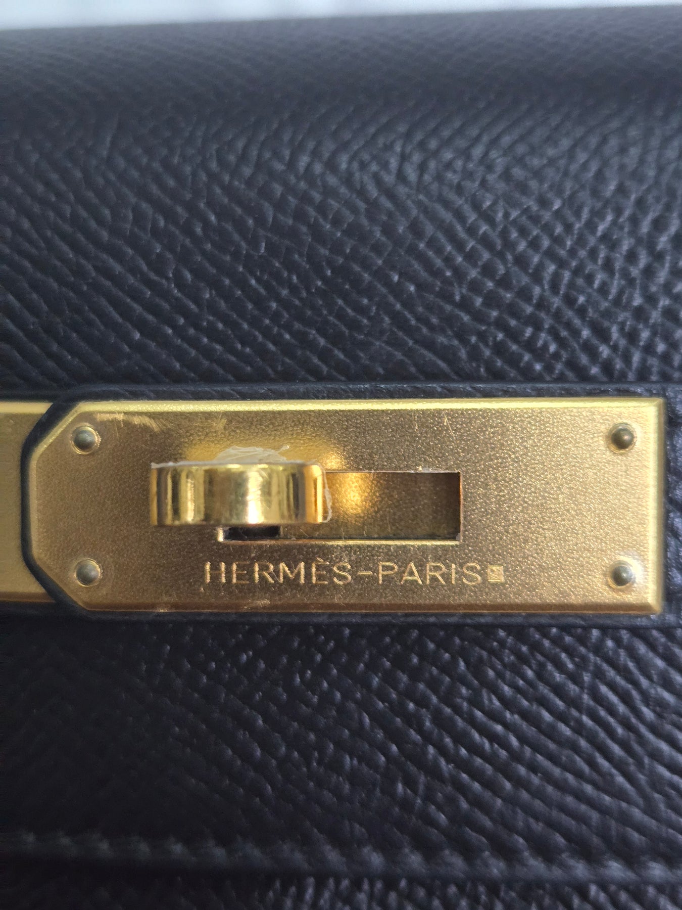 Hermes Noir/Black Epsom Leather GHW Kelly 28 stamp N 2010