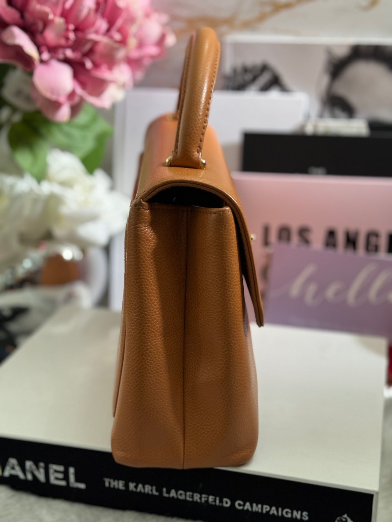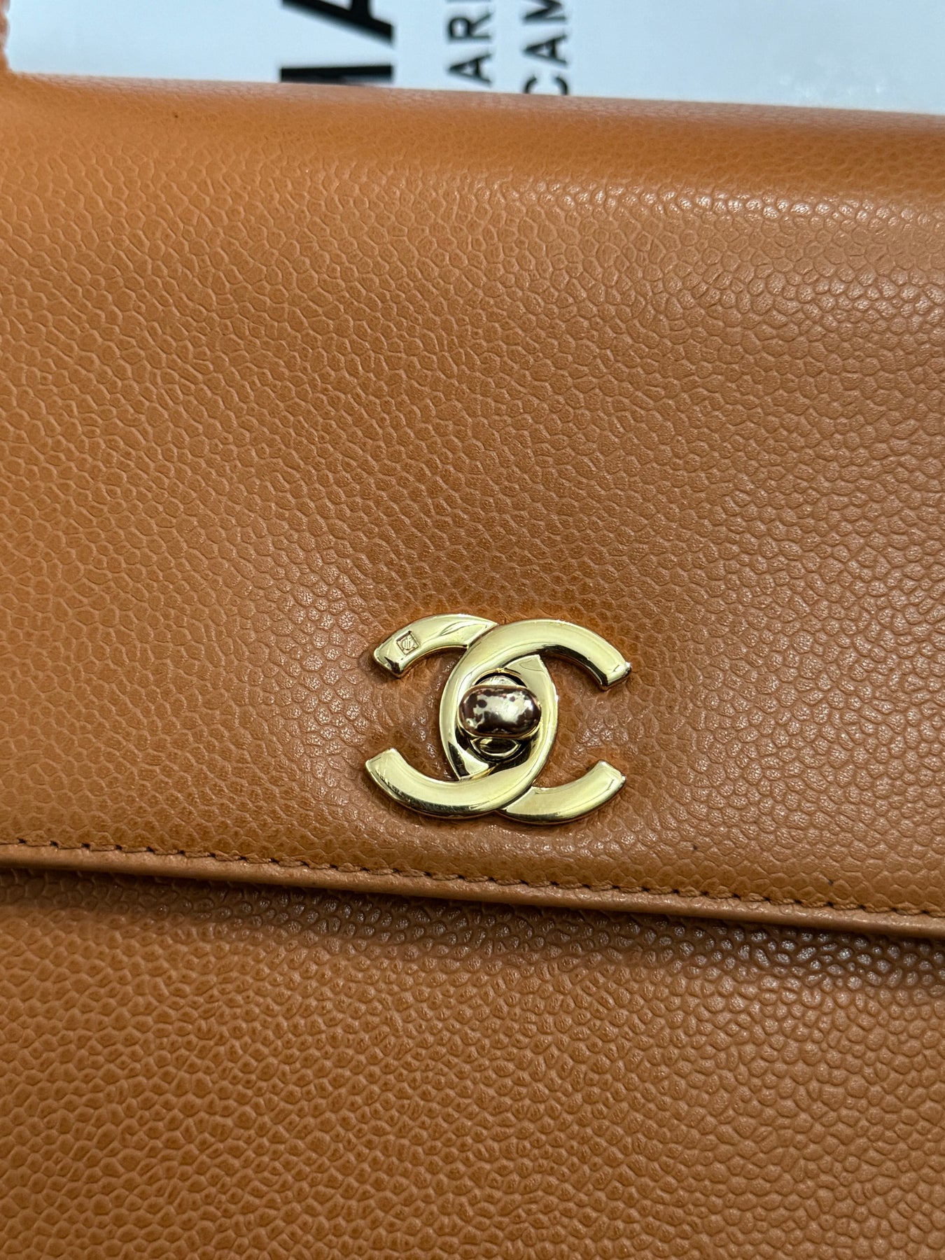 Chanel series 5 circa 1999 Kelly Top Handle Flap 24K GHW in Orange Caviar A12391
