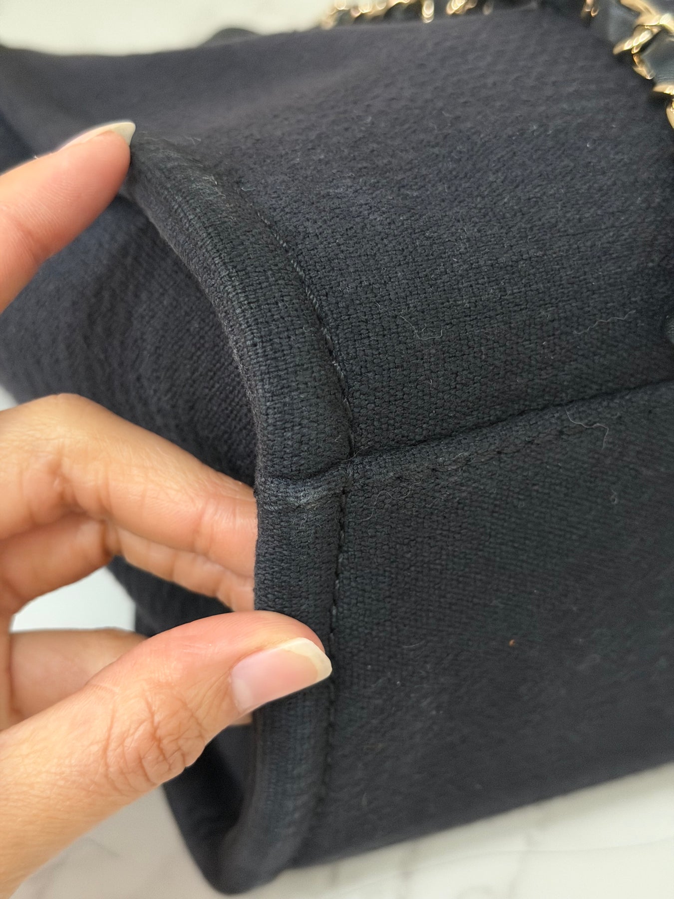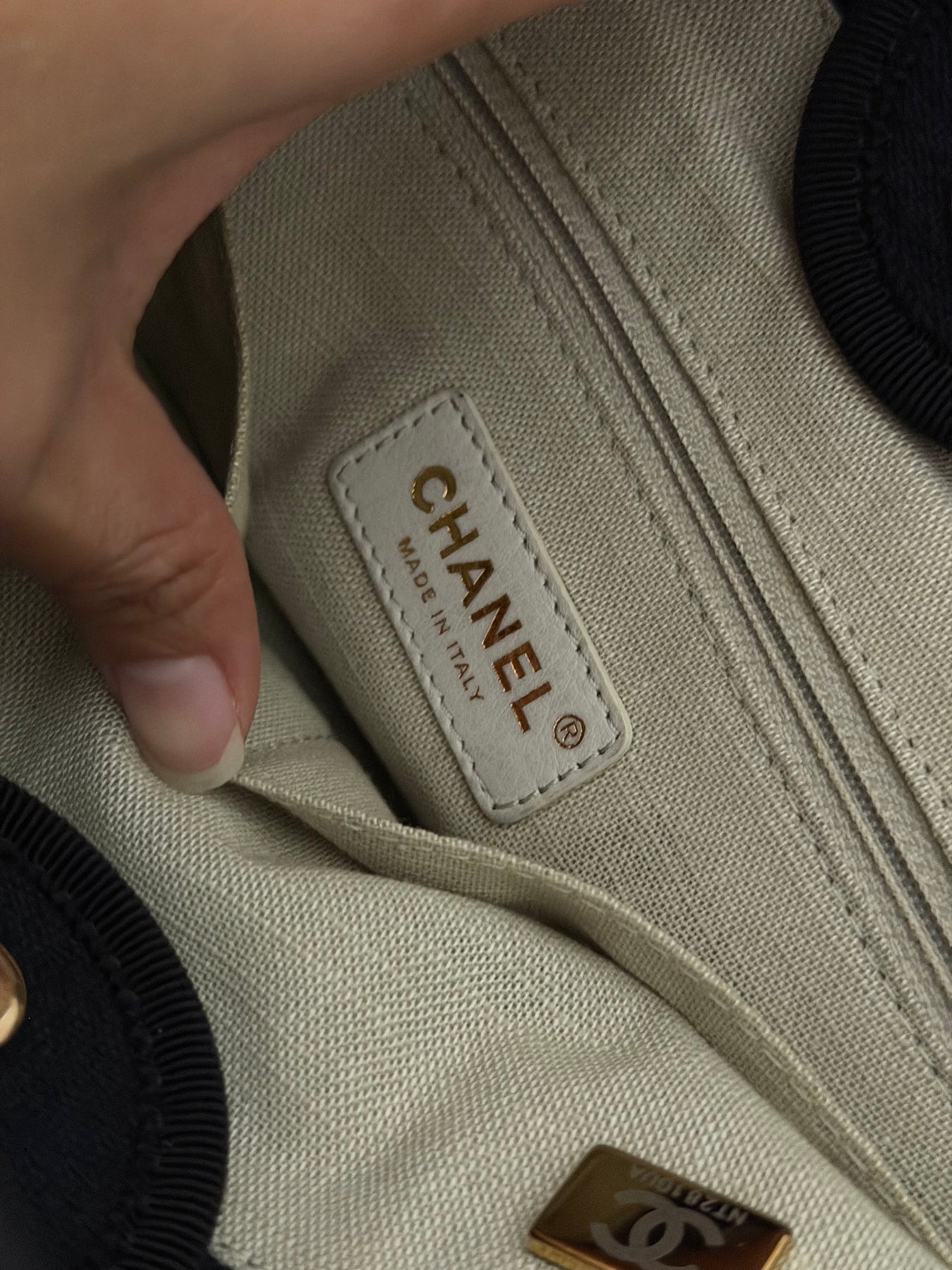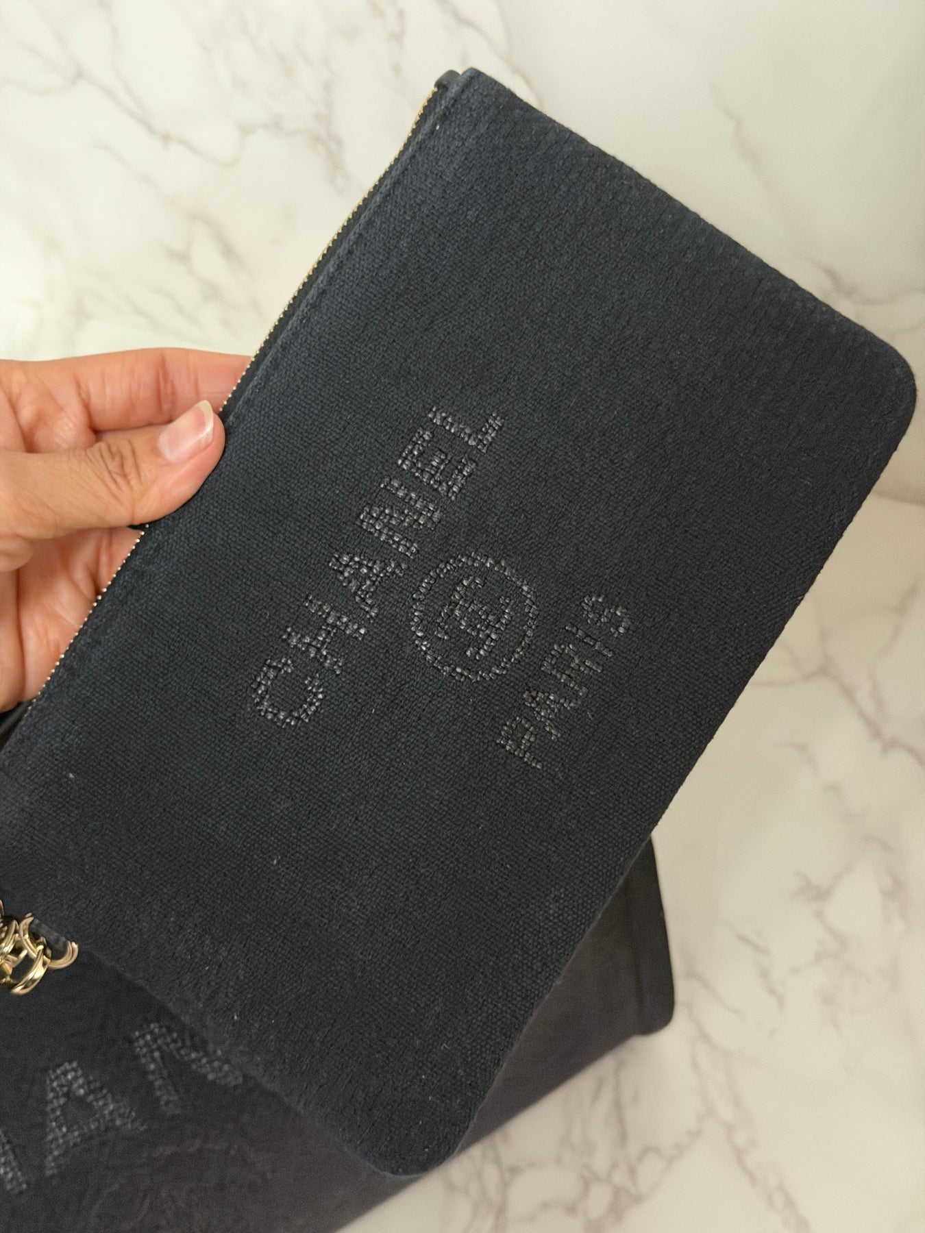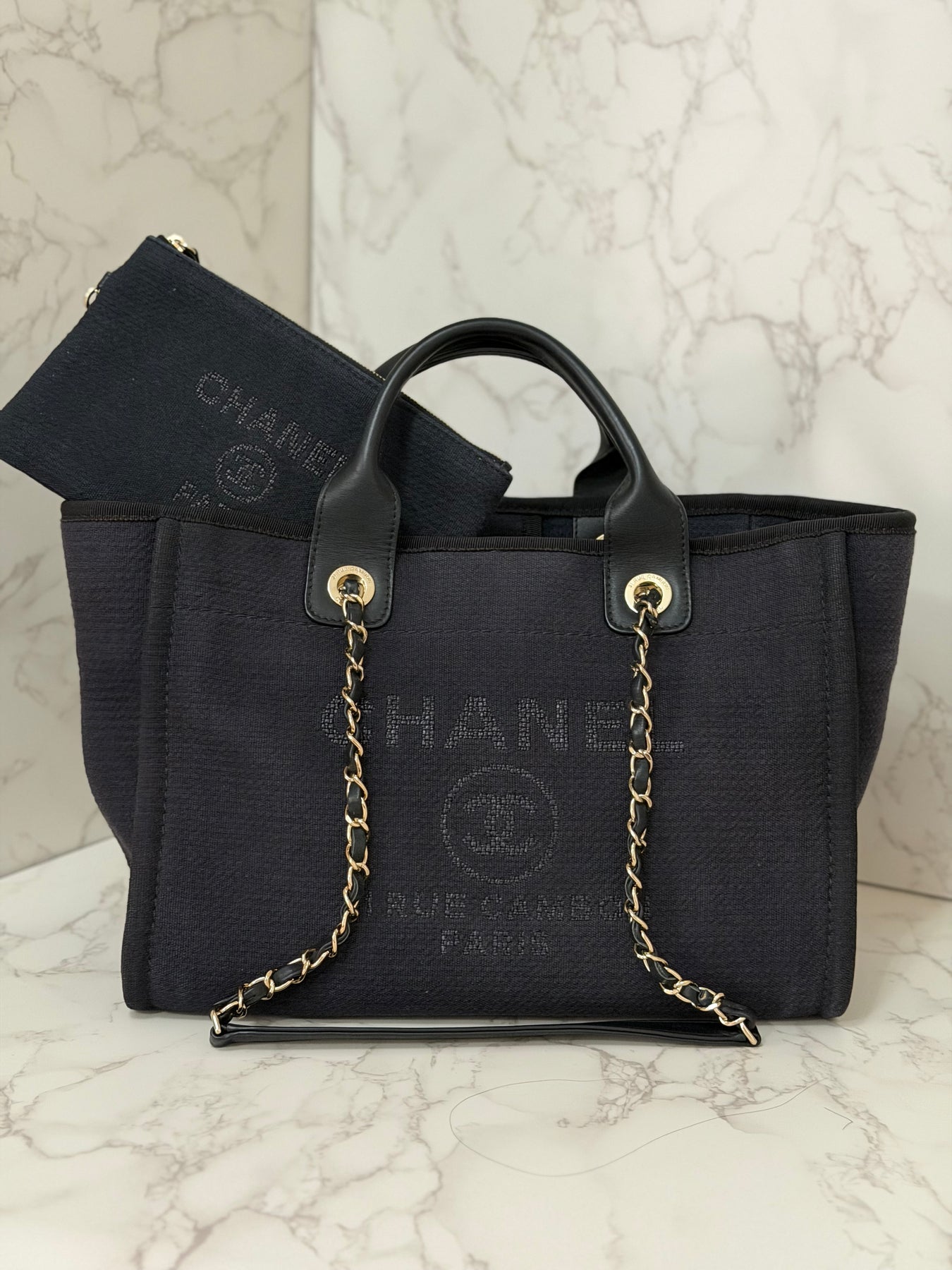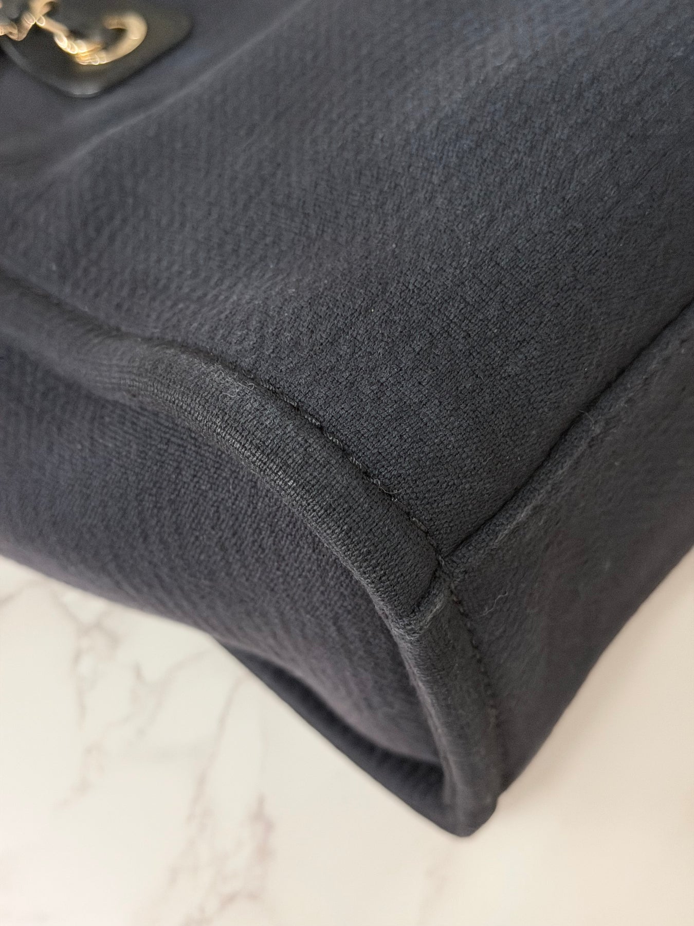CHANEL 22B 2022 Black Tweed Deauville Tote size Small with Top Handle LGHW and Detachable Pouch