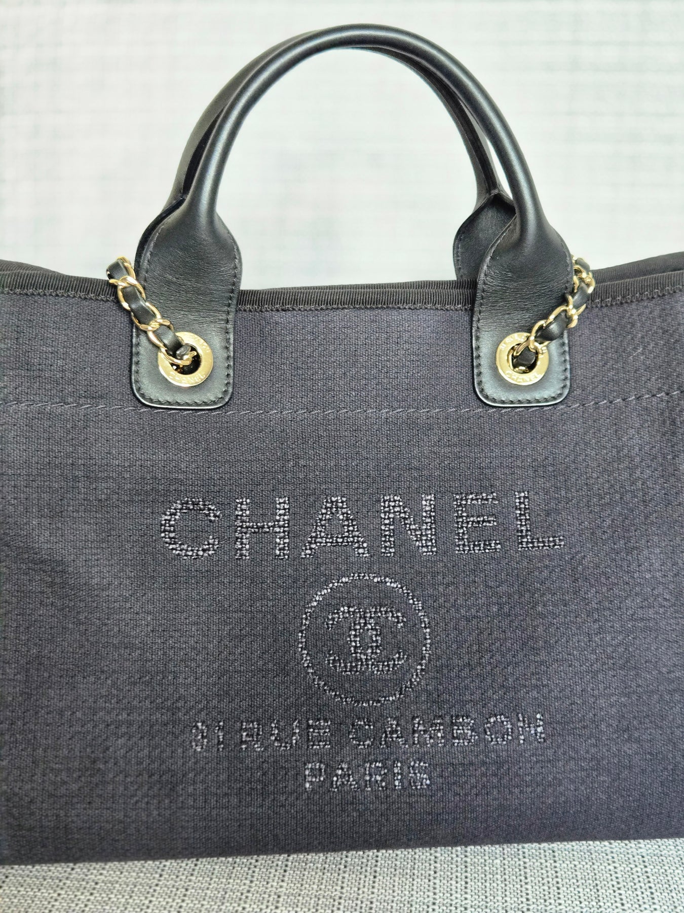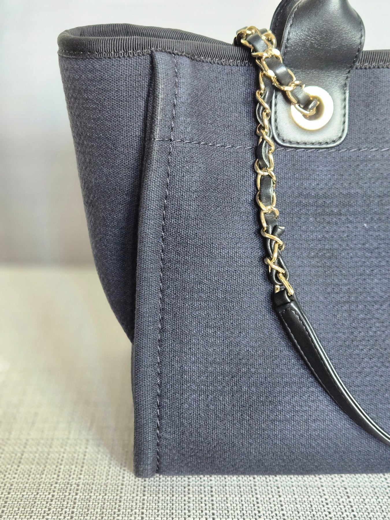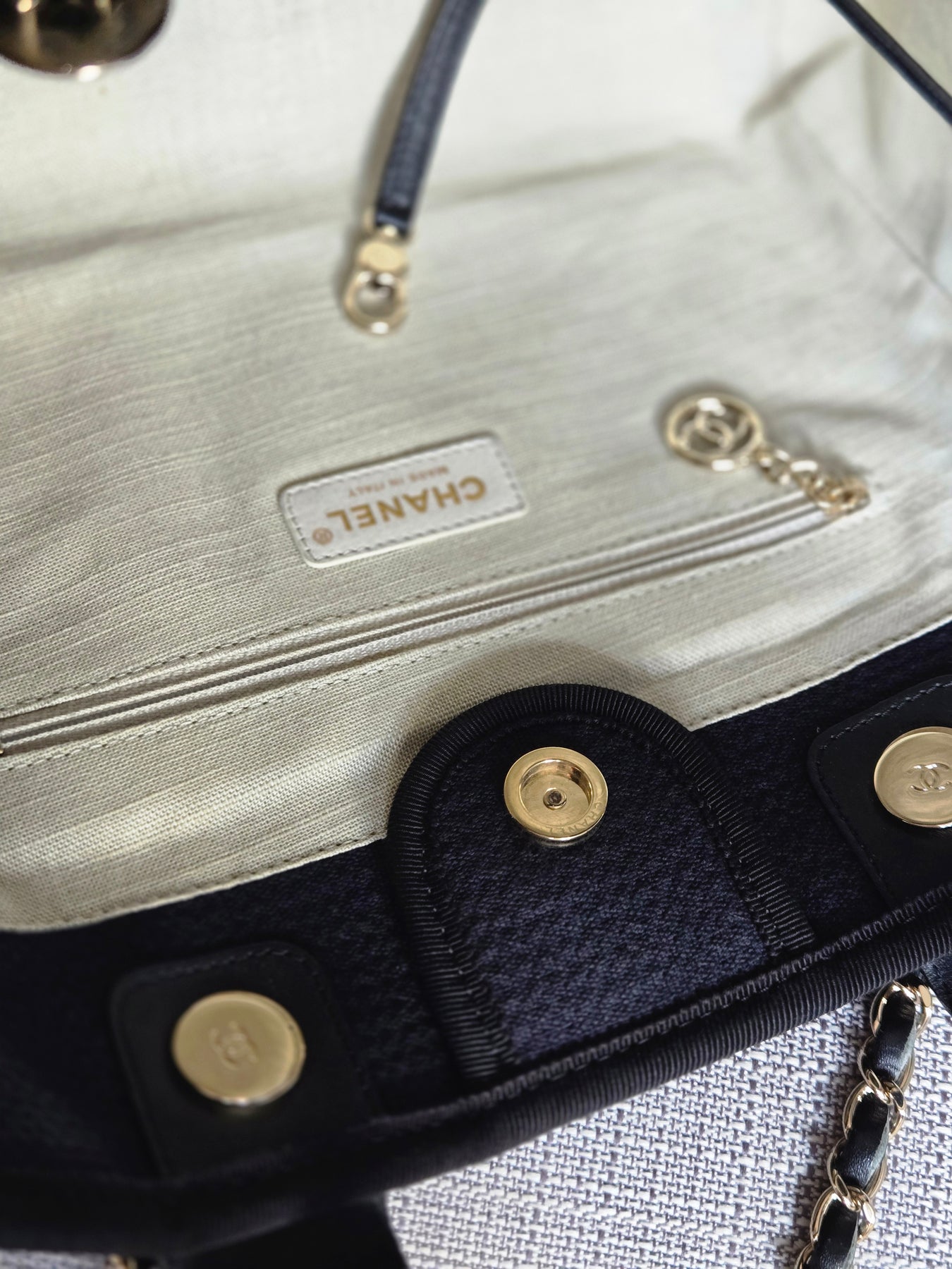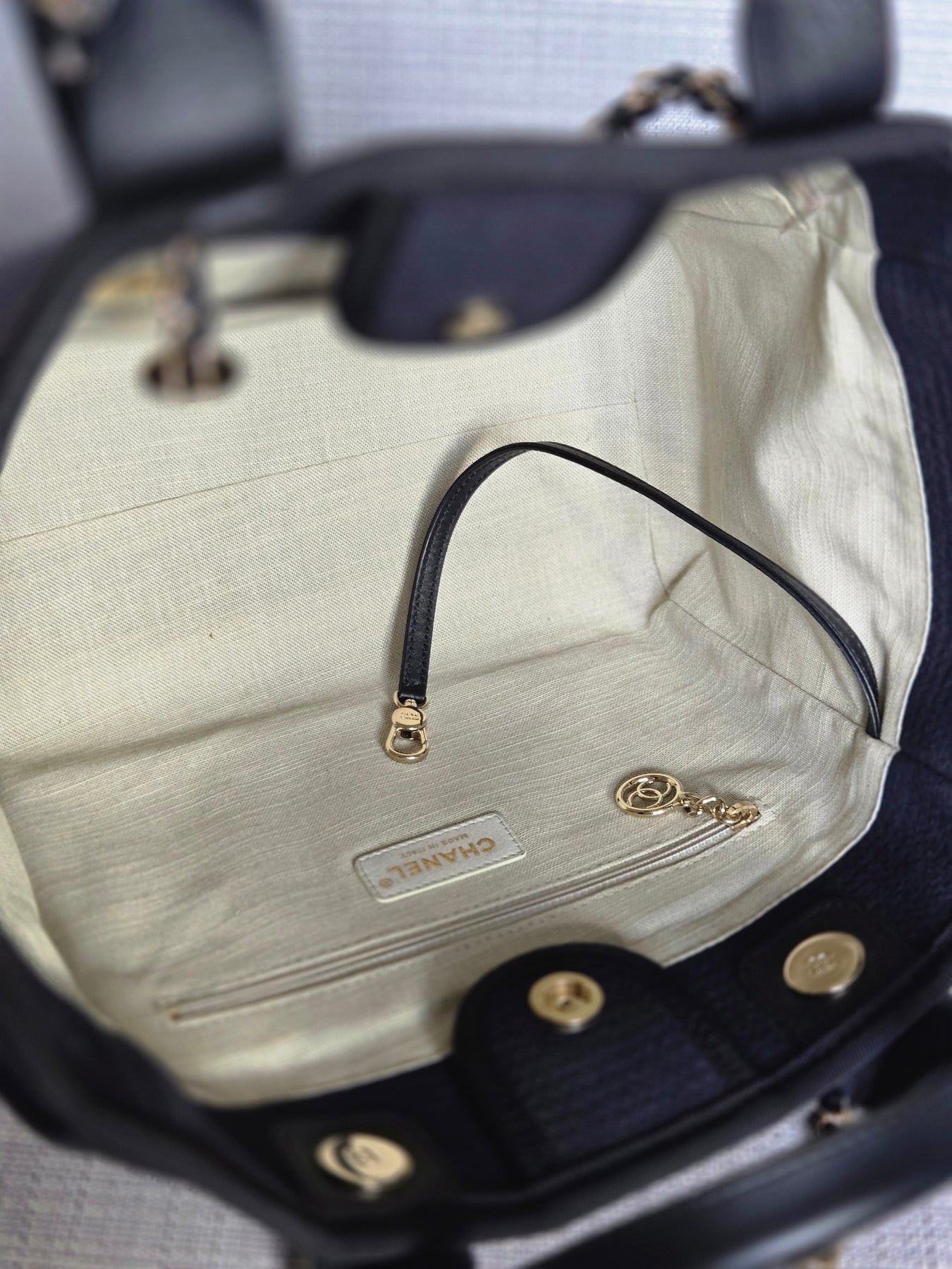 Chanel 22B Collection 2022 Black Tweed Small Deauville Tote with Top Handle