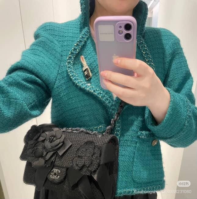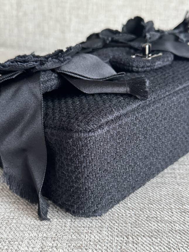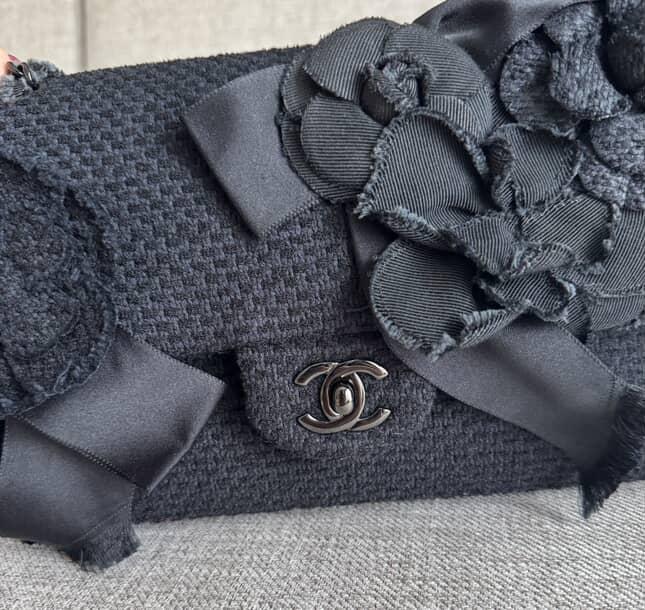 CHANEL 23C 2023 Embroidered Flower Tweed Medium Classic Flap Bag
