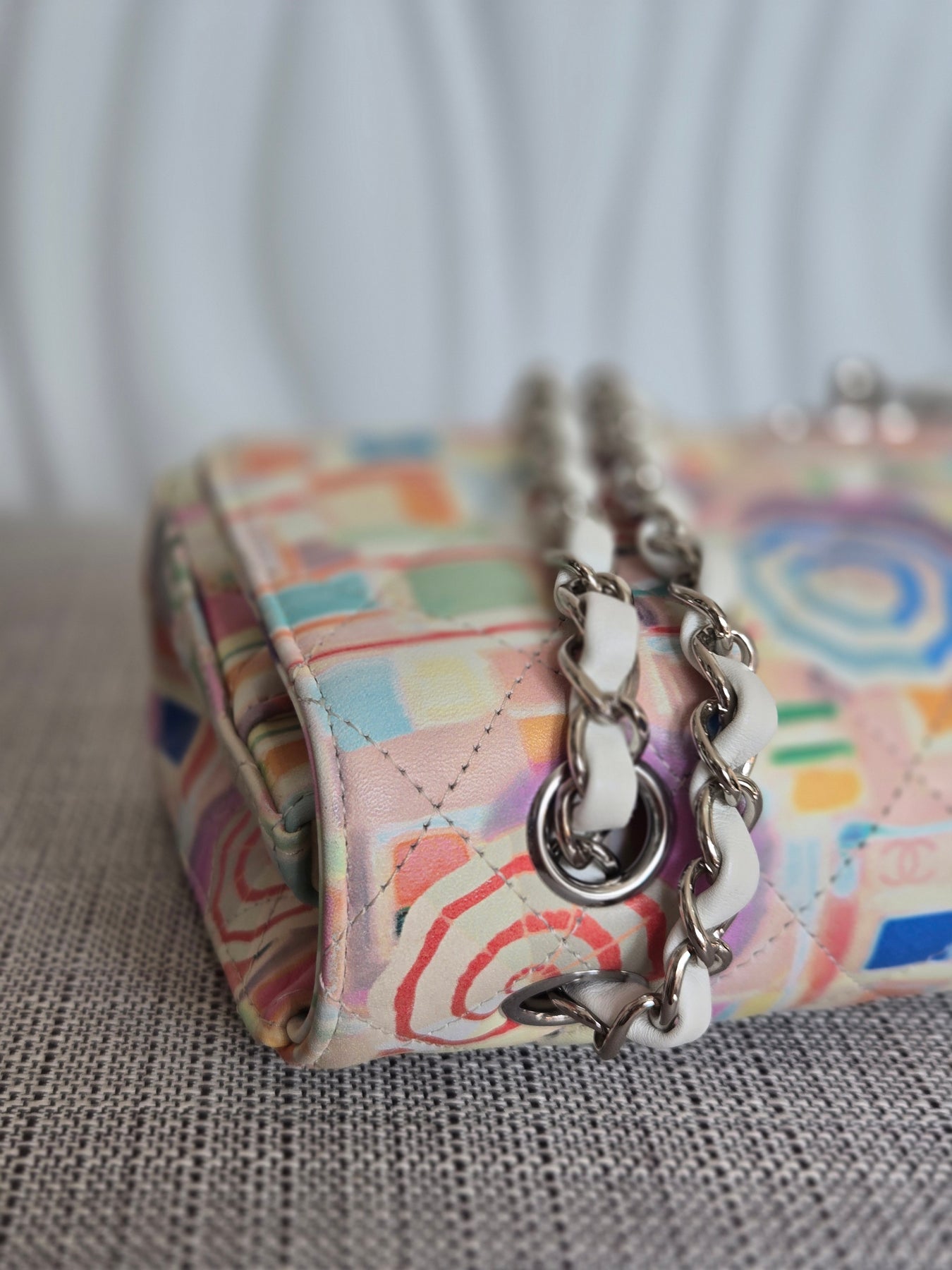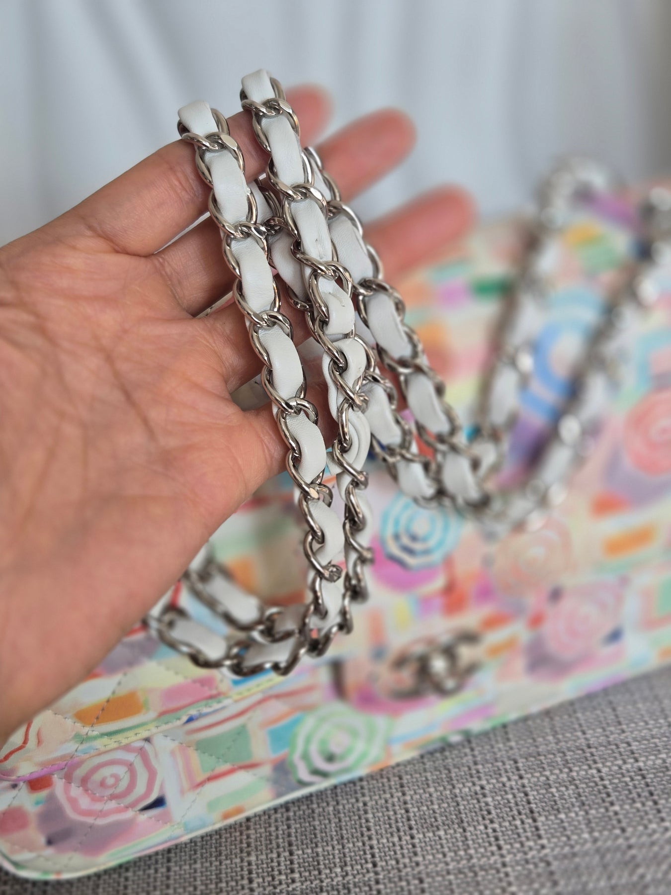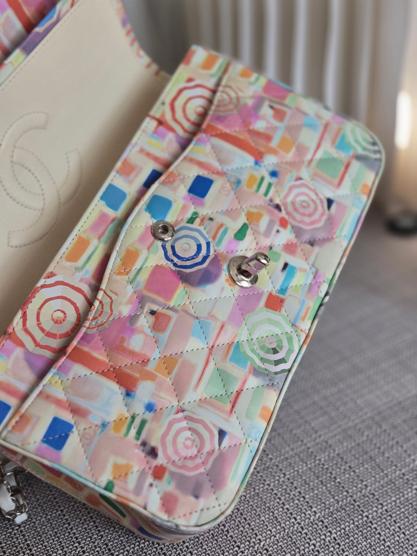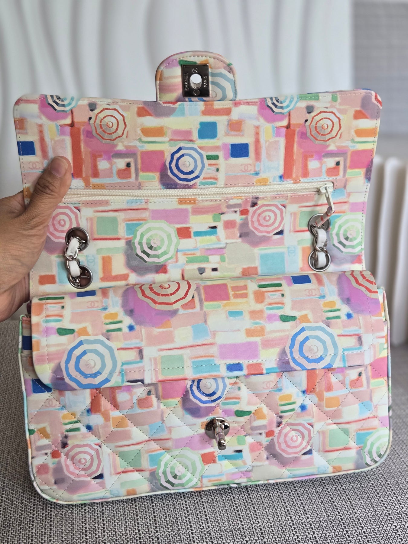 CHANEL Multi Color Rainbow Umbrella print calf skin SHW Medium Classic Double Flap Bag