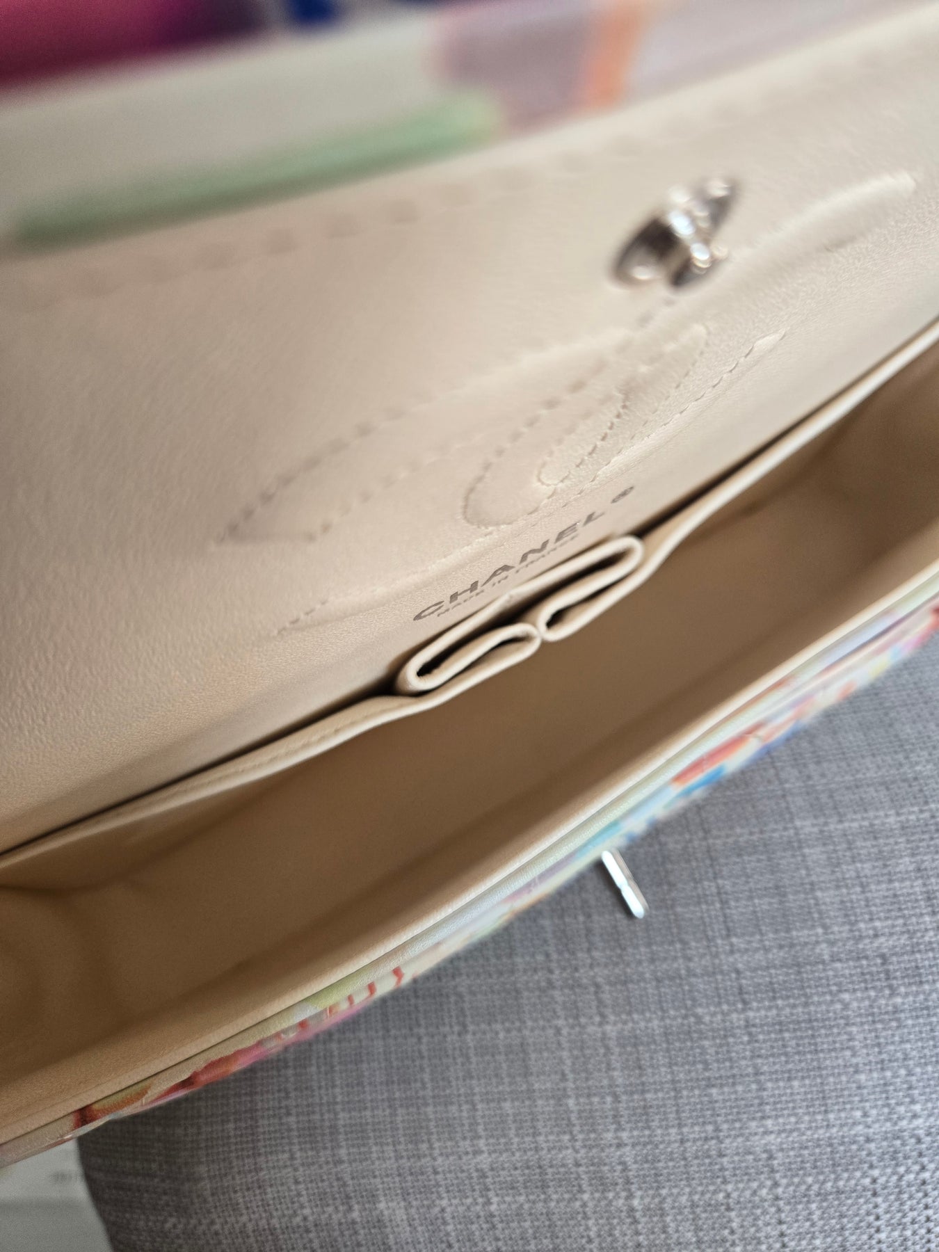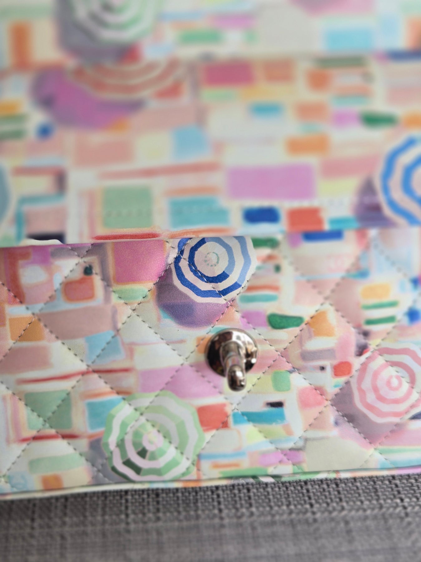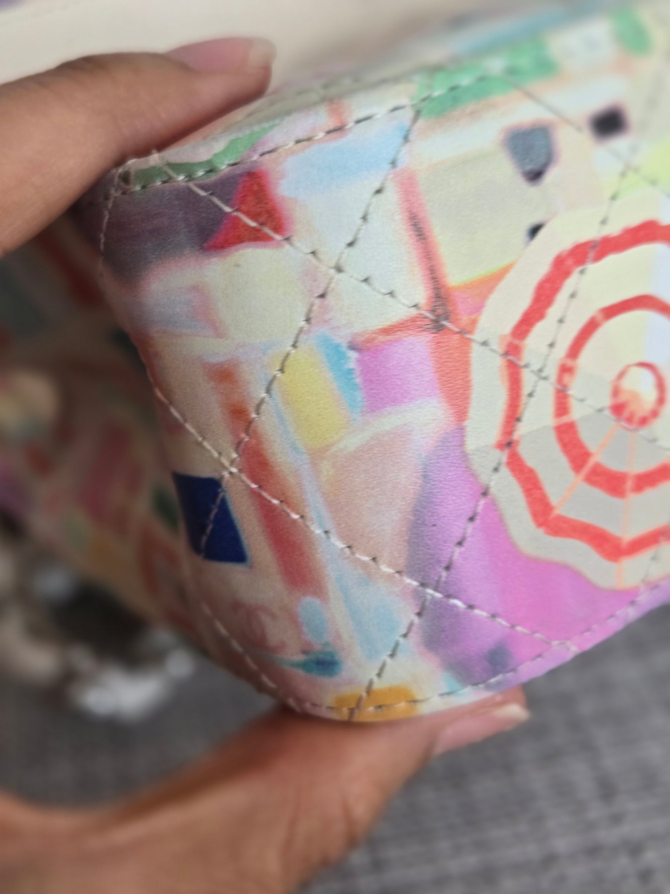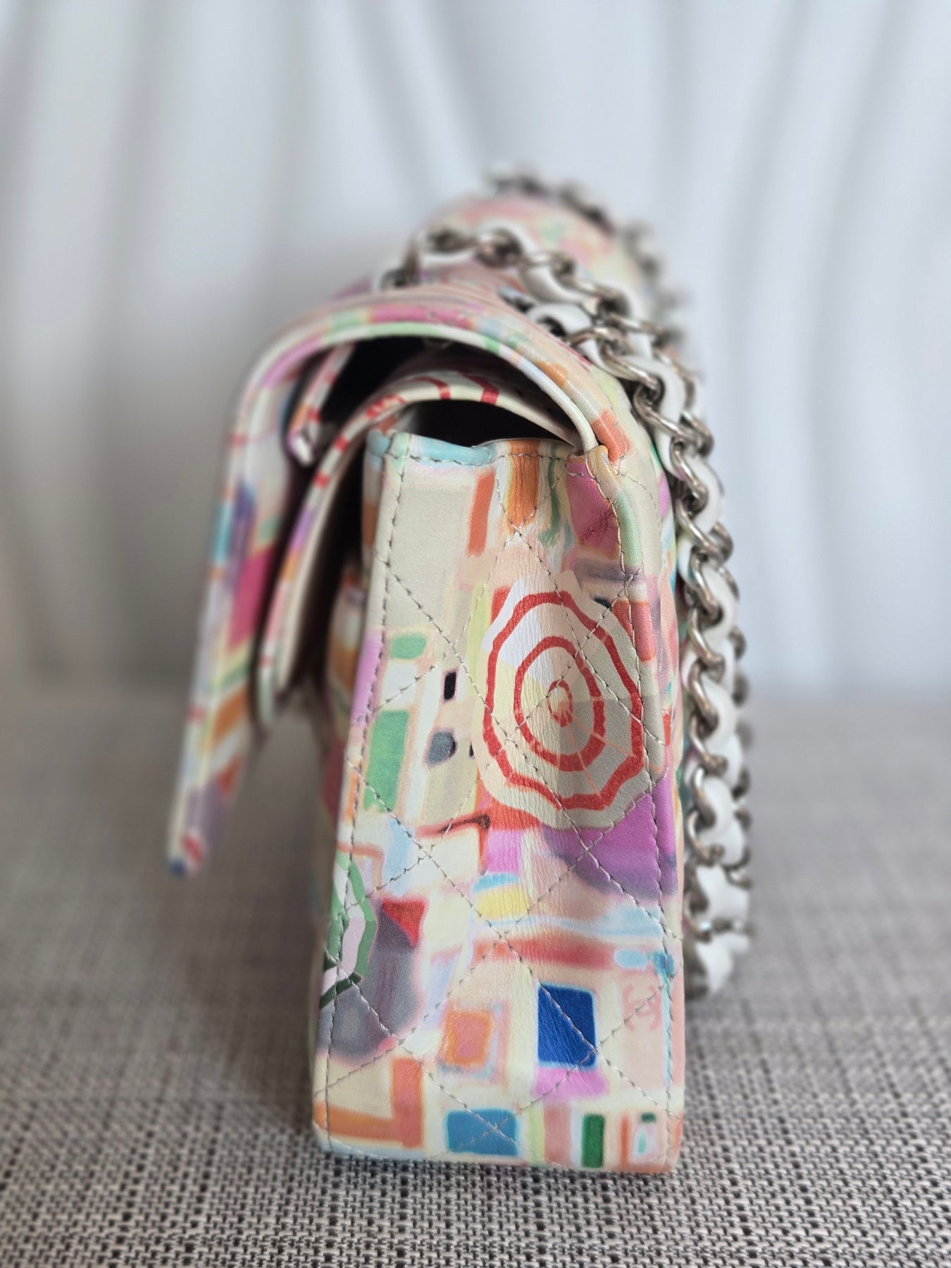 CHANEL Multi Color Rainbow Umbrella print calf skin SHW Medium Classic Double Flap Bag