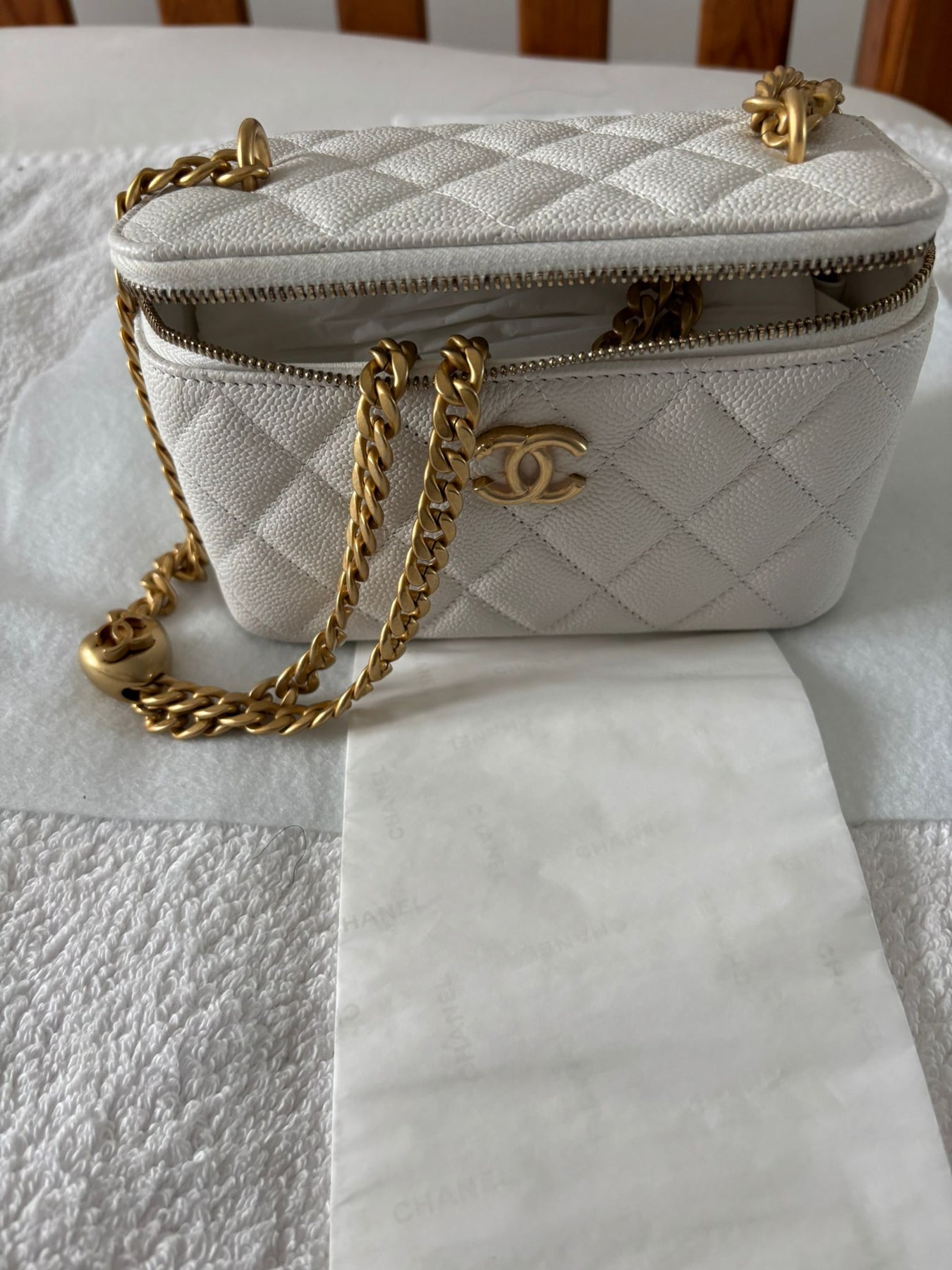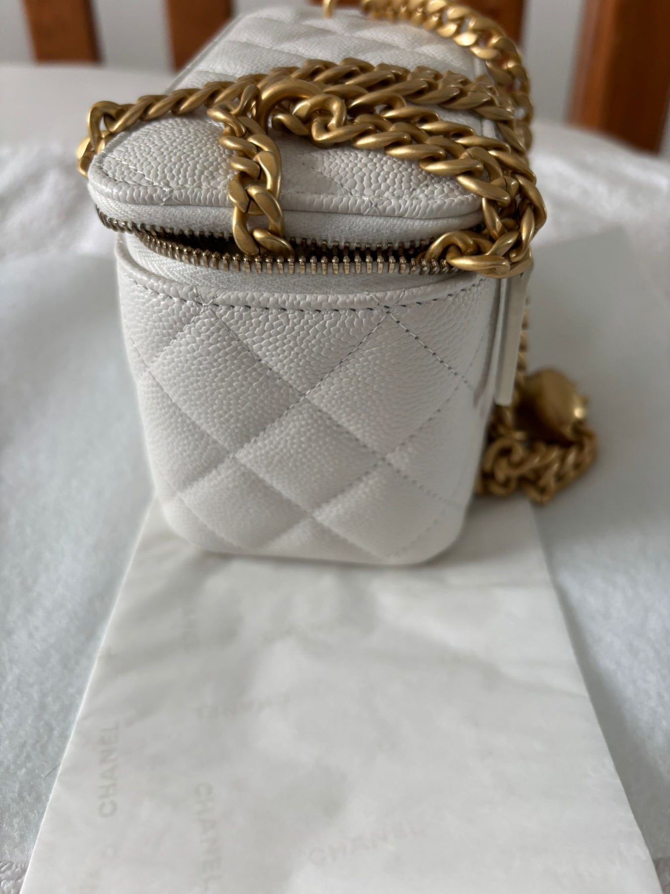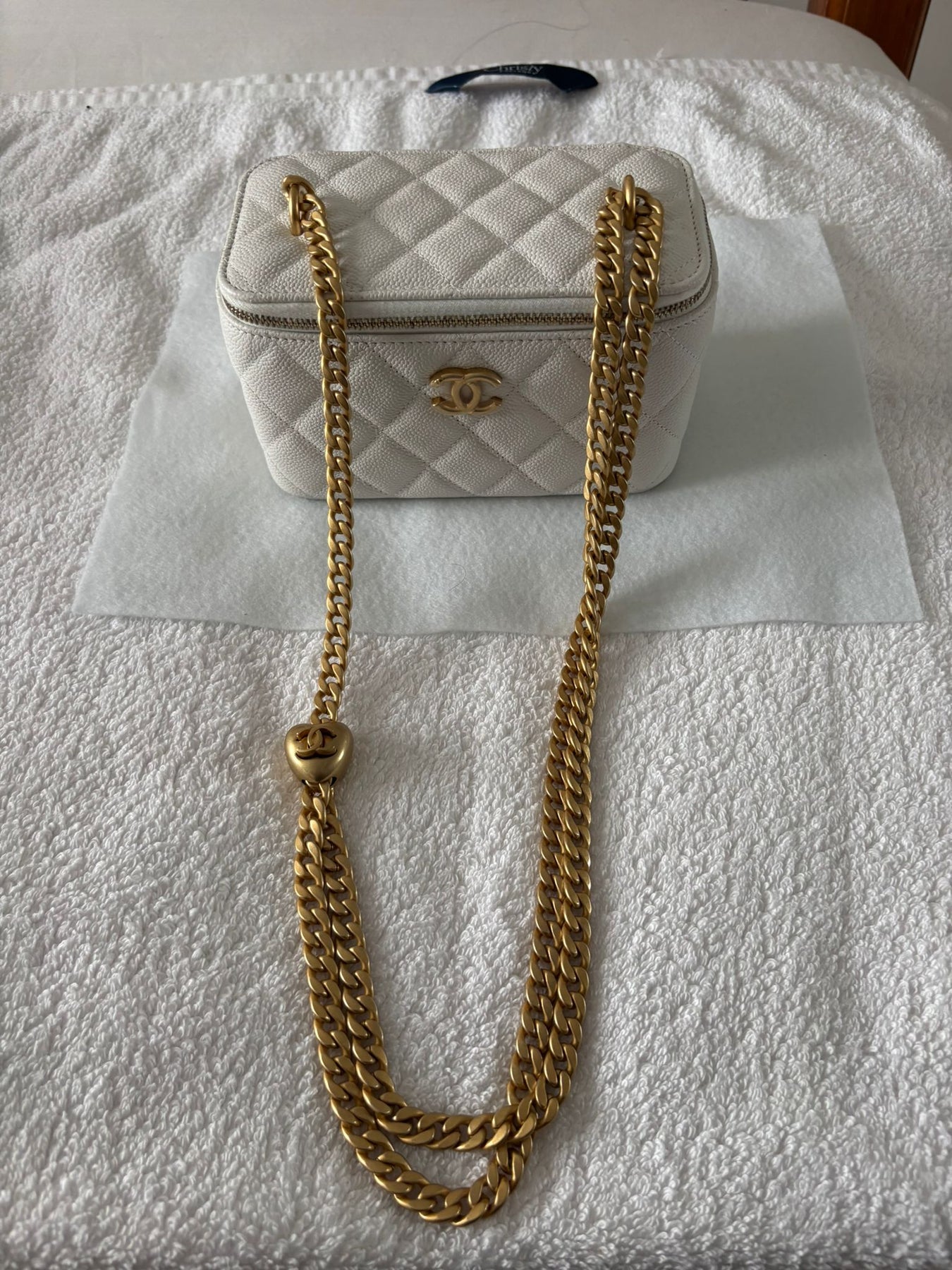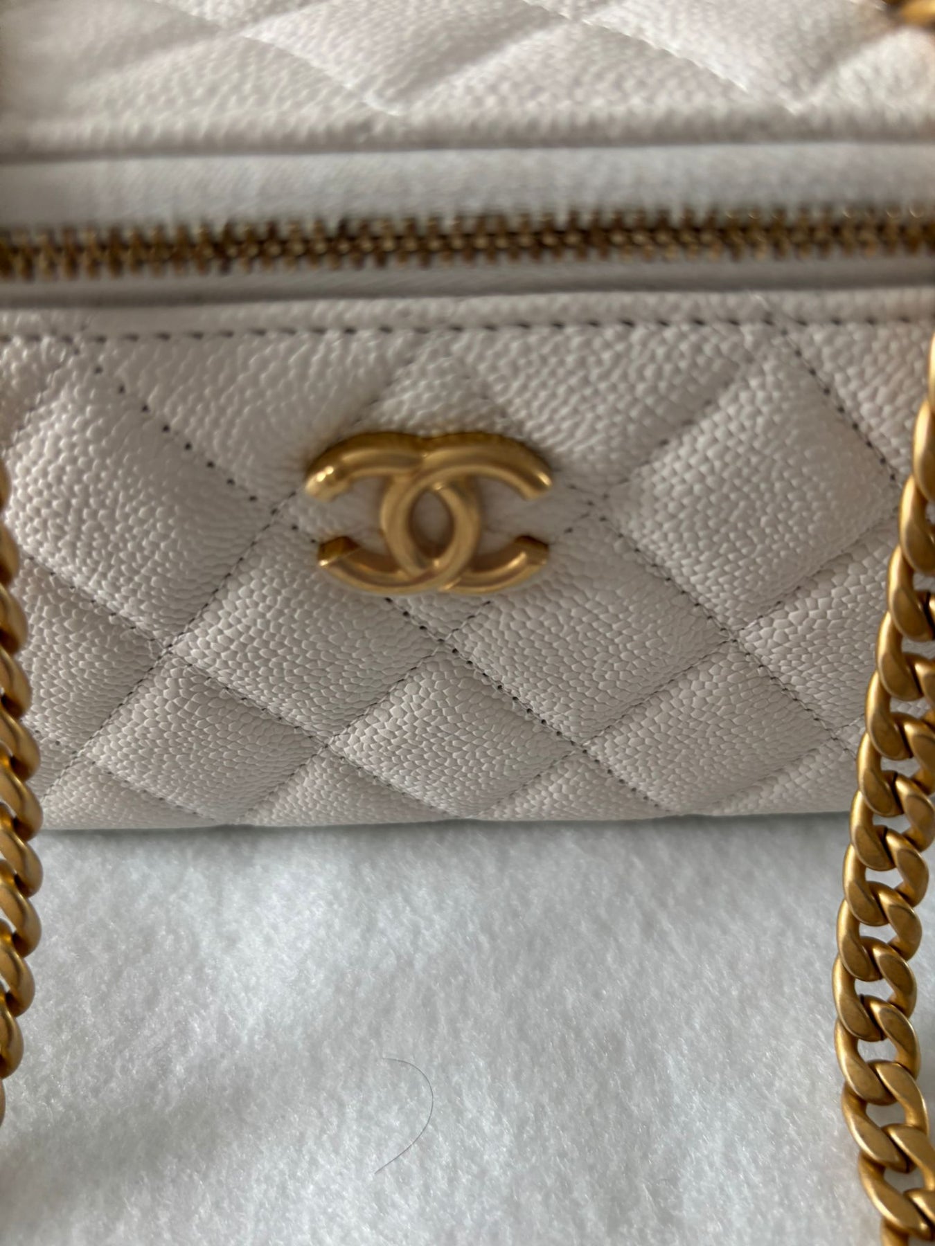 CHANEL 2023 23P Collection White Caviar Sweetheart Adjustable chain Small vanity Case with Aged GHW