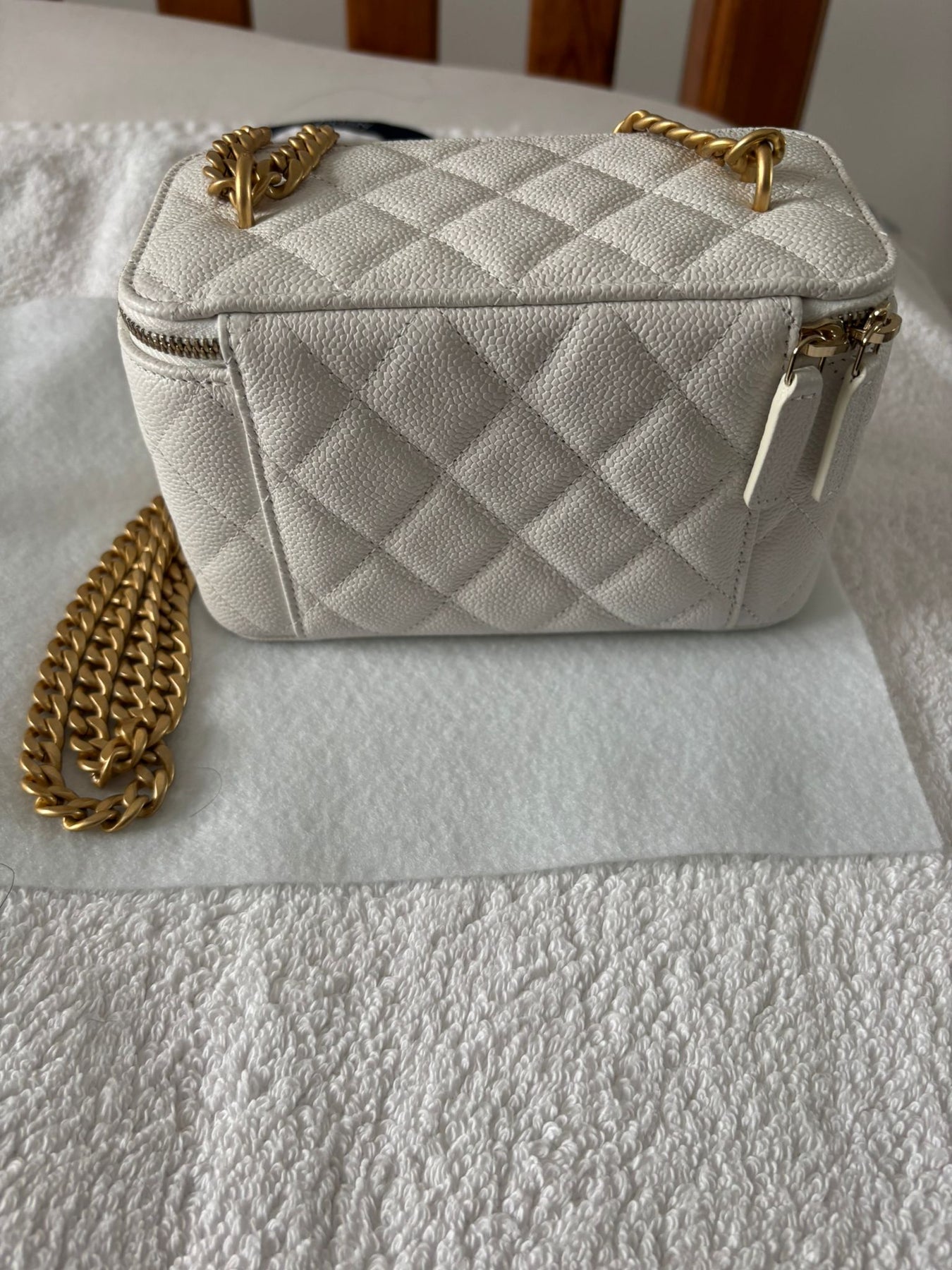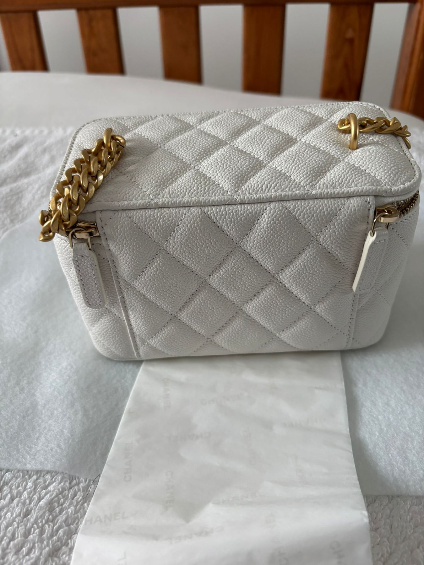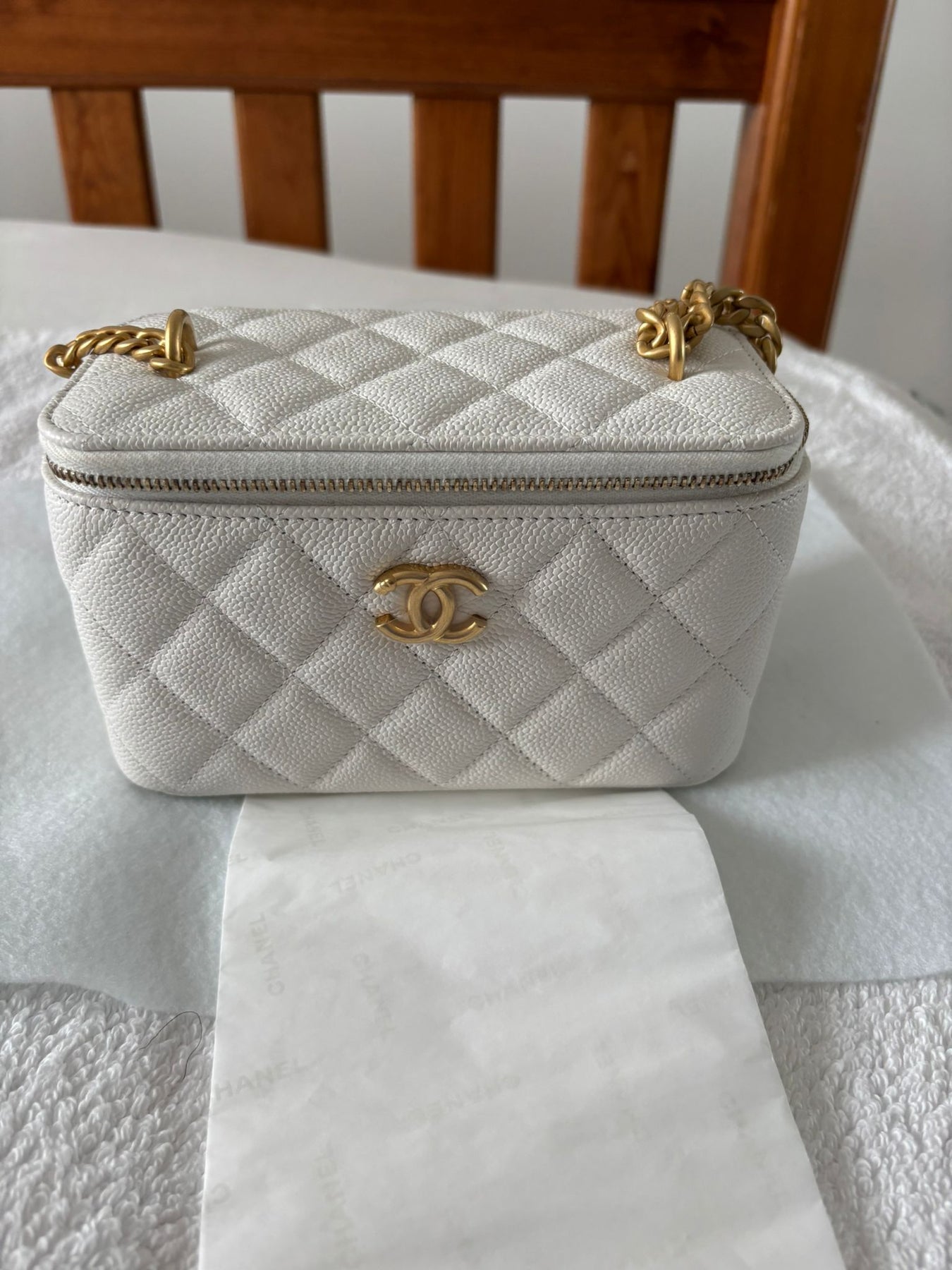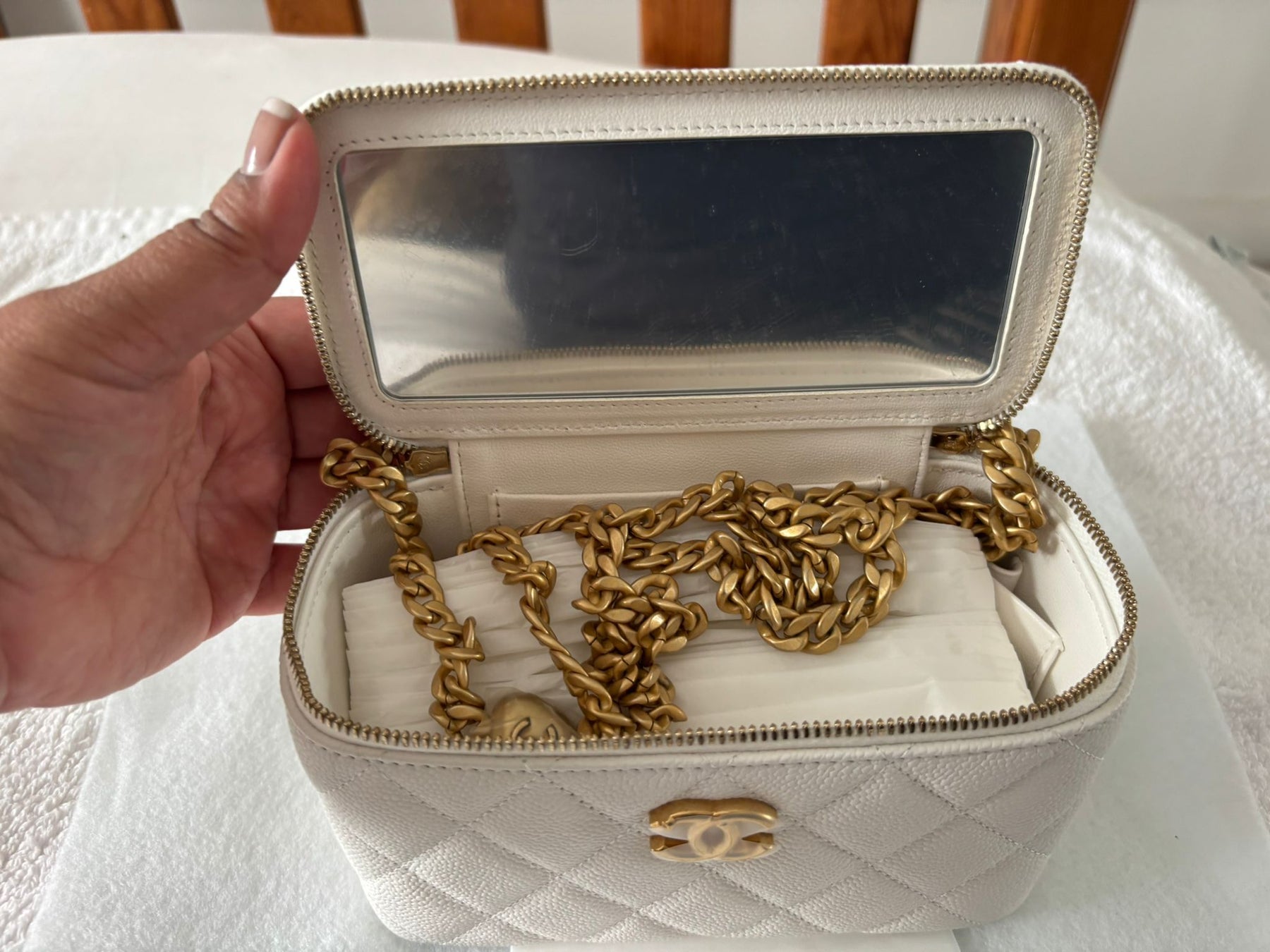 CHANEL 2023 23P Collection White Caviar Sweetheart Adjustable chain Small vanity Case with Aged GHW