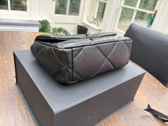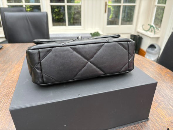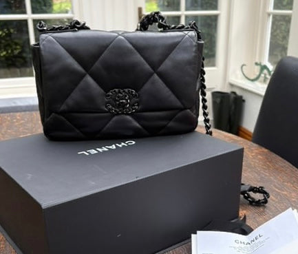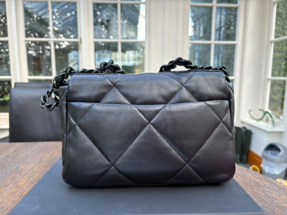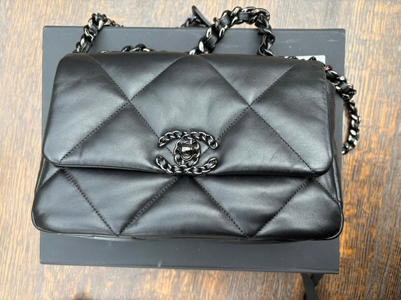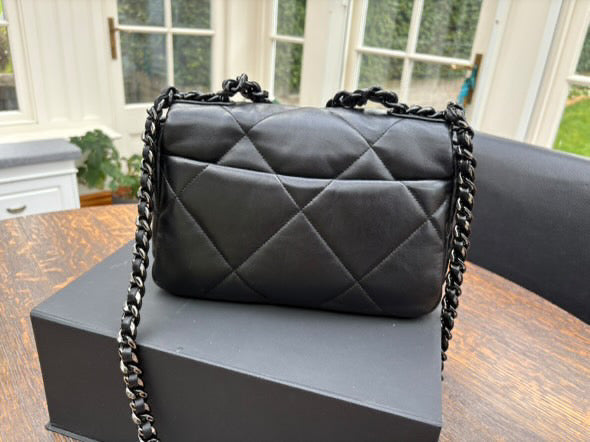 Chanel 19 Flap Bag in Size Small 22P collection 2022 So Black Lambskin So Black Hardware
