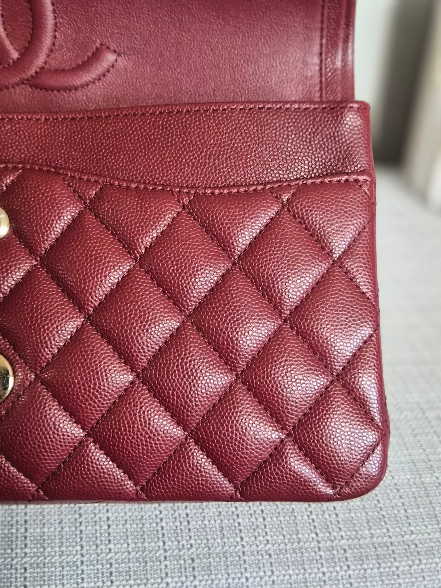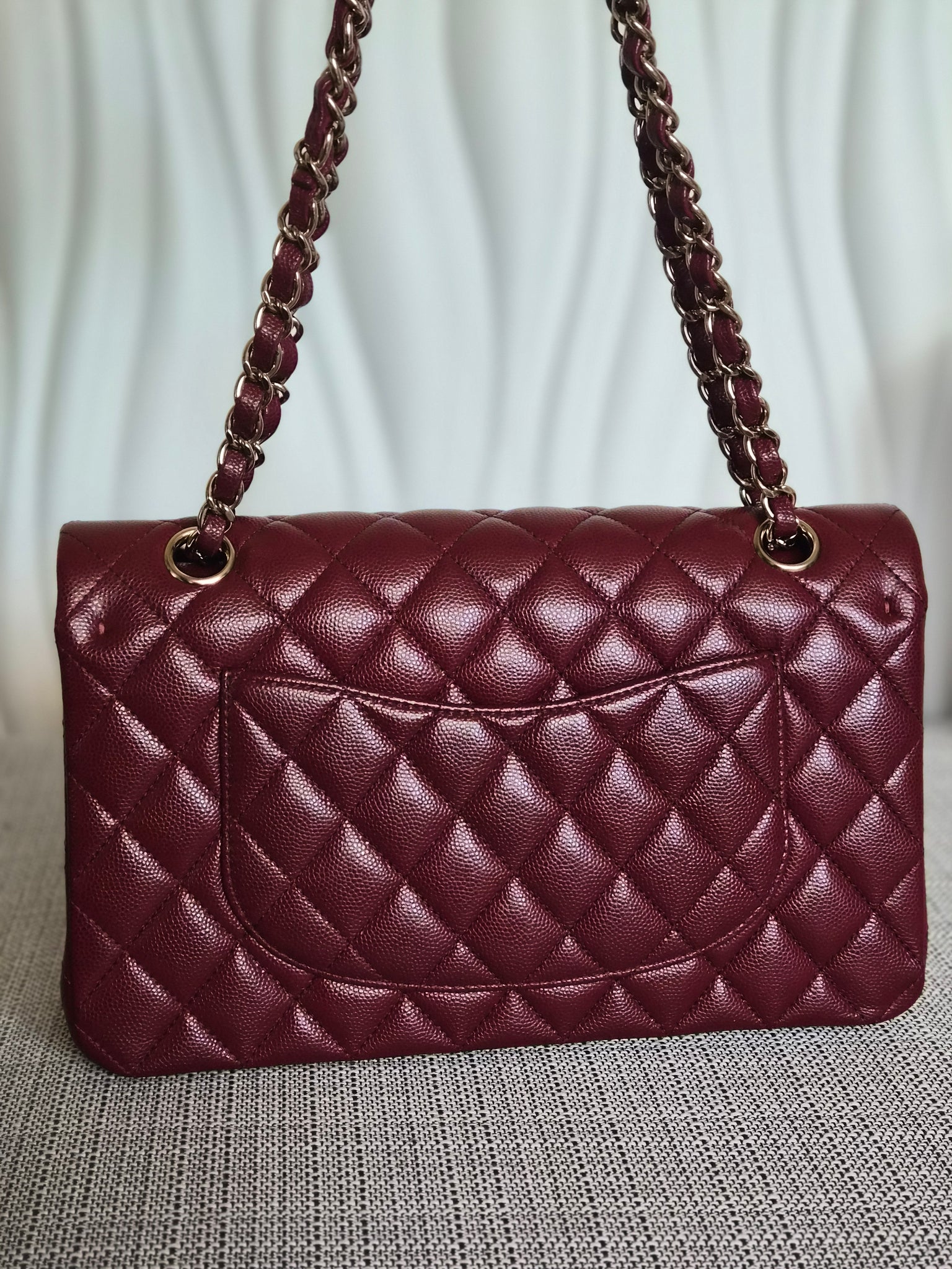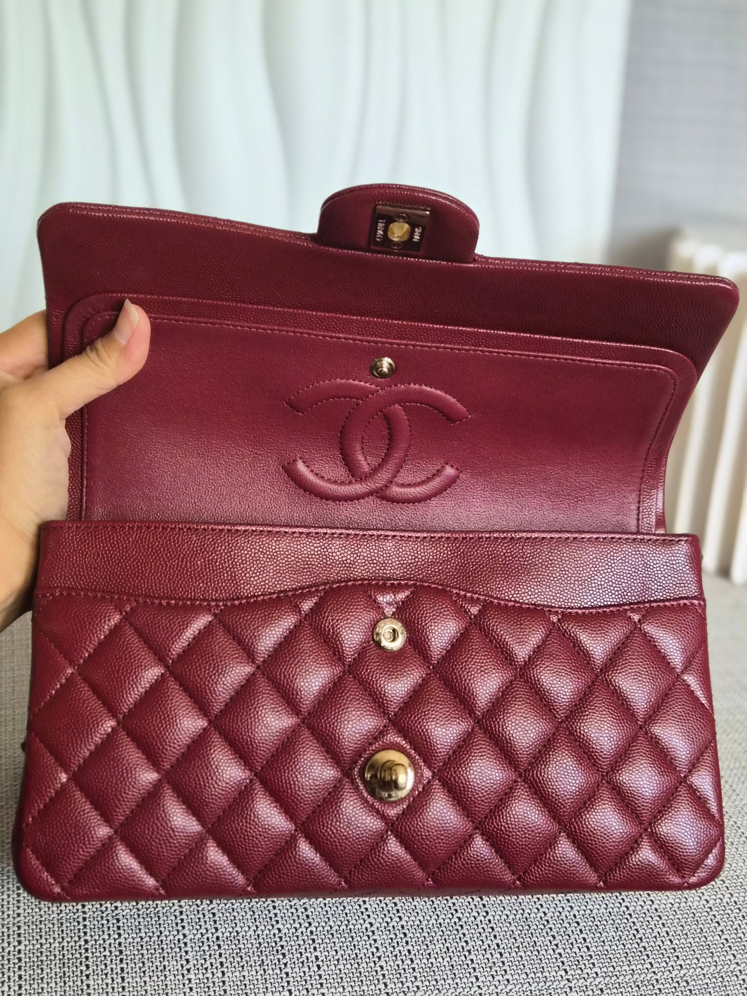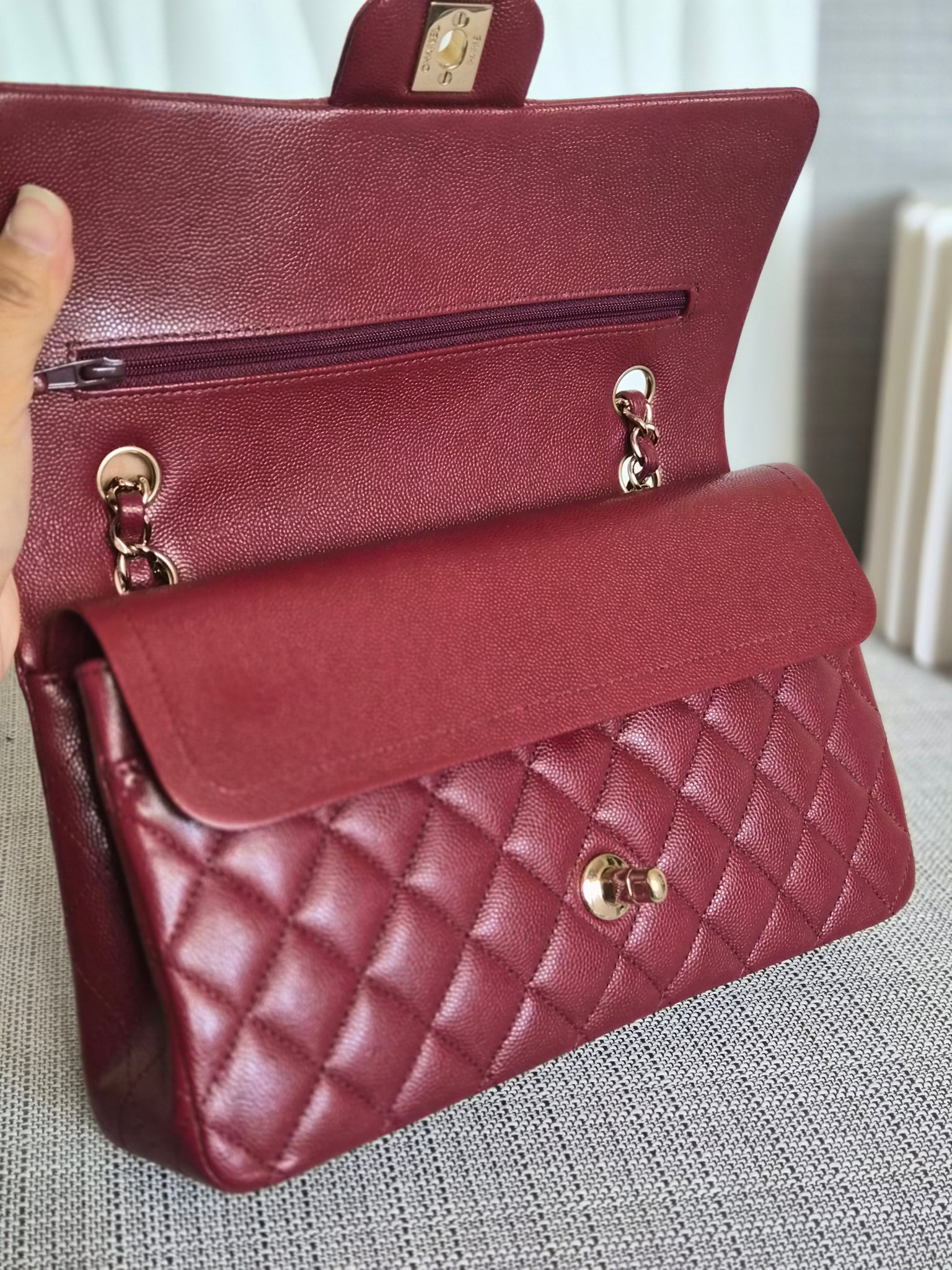 CHANEL 19B collection Series 28 Burgundy Caviar LGHW Medium Timeless Classic Double Flap Bag 11.12