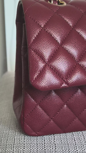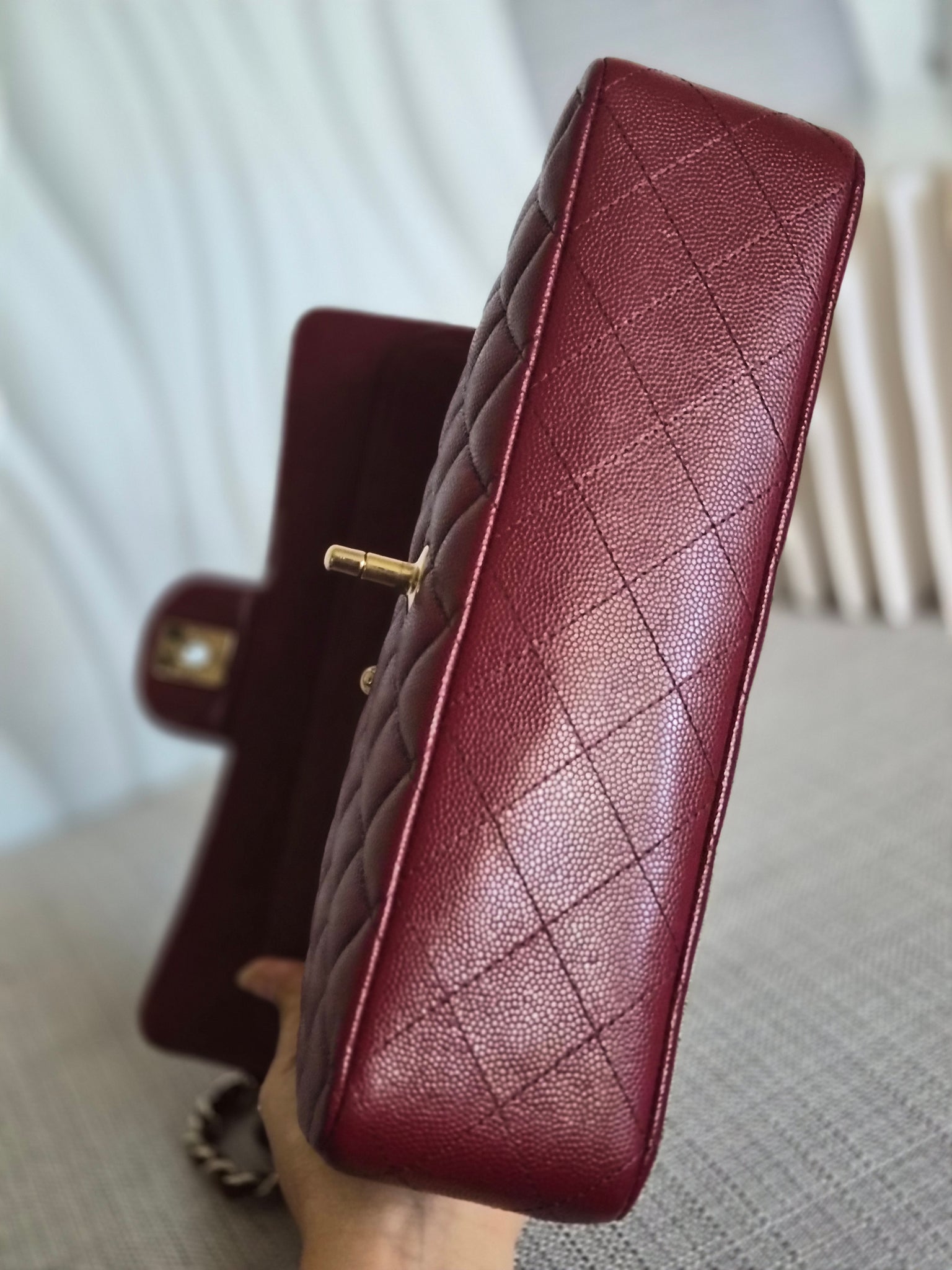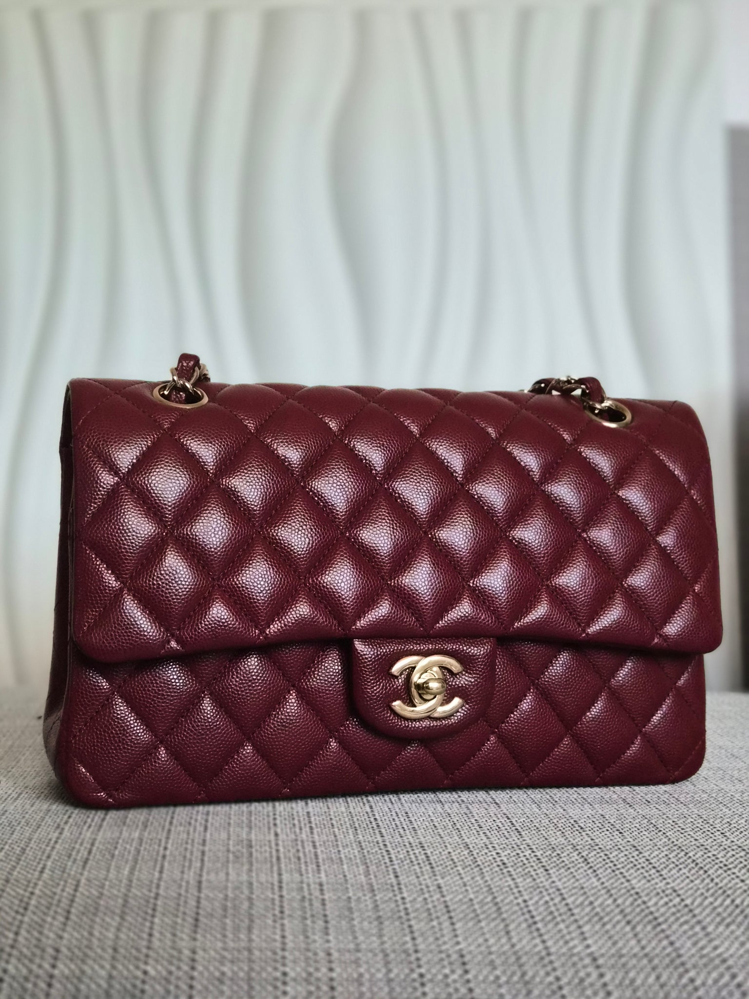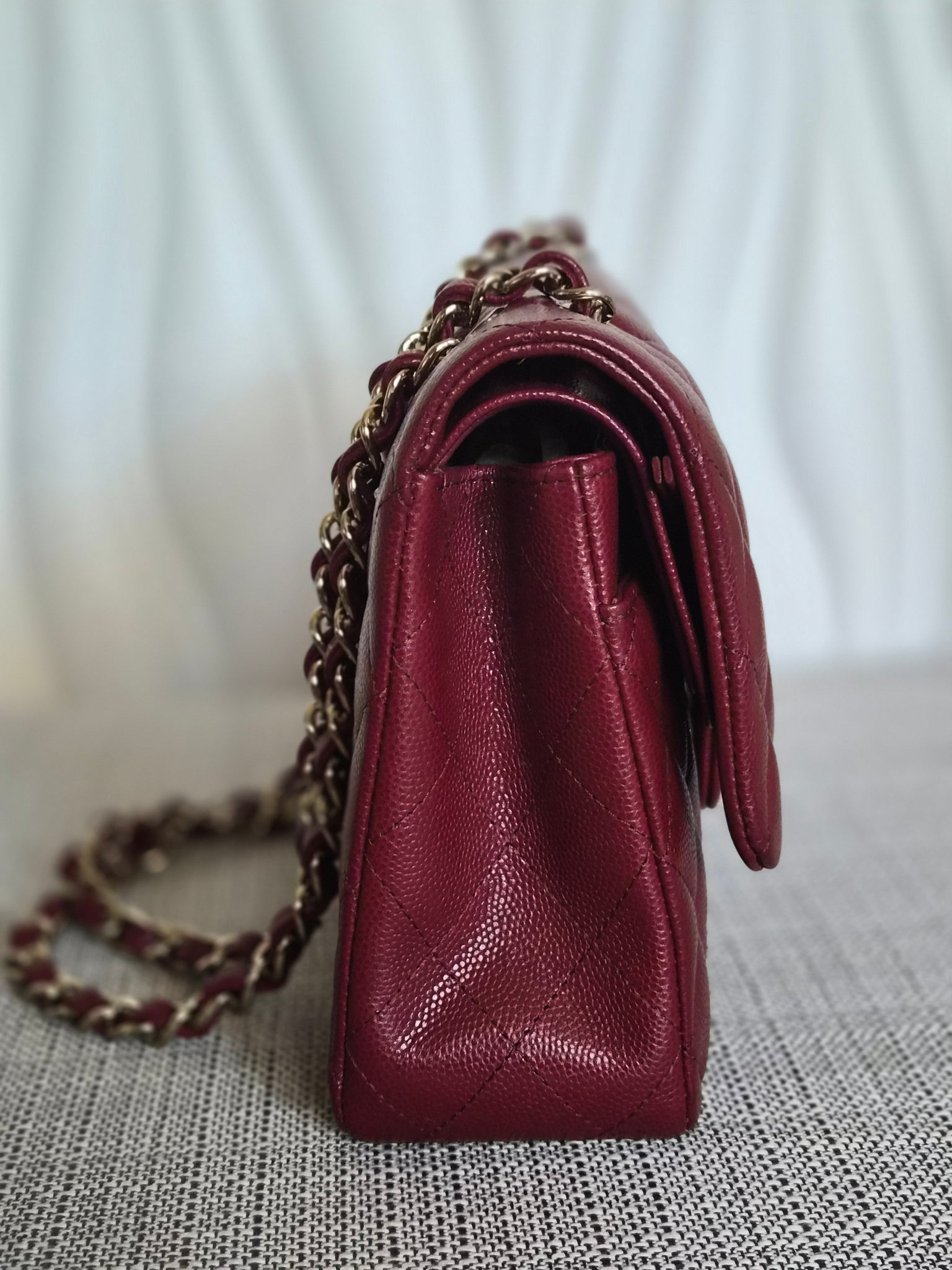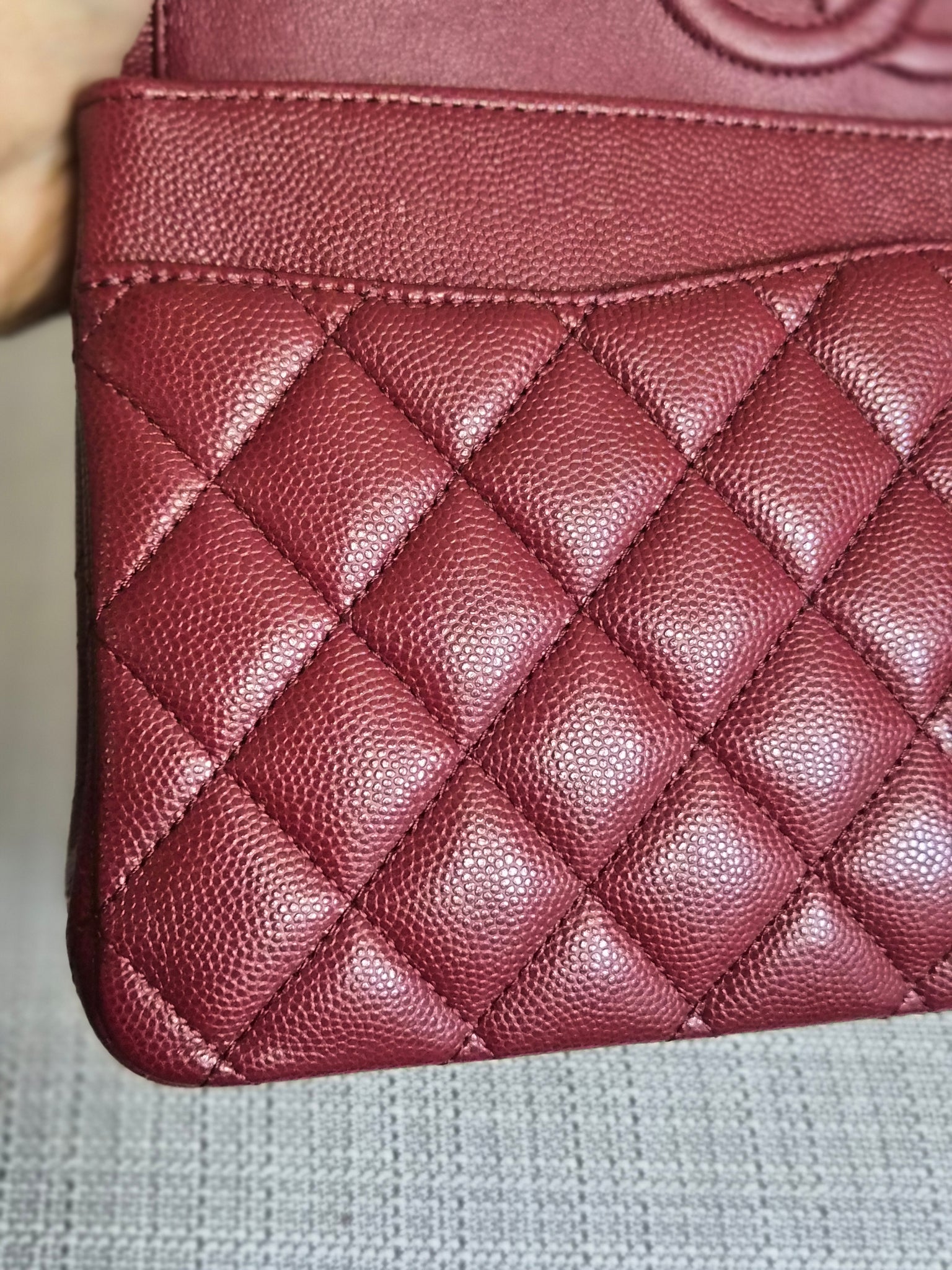 CHANEL 19B collection Series 28 Burgundy Caviar LGHW Medium Timeless Classic Double Flap Bag 11.12