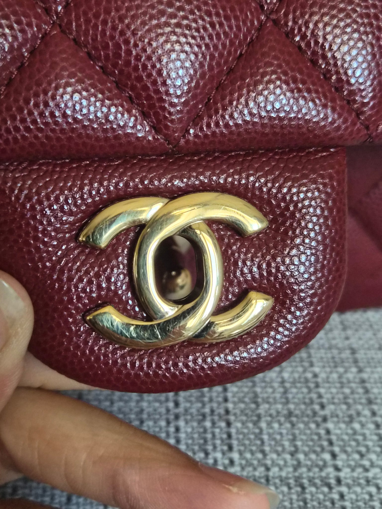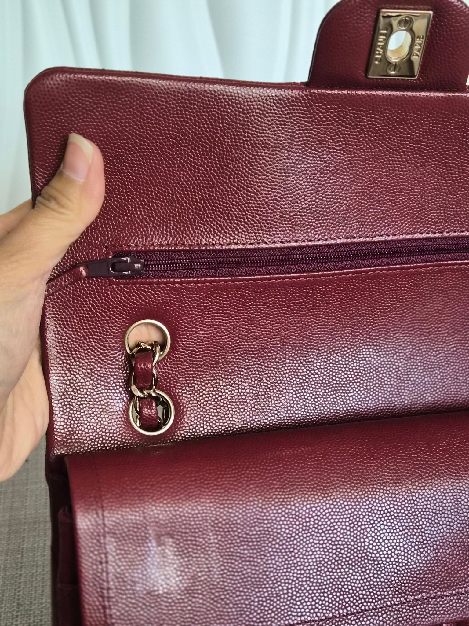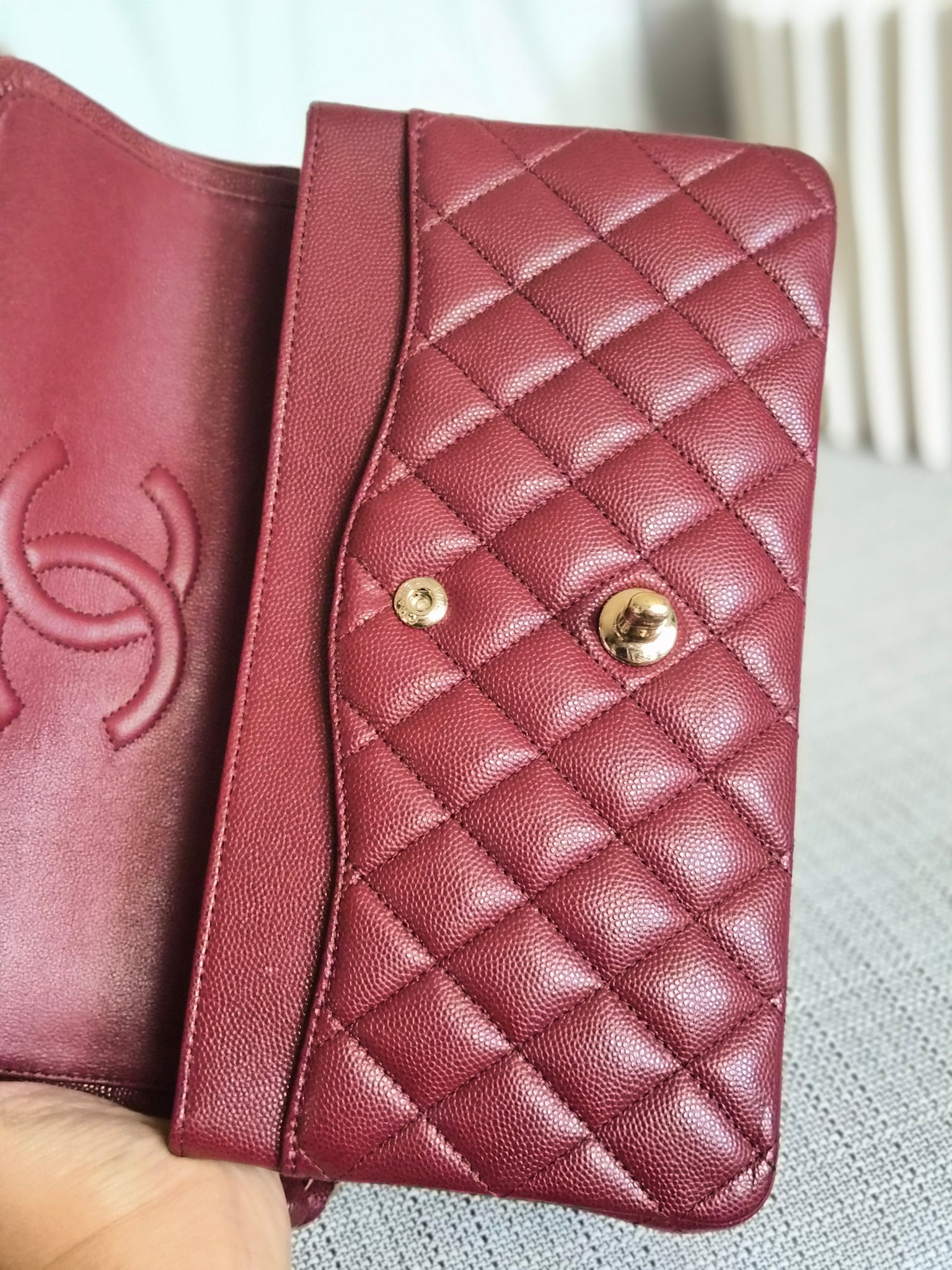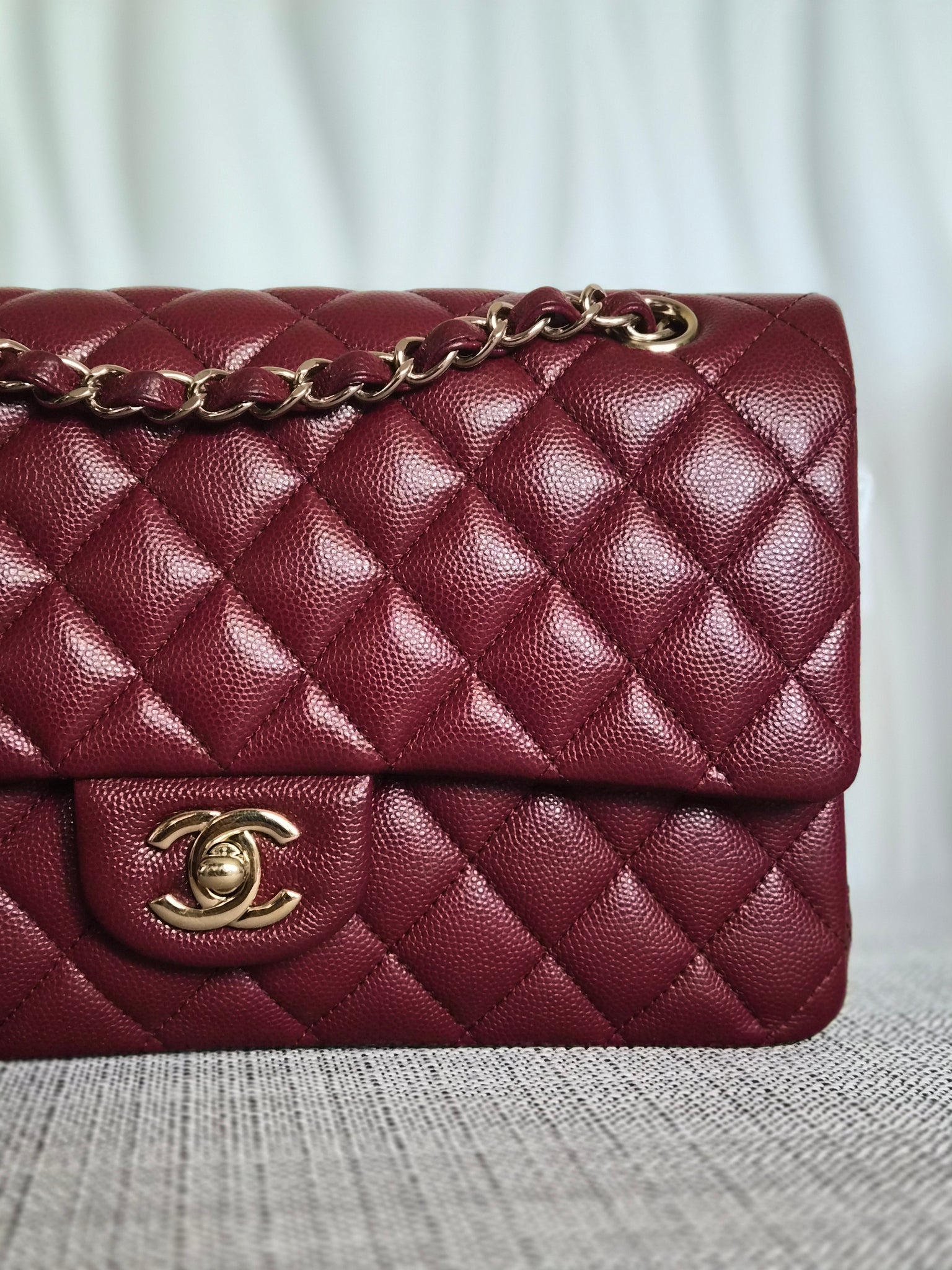 CHANEL 19B collection Series 28 Burgundy Caviar LGHW Medium Timeless Classic Double Flap Bag 11.12