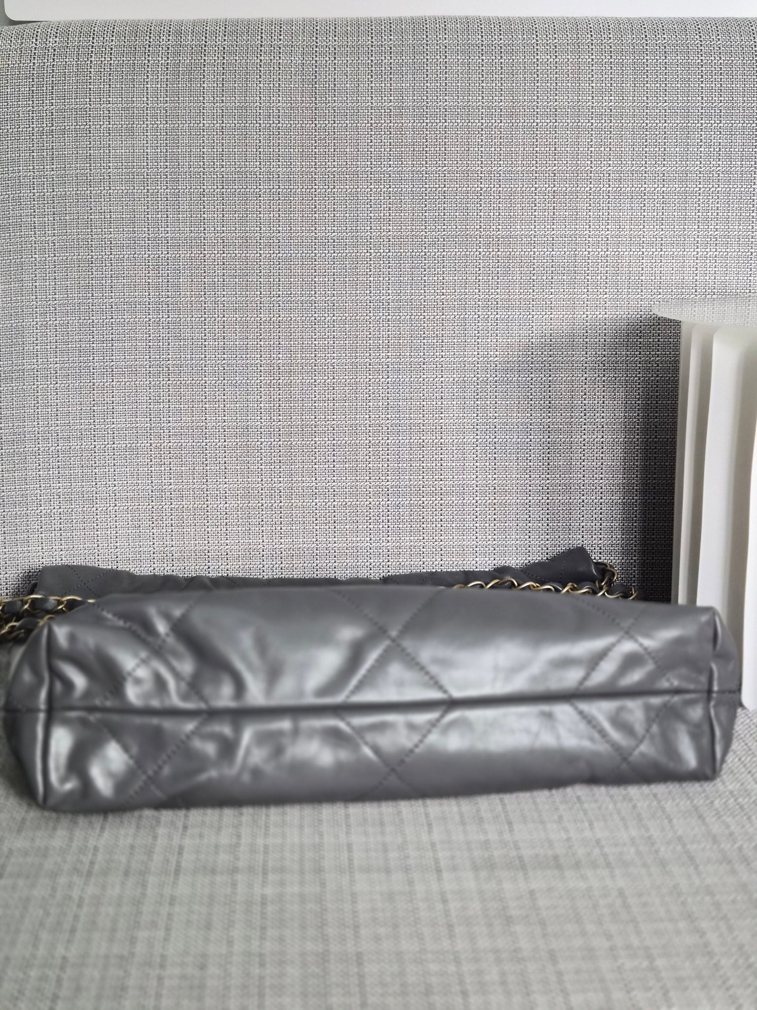 CHANEL 22 size Small in Grey Lambskin aged GHW with detachable pouch