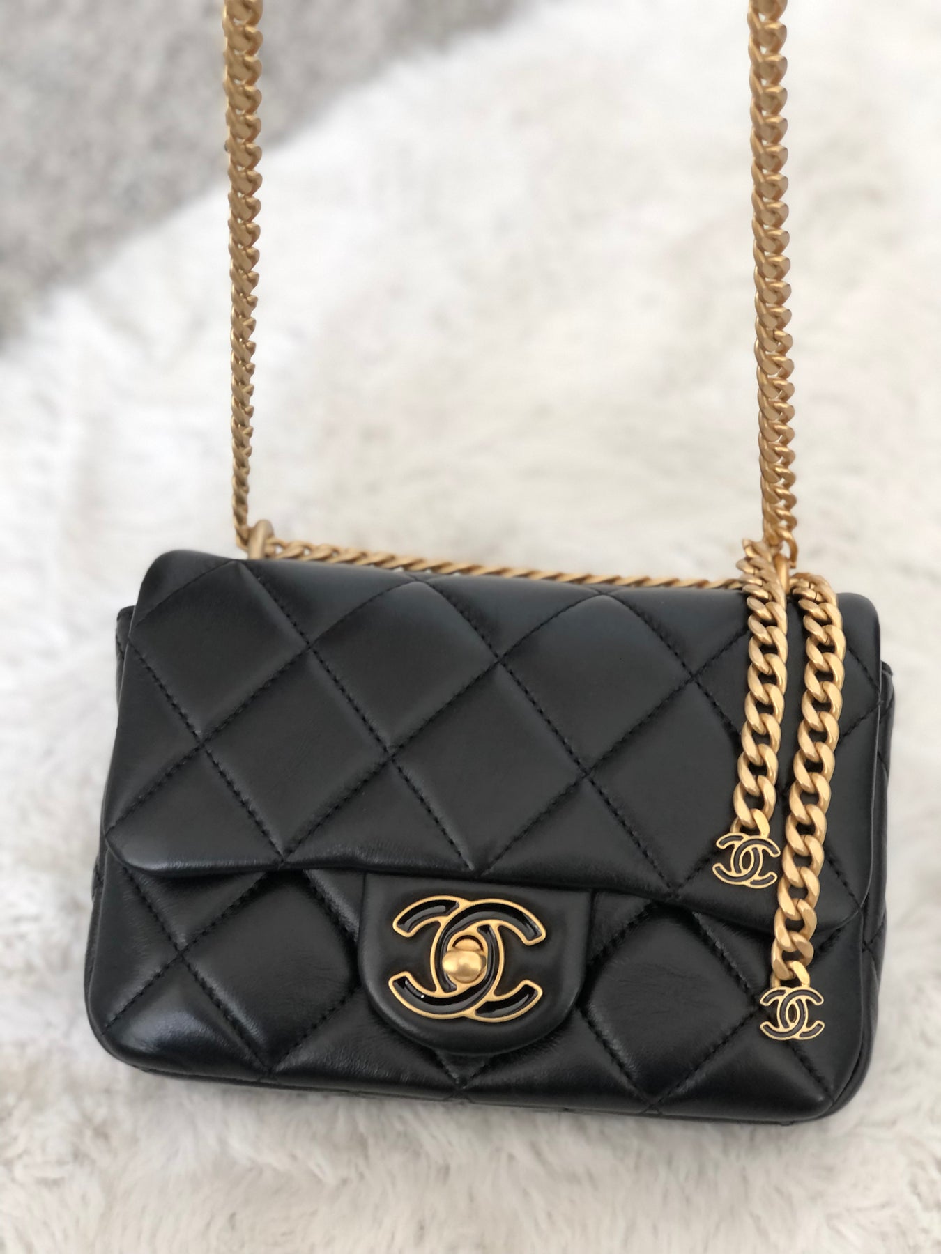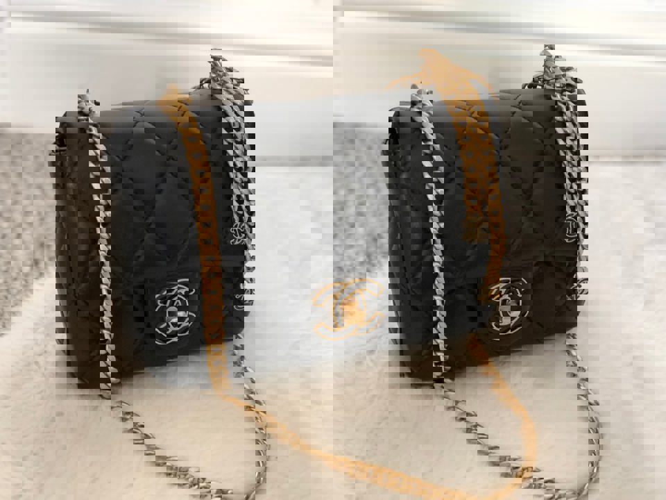 Chanel 22P Black Lambskin GHW Square mini flap bag