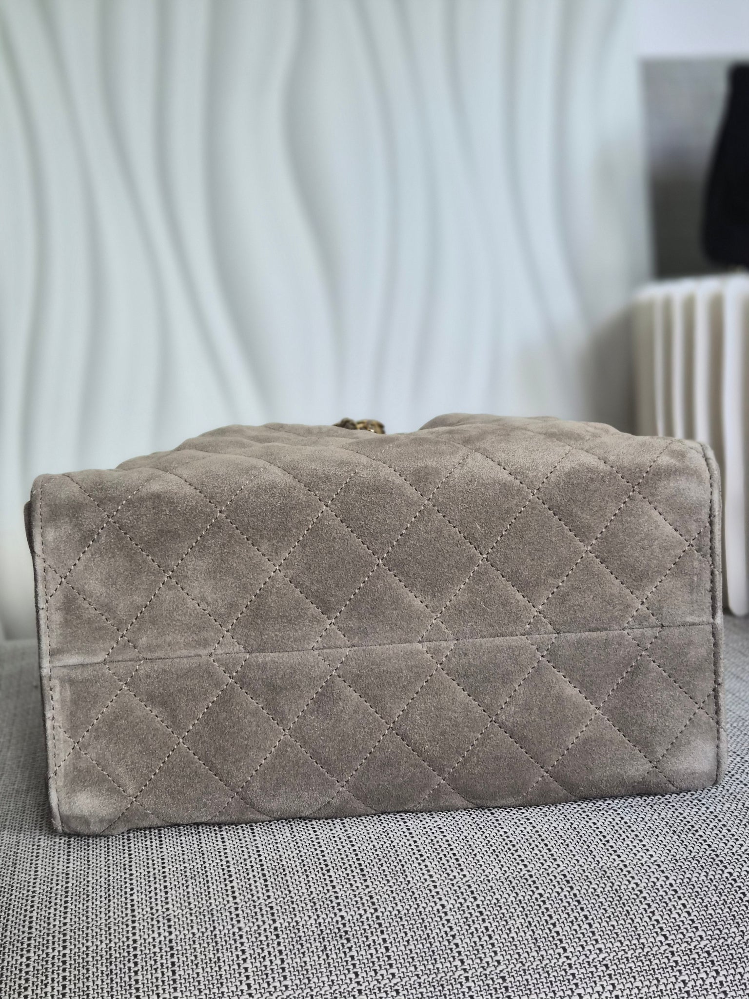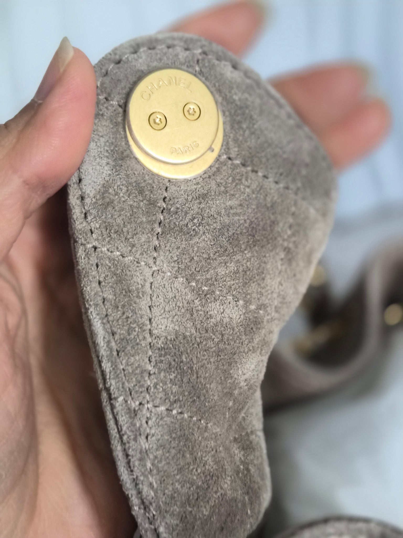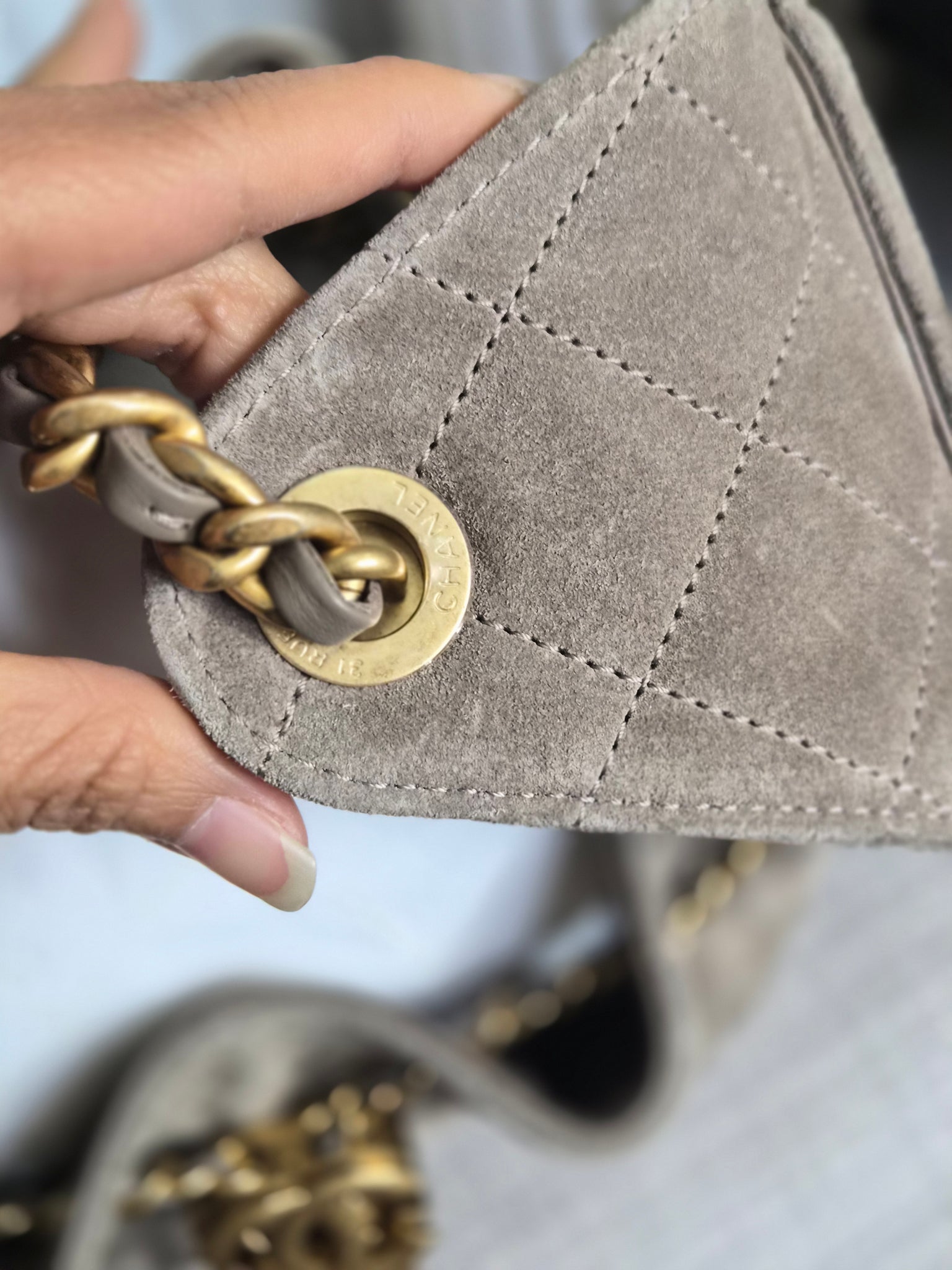 CHANEL 25 Size Small 25K collection Dark Grey Suede aged GHW Hobo Bag