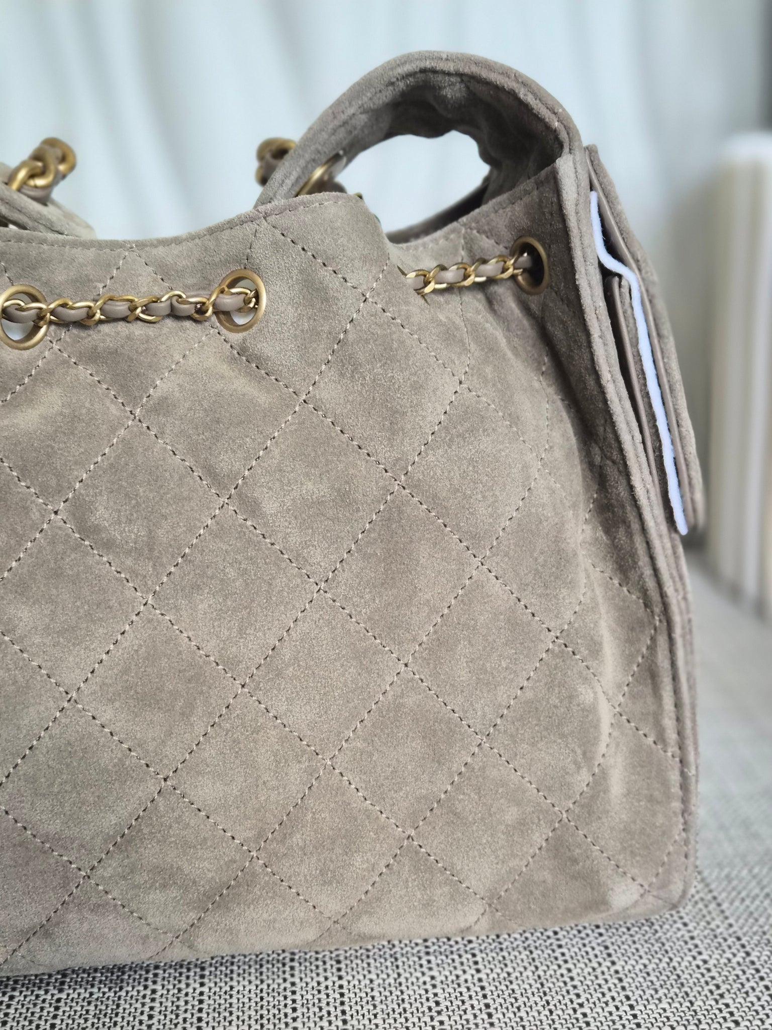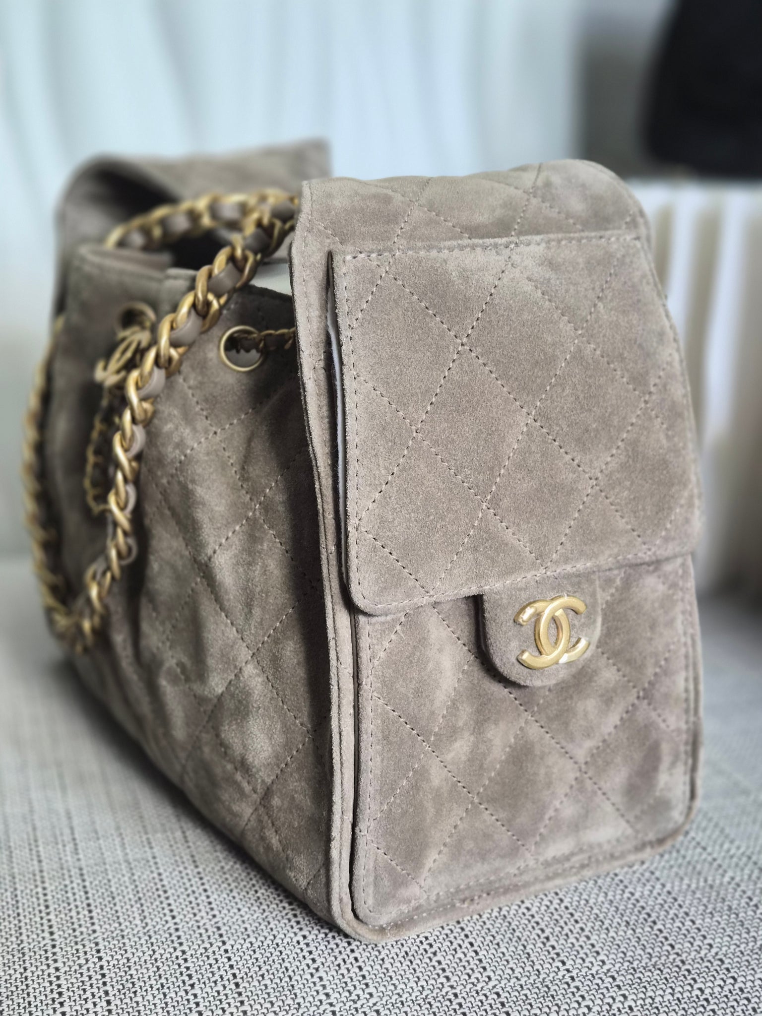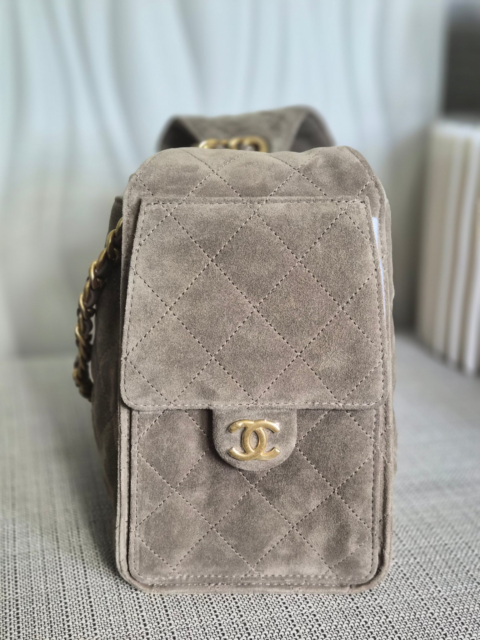CHANEL 25 Size Small 25K collection Dark Grey Suede aged GHW Hobo Bag