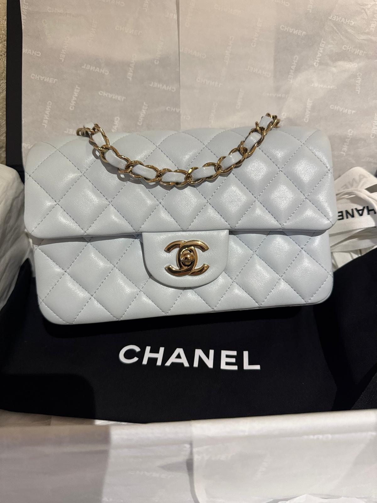 CHANEL 25S collection 2025 Light Blue Lambskin LGHW Mini rectangular flap bag