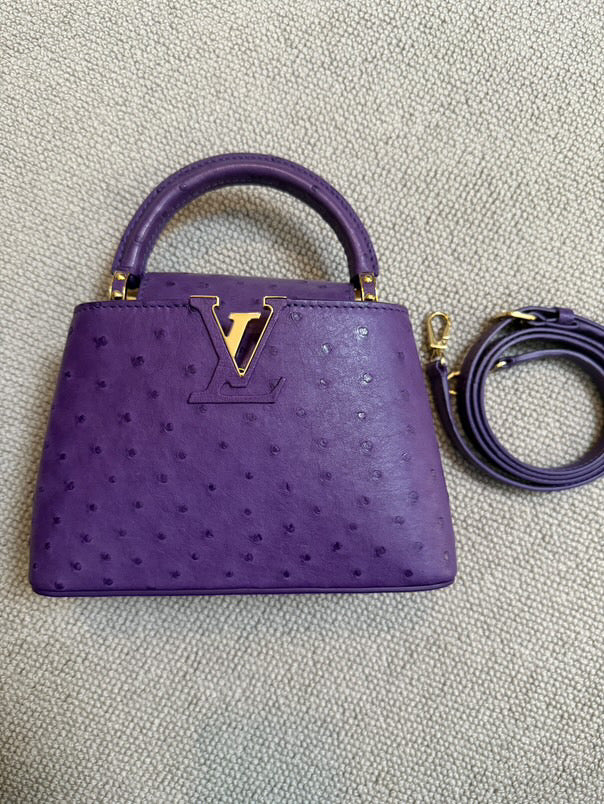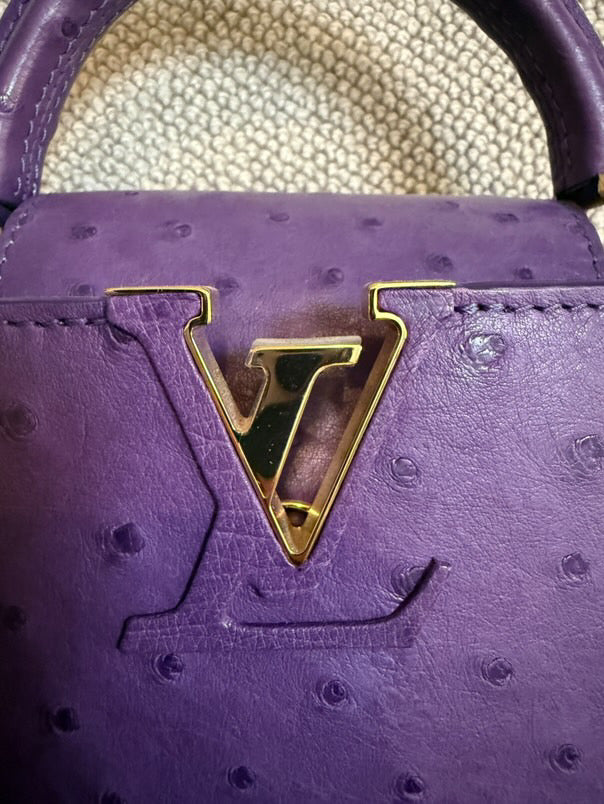 LOUIS VUITTON LV Mini Capucines LGHW Amethyst Ostrich Leather with detachable strap